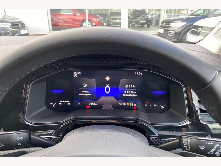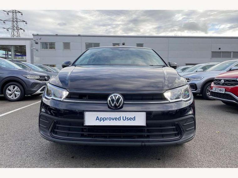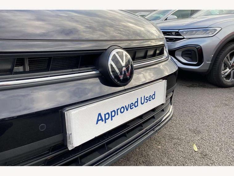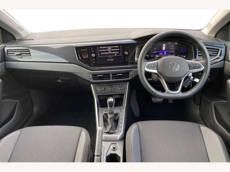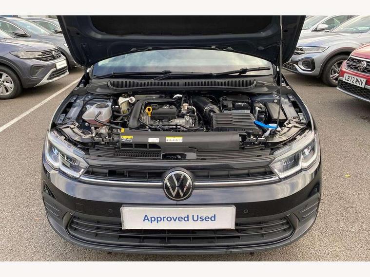 Advanced driver attention and drowsiness monitor, Bluetooth mobile phone interface, Dynamic road sign display, Emergency call service, Multifunction front facing camera for distance control, Park distance control, Power assisted speed sensitive steering, Predictive adaptive cruise control without follow-to-stop and speed limiter, Preparation for navigation system with media and internet package, Preparation for We connect and We connect plus, Rear view camera, Speedo and rev counter, electronic odometer, trip, service interval display and exterior temperature gauge, Standard rear axle, Travel Assist - Lane keeping system and traffic jam assist, Travel assist including emergency assist, Trip computer, Warning signal and warning light for front and rear seatbelts not fastened, Washer fluid level indicator, Wireless app connect, Front wheel drive, Rear shock absorpion, Start-stop system with battery regeneration (recuperation - energy recovery during braking), DAB Digital radio, Diversity antenna for FM reception, Front and rear 6 speakers, Automatic dimming interior rear view mirror, Automatic headlight control with LED separate daytime running lights with coming/leaving home function, Body colour bumpers with chrome inserts, Body colour door handles, Body colour door mirrors, Electric front windows, Engine badge deletion, Headlight range adjustment, Heat insulating and laminated safety glass windshield, LED Headlights, LED rear combination lamps, Power folding adjustable/heated exterior mirrors and front passenger exterior mirror lowering function, Rain sensor, Rear electric windows, Rear fog light, Rear side wing doors, Rear tinted glass from B-pillar backwards approx 65% tinted, Rear windscreen washer and wiper with interval delay, Third brake light, 12V power socket in centre console, 2 front and 2 rear reading lights with switch off delay and dimmer, 2 USB-C ports in the front, 2 USB-C charging sockets on the center console in the rear, 3 rear head restraints, 60/40 split folding rear seat and rear seat bench not split, Ceramique roof lining, Chrome plated radiator grille inserts, air vent surrounds and light switch surrounds, Door and side trim panel, Driver and front passenger seat height adjustment, Driver/passenger sunvisors with illuminated vanity mirrors, Front centre armrest, Front seat backrest storage pockets, Front standard seats, Handbrake lever handle in leather, Hartley/Thomas cloth upholstery, Headliner in recycled material, Isofix child seat preparation easy-fit (for two outer rear seats, and front passenger seat) compatible with I-size, Leather trimmed gear knob, Luggage compartment cover, Luggage compartment lighting, Removable luggage compartment floor, Single front passenger seat, Standard climatic zones, Standard pedal cluster, Three spoke leather wrapped multifunction steering wheel with shifting paddles, Light and vision pack - Polo, 3 point height adj front seatbelts + pretensioners, 3 point seat belt for centre rear seat, 3 point seatbelts, outer rear with ECE lable, ABS, Driver and front passenger airbag with front passenger airbag deactivation, Drivers and front passengers safety optimised head restraints, ESC (Electronic stability control) + EDL (Electronic Differntial lock) and ASR (Traction control), Extended and predictive pedestrian/ cyclist protection, Front assist with autonomous emergency braking (for Adaptive Cruise Control ACC up to 130 mph), Front curtain and side airbags with center airbag, Front disc brakes, Hill hold control, Manual child lock in rear doors, Rear drum brakes, Single tone horn, Tyre pressure loss indicator, Alarm with interior protection, Anti-theft alarm system with interior monitoring, backup horn, and towing protection, Anti-theft wheel bolts, Electronic engine immobiliser, Lava stone black gloss/matt decorative inserts in dash and front door panels, 16" Torsby alloy wheels, Low rolling resistance tyres,