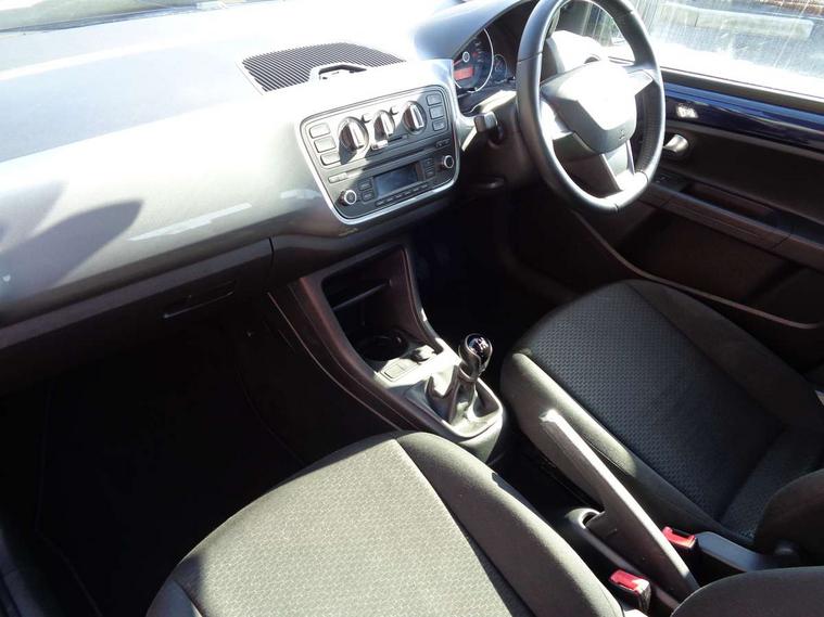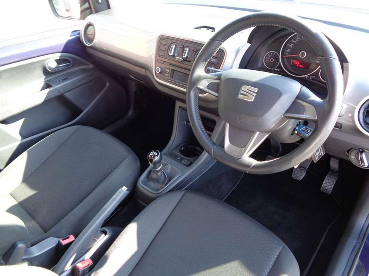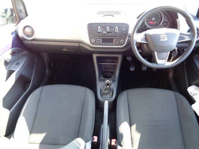 'Lights On' Reminder warning buzzer, 3 Button folding key with remote window opening/closing function, Digital clock, Electro - mechanical power assisted steering, Low fuel warning light, SEAT Portable Navigation system inc SD card slot, bluetooth connection with audio streaming, Service interval indicator, 6 speakers, Auxiliary input socket, MP3 Compatible CD player, Radio, Body colour door mirrors and handles, Body coloured bumpers, Electric front windows, Heated rear window, Rear wash/wipe, Roof antenna, Tinted windows, 12V accessory power point in centre console, 2 height adjustable rear headrests, 60/40 split folding rear seat, Air conditioning, Cloth upholstery, Driver/passenger sunvisors and vanity mirrors, Dust/pollen filter, Front/rear floor mats, Front/rear reading lights, Height adjustable driver's seat, Height adjustable steering wheel, Integrated head restraints, Isofix system on outer rear seats, Leather steering wheel and gear knob, Lockable glovebox, Parcel shelf, ABS, Driver and passenger airbags, ESC - Electronic Stability Control + traction control, Front and rear seatbelt reminder, Front passenger airbag deactivation, Front side airbags(head+thorax), Hill hold control, Tyre pressure monitoring system, Electronic engine immobiliser, Locking wheel bolts, Remote central locking, Chrome air vent surrounds, Gloss lacquer dashboard insert in grey, 14" Spirited alloy wheels,