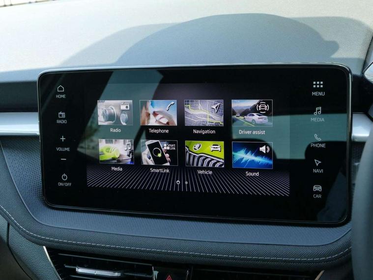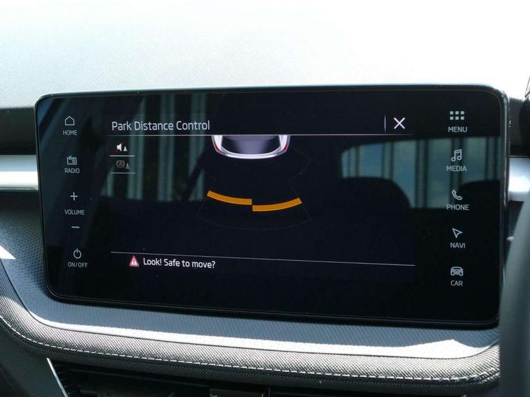 Advanced driver attention and drowsiness monitor, Bluetooth connection, Electromechanical power steering, Exterior temperature gauge, Service interval indicator, Traffic sign recognition, Virtual cockpit with 10.25" colour display, Wireless SmartLink for Apple CarPlay and Android Auto, 6 Speakers (4 in front and 2 in rear), 9.2" colour display skoda navigation system with voice control and web radio, Auxiliary socket for external MP3 player, DAB digital radio reception, Auto dimming rear view mirror, Body colour door mirrors, Body coloured bumpers, Chrome window surround, Door mirror integrated indicators, Front and rear electric windows, Front window wiper intermittent control, Headlight range control - Automatic, Ice scraper in fuel cap, LED daytime running lights with coming and leaving home feature, LED rear lights, Privacy glass, Rear LED fog light, Rear side wing doors, Rear window wiper with washing nozzles, Roof mounted spoiler, SKODA tailgate lettering in chrome, Third brake light, Unique dark chrome design logo on alloy wheels, 2 LED reading lights in front and rear, 3 rear headrests, Backrest split and folding, Central console with removable cup holder and storage box, Chrome handbrake release button, Comfort seats, Door sills with fabia badging, Dual zone air conditioning with climatronic electronic control, Fabric upholstery, Front centre armrest, Gearshift knob/handle in leather, Hand brake lever handle in leather, Height adjustable front headrests, Height adjustable front seats, Height adjustable steering wheel, ISOFIX and TopTether anchorage points to the outer rear seats, ISOFIX and TopTether on the front passenger seat, Luggage compartment lighting, Manually adjustable lumbar support in front seats, Metallic grey interior door handles, Pollen filter, Rear seat bench unsplit, Single front passenger seat, Skoda lettering on steering wheel, Storm grey headlining, Sun visors with mirror and airbag label on passenger side, Textile floor mats, Ticket holder, Umbrella in drivers door, 3-point height adjustable front seats belts with pretensioner and force limiter, Automatic warning lights in case of crash, Driver and passengers airbag with switch off function, e-Call+, ESC including ABS, MSR, ASR, EDS, HBA and XDS, Front and rear seat belt warning, FRONT ASSIST (AEB City and AEB Inter Urban), Front side airbags, Head airbags, Hill hold control, One tone horn, Pedestrian protection, Three rear 3-points safety seat belts with pretensioner and force limiter including stop function for outer rear seat belts, Tyre pressure monitoring system, Anti-theft alarm system including immobiliser, interior monitoring, backup horn, and towing protection, Central locking with radio remote control, interior controls, SAFE function and 2 foldable keys, Black painted air vents, Metallic grey central console cover, Metallic grey upper decorative trim, Satin black door and side trim panel in front, Textile microsuede grey lower decorative trim with art grey stitching, Anti-theft wheel bolts protection, Super-low rolling resistance tyres,