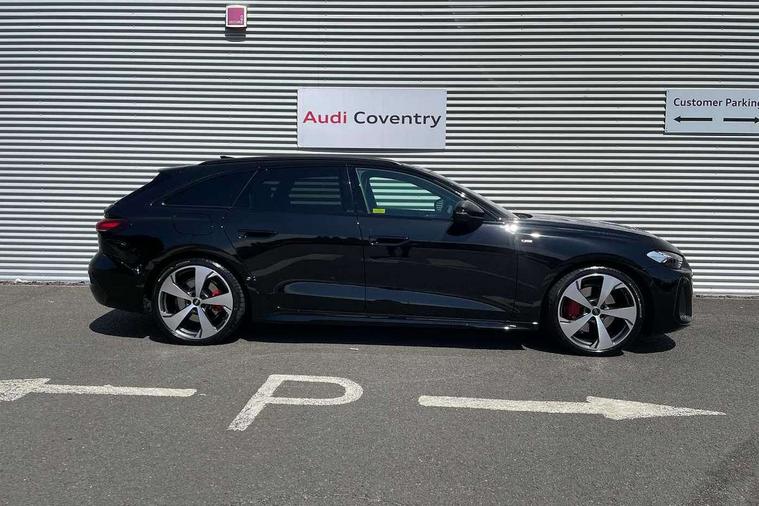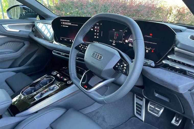 Adaptive cruise control, Advanced driver attention and fatigue montior, Audi application store, Audi assistant, Audi connect emergency call and service, Audi drive select, Audi smartphone interface, Audi virtual cockpit plus with 11.9" OLED colour display, Automatic start/stop system with coasting functionality, Camera based traffic sign recognition, Intersection assist, Lane change assistant with exit warning system, rear cross traffic alert and rear turn assist, Lane departure warning with emergency assist, MMI 10.9" front passenger touch display, MMI navigation plus with high resolution 14.5" OLED touchscreen colour display, Park assist plus, Parking system plus with 360 display, Progressive steering with servotronic, Swerve assist and turn assist, Top view camera, Traffic sign based speed limiter, Sports suspension lowered by 20mm, 2 USB-C ports in both the front and rear, Audi sound system impressive sound with 10 loudspeakers including centre speaker and subwoofer, 6-channel amplifier with a total output of 180 watts, DAB digital radio reception, Smartphone compartment with wireless charging, Aluminium window trims, Auto dimming rear view mirror, Black door handles, Black roof rails, Dark chrome-plated tailpipe trims, Door mirrors - electrically adjustable, heated, folding and auto dimming on both sides, Front and rear electric windows, Front door sill trims with aluminium inlays, illuminated with 'S' logo, Headlight cleaning system, High beam assist, LED daytime running lights, LED rear lights pro incl. dynamic rear indicators and illuminated light strip with animated coming and leaving home function, LED third brake light, Matrix LED headlights with eight light signatures selectable via the MMI or the myAudi app, Privacy glass, Rear and side windows with heat insulating glass, Rear side wing doors, Rear wash/wipe, S Line badges on the front wings, S line bumpers, radiator grille and diffuser in phantom black and diffuser insert in matt anthracite, White rhombus logo projection light in exterior mirrors, Windscreen with acoustic glazing, 3 rear headrests, 3 seat rear bench, 3 spoke leather steering wheel with multi-function buttons with touch control, flattened on top and bottom, with S badging and contrast stitching, 3-zone automatic climate control, 40:20:40 split folding rear seat bench with centre armrest and cup holders, Comfort front centre armrest, Electrically adjustable front seats, Front and rear floor mats, Front sport seats with integrated headrest and S embossed logo, Headlining in black cloth, Heated front seats, i-Size child seat mounting on the front passenger side and i-Size and top tether on the outer rear seats, Luggage compartment lid, electrically opening and closing, Manual steering column height and depth adjustment, Memory function for driver seat, Single front passenger seat, Stainless steel pedals and footrest, Steering wheel grips in perforated leather and shift paddles, Ambient lighting package plus - A5, Black styling package plus - A5, 3x3 point rear seat belts, Acoustic vehicle alerting system, Convenience key with safelock, Driver airbag, Electric child safety locks, First aid kit with warning triangle and vests, Front emergency brake assist, Front passenger airbag, Front passenger airbag deactivation, Hill hold assist, Occupant detection in rear seat area, Proactive passenger protection system for front, sides and rear, Red brake calipers, Seat belt monitoring with rear seat occupant reminder, Side airbags in front and rear with head airbag system and front interaction airbag, Tyre pressure loss indicator, Anti theft alarm, Anti-theft wheel bolts, Keyless Go, Accent surfaces and control buttons in gloss black, Black dashboard with contrast stitching, Softwrap in Dinamica with contrast stitching, Upper and lower interior elements in dinamica microfiber, 20" 5 arm fold design Audi sport alloy wheels in silk matt grey and gloss turned finish, Tyre repair kit,