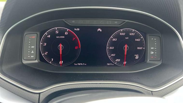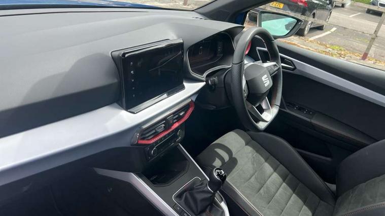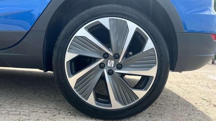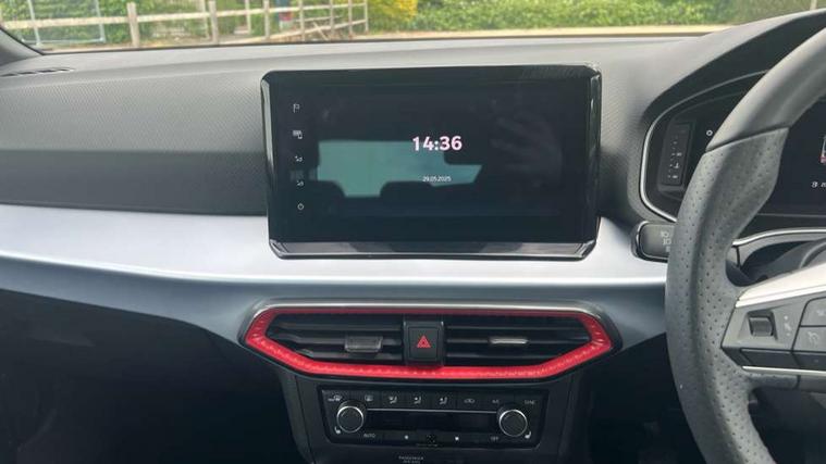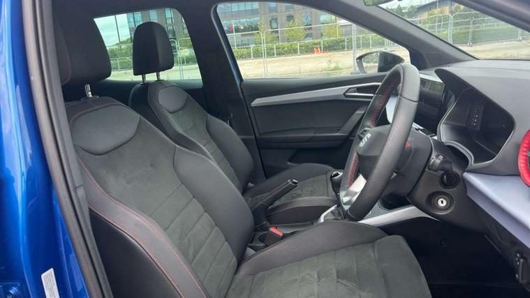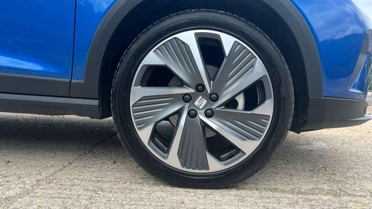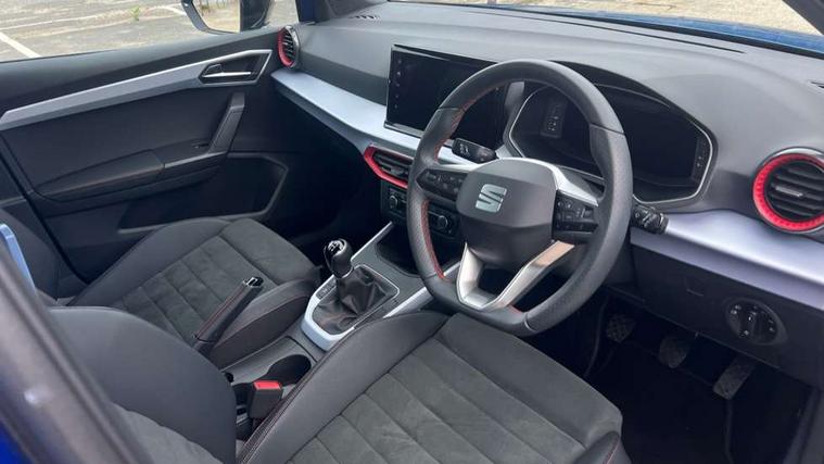 'Lights On' Reminder warning buzzer, 10" Digital cockpit, Digital clock, E-call, Electric speed sensitive power steering, Full Link Smartphone Integration with Mirror Link, Apple Car Play, Google Android Auto with USB Type C cable for Apple and Android compatibility, Lane keeping system, Low fuel warning light, Outside temperature display, RPM counter, SEAT Drive profile - Four different models normal-sport-eco-individual, steering response, throttle response, Trip computer, Wireless phone charger, 9.2" colour touchscreen with navigation system, voice control and USB port (type c), Bluetooth interface for hands free and audio streaming, DAB digital radio and AM/FM radio, Steering wheel mounted audio controls, Anti theft roof antenna, Auto dimming interior rear view mirror, Automatic activation of hazard warning lights, Body coloured bumpers, Body coloured door handle inserts, Chrome roof rails and window surrounds, Dark tinted rear windows, Electric front/rear windows, Electrically adjustable, heated and folding door mirrors, Front fog lights with cornering function and rear fog light, FULL LED automatic headlights with dynamic headlight range control, coming and leaving home, LED daytime running lights, LED rear tail lights and licence plate lights, Protective side mouldings, Rain sensing wipers, Rear side wing doors, Rear spoiler, Rear window wash/wipe, Roof colour door mirrors, Third brake light, Twin exhaust pipe styling hidden exhaust pipe, Visible VIN plate, 2 cupholders, 3 seat bench in 2nd row, 60/40 split folding rear seat, Aircare filter, Black interior roof, Double boot floor, Driver sunvisor with covered mirror + card holder, Dual zone climate control, Front comfort seats, Front courtesy light with front reading lights, Front seat back storage pockets, Gear shift indicator, Heated front seats, Height adjustable front seats, Height/reach adjustable steering column, Illuminated boot, Instrument lighting with brightness control, Interior ambient lighting, Interior light in footwell, central console and door panel, ISOFIX points in outer rear seats with top tether anchorage points, Microsuede cloth upholstery, Passenger sunvisor with vanity mirror, Perforated flat bottomed leather steering wheel/gear knob/handbrake with red stitching and FR logo, Potentiometer, Single front passenger seat, Two front and three rear height adjustable headrests, Interior chrome pack - Arona, Safe and driving pack (S) - Arona, 3 point seatbelts on all rear seats, ABS, Active front headrests, Child locks on rear doors, Driver and front passenger airbags with front passenger airbag de activation, front side and curtain airbags, Emergency Brake Assist (EBA) and front assist, Front and rear seatbelt reminder, Hill hold control, Multi-Collision braking, Tiredness recognition system, Traction control, Tyre pressure monitoring system, Alarm with back-up horn, Electronic engine immobiliser, Locking wheel bolts, Remote central locking + deadlocks, Tow away protection, Titan black dashboard, 18" Performance Cosmo grey matt alloy wheels,