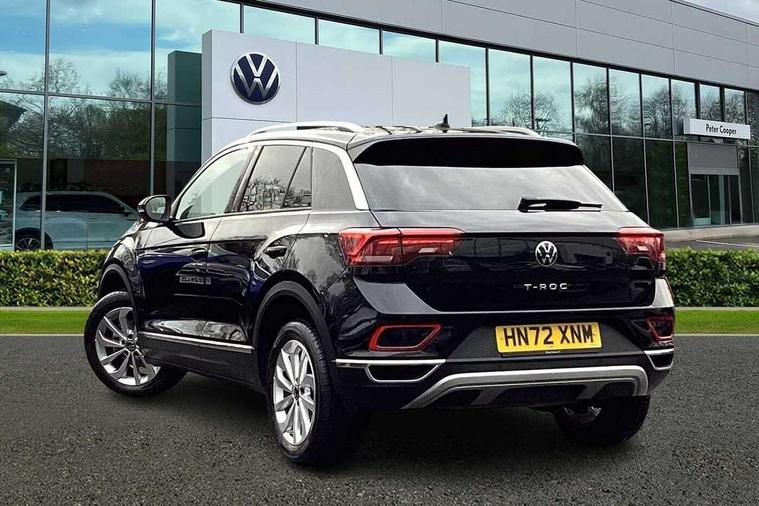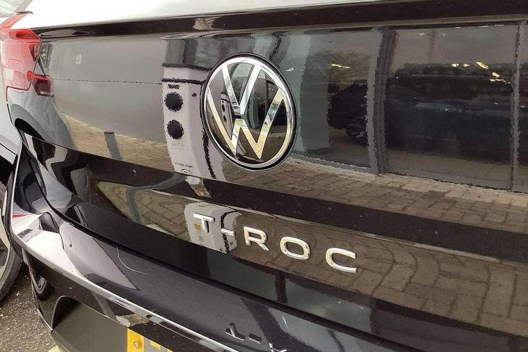 10.25" Digital cockpit pro, Bluetooth mobile phone interface, Driver alert system with fatigue detection, Driver tips and journey analysis, Dynamic road sign display, Emergency call service, Lane keeping system Lane Assist, Modified key software - reduce switch off time for key status change to Long no motion, Online services, Park assist including front and rear parking sensors, Power assisted speed sensitive steering, Service interval indicator, Tailgate/trunk lid release from outside, Think blue trainer driver tips and journey analysis, Warning sound and light for front seatbelts unfastened, Wireless app connect, Battery regeneration during braking, Front shock absorption, Rear shock absorption chassis with increased ride height, Start/stop function with battery regeneration, Diversity antenna for FM reception, Front and rear 6 speakers, Music playback - MP3, WMA and AAC files, Premium USB cable in choice of either Apple or Android smartphone compatibility, SD card slot, Simultaneous pairing of 2 compatible mobile devices, Title and cover art display, We Connect and We Connect Plus functionality, 3rd brake light, Auto dimming interior rear view mirror, Automatic hazard lights activation under emergency braking, Automatic headlight control with LED separate daytime running lights with coming/leaving home function, Body colour sports bumpers with silver metallic underbody fascia, Dynamic headlight range control with self adjusting whilst driving, Extended roof spoiler, Exterior mirrors aspherical on driver side, convex on front passenger side, External USB type C socket and charging sockets, Front windscreen wiper with intermittent wipe and 4 position delay, Heated rear window, LED Plus headlamps, LED rear combination lamps, LED rear number plate lights, LED tail lamp rear comination lamps, Light mode for poor weather, rain, fog or snow, Power windows with comfort operation and circuit breaker, Rain sensor, Rear exhaust tailpipe, Rear fog light on one side and reversing lights on both sides, Rear side wing doors, Rear wash/wipe with intermittent wipe setting, Remote electrically foldable door mirrors, puddle lights and reverse activated passenger's door mirror, 12V power socket in centre console, 3 rear head restraints, 3 seat bench in 2nd row, 4 load lashing points in luggage compartment, Air care climatronic air conditoning system with active combination filter and 2-zone temperature control, Chrome plated radiator grille inserts, air vent surrounds and light switch surrounds, Door and side trim panel with leatherette insert, Drawer under drivers seat, Front + rear carpet mats, Front centre armrest, Front comfort sports seats, Front cupholders x 2, Front footwell illumination, Instrument lighting, white adjustable panel illumination, Interior ambient lighting and surround lighting, Interior light delay, Isofix child seat preparation, Leather gearshift handle, LED interior light with switch off delay/dimmer and 2 front/rear LED reading lights, Load-through provision with cup holder when folded down ('Unsplit rear seat bench, split folding backrest, with centre armrest), Luggage compartment lighting, Non-folding front passenger seat backrest, Single front passenger seat, Storage compartment in left and right luggage area, Storage compartment in rear doors, Storage compartments in driver and front passenger doors, Sunvisors with illuminated vanity mirrors, Variable boot floor, height adjustable and removable, Driver assistance pack without proactive passenger protection - T-Roc, 3 point height adj front seatbelts + pretensioners, 3 point seatbelts in outer rear with ECE label, ABS, Child locks on rear doors, Driver and front passenger airbag with front passenger airbag deactivation, Driver and front passenger safety-optimised head restraints, Drivers seatbelt reminder, Electronic parking brake, Electronic Stability Control (ESC) inc EDL (Electronic Differential Lock) and ASR (Traction Control), Front and rear passengers curtain airbag system including front side airbags, Front assist with city emergency braking and pedestrian monitoring, Front disc brakes, Front seat side impact airbags, Predictive pedestrian protection, Rear disc brakes, Single tone horn, Tyre pressure loss indicator, Volkswagen roadside assistance, Alarm with interior protection, Anti-theft alarm system with interior monitoring, backup horn, and towing protection, Remote central locking with SAFELOCK, radio remote control with 2 remote control folding keys, Trims for alloy wheels,