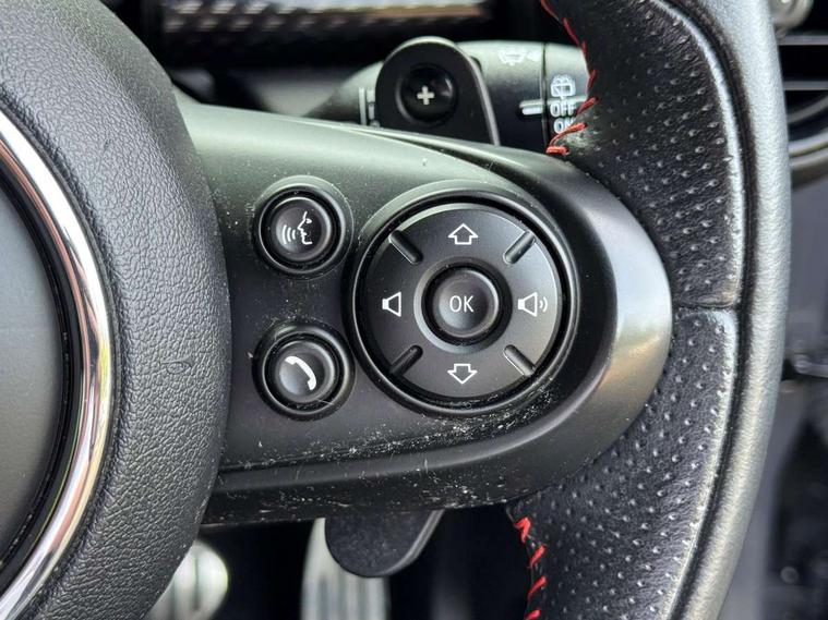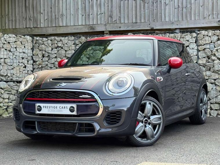 Acoustic seat-belt warning, Brake fluid level warning light, Brake pad wear indicator warning light, DTC - Dynamic traction control, Exterior temperature gauge, Intelligent emergency call, MINI Driving Modes - centre toggle switch to control driving setting (sport, mid and green), MINI TeleServices, Oil level indicator, On board computer, Push button starter, Service interval indicator, Servotronic PAS, Electronic differential lock, Performance Control, Auxiliary input socket, DAB digital radio module, 2 speed wipers+intermittent wipe, Anti dazzle mirror, Anti trapping/one touch open close front windows, Body colour scoop integrated into engine- compartment lid, Body coloured bumpers, Chili red grille bar, Chrome bezels around rear lights and headlights, Chrome door handles, Chrome plated fuel cap, Chrome plated trim on bottom edge of window, Chrome strip on lower grille, Electric front windows, Electrically adjustable door mirrors, Extended wheel arches, Follow me home headlights, Green tinted heat insulating glass, Heated door mirrors/heated windscreen washers, Heated rear window with auto timer, High gloss black tailgate, Honeycomb radiator grille, John Cooper Works roof spoiler, Metal look door sill finishers, Rear wiper, Side scuttles, Twin chromed exhaust pipes, White indicator lights, 2 rear head restraints, 4 boot load lashing points, 6 way manually adjustable passenger seat, 6-way manually adjustable driver's seat, Active carbon filter, Air recirculation system, Anthracite headlining, Auxiliary socket in centre console storage compartment, Centre console storage, Driver's seat height adjuster, Driver/passenger sunvisors, Easy entry seats, Front and rear cupholders, Front head restraints, Front interior light, Front passenger grab handle, Front seat backrest storage nets, Front sports seats, Gear/selector and handbrake in artificial leather, Internal chrome door handles, Isofix child seat preparation, Luggage compartment lighting, Multifunction steering wheel, Passenger seat height adjuster, Reach + rake adjustable steering column, Rear grab handles, Rear storage trays, Split folding rear seats, Storage compartments in doors, Toolkit in luggage compartment, Vanity mirrors, 3 point seatbelts, ABS/EBD, ASC+T, Brake calipers in red, Cornering brake control (CBC), Crash Sensor - activates hazard/interior lighting + unlocks doors, Driver and passenger airbags, Driver/front passenger side airbags, DSC - Dynamic Stability Control, Fuel cut off safety device, Head airbags, Hill start assist, Passenger airbag deactivation system, Seatbelt pretensioners, Tyre pressure warning, Ventilated front disc brakes, Drive away door locking, Locking wheel bolts, Remote central locking/doors+fuel cap+tailgate, Second remote key, Thatcham category 1 alarm + immobiliser,
