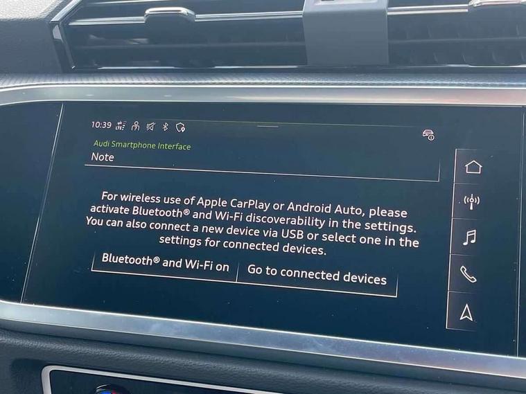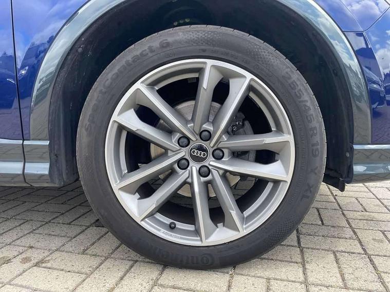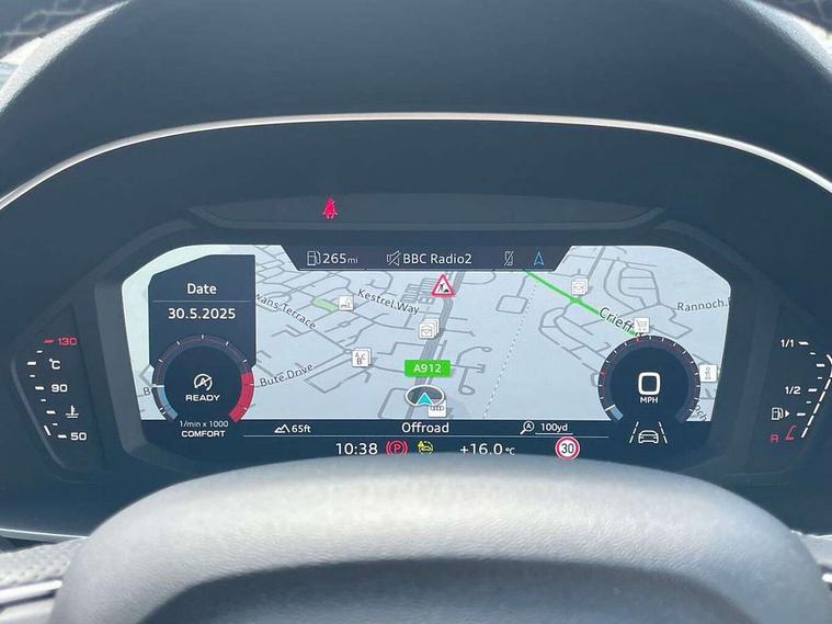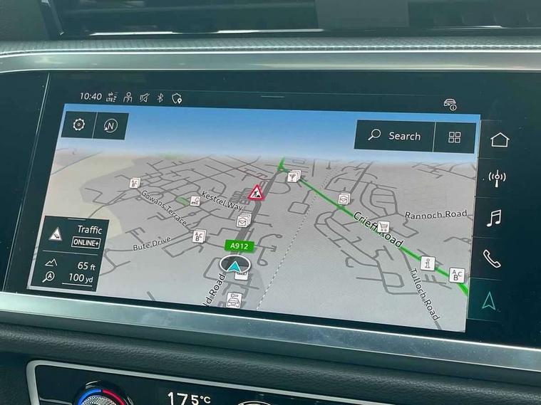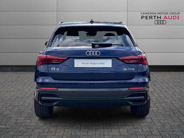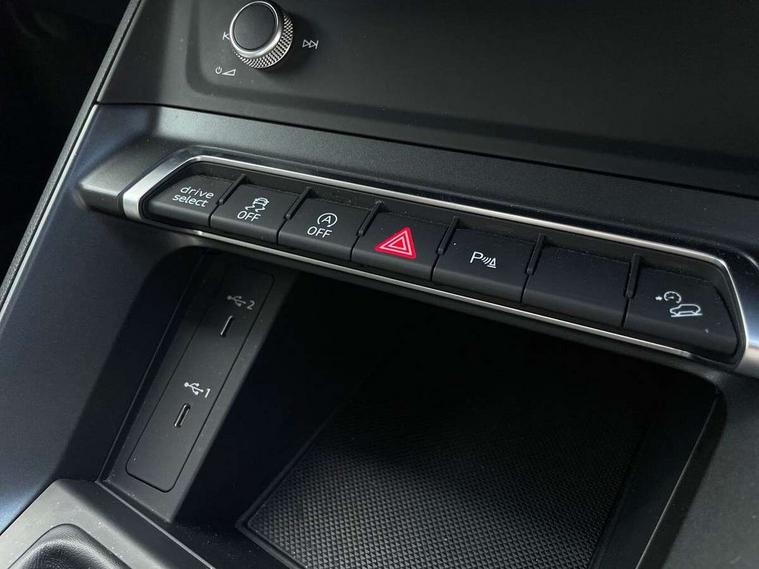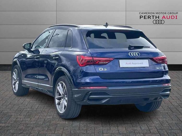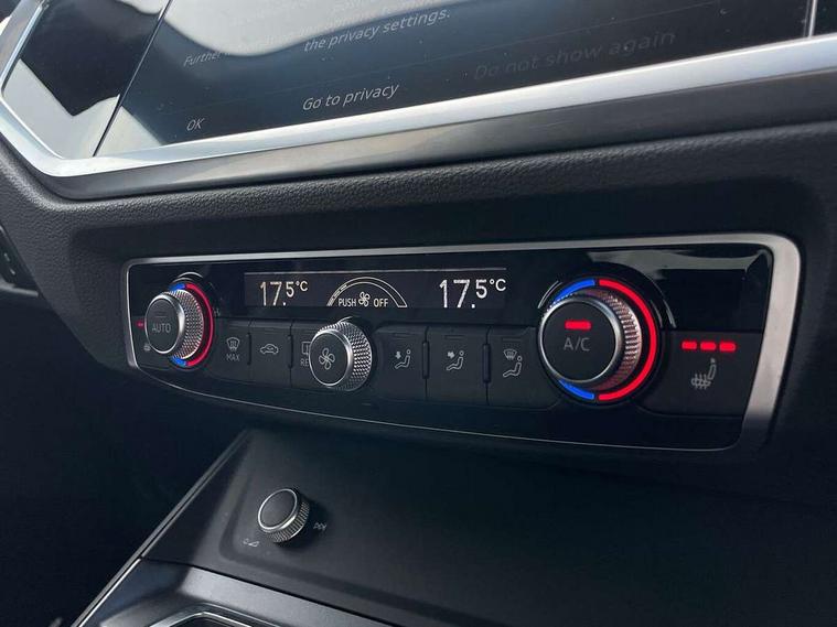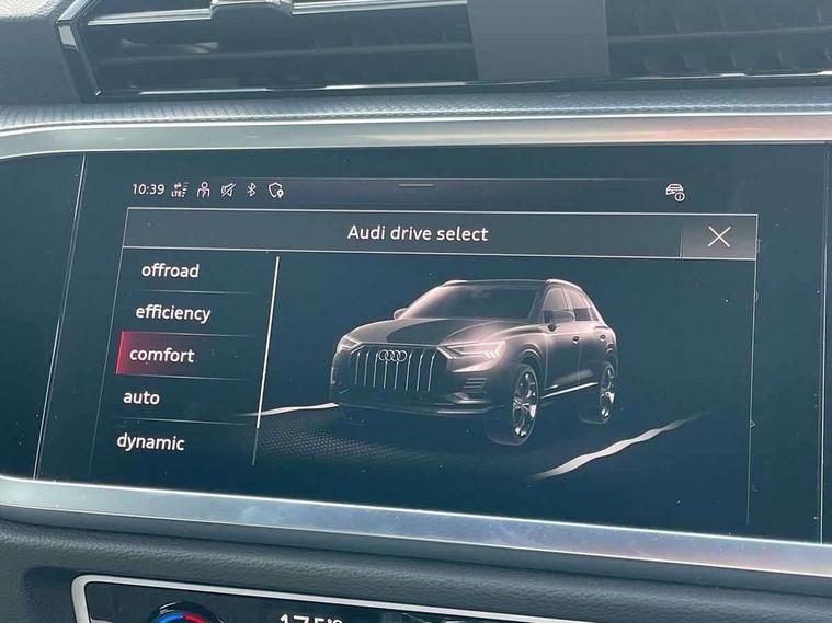 Amazon alexa Integration, Audi drive select, Audi lane departure warning, Audi smartphone interface includes wireless Apple carplay/Android Auto, Audi Virtual Cockpit - 10.25" display, Bluetooth interface, Camera based traffic sign recognition, Cruise control + speed limiter, Legal emergency call, MMI Navigation Plus with high resolution 10.1 inch touchscreen colour display, Power operated tailgate, Progressive steering, Rear parking sensors, Service interval indicator, Start stop system with recuperation, Voice control system with natural language interaction, Sports suspension, 2 USB-C ports with charge and data functions, 6 passive loudspeakers, DAB digital radio module, Acoustic windscreen, Auto dimming frameless rear view mirror, Black roof rails, Electrically folding, adjustable and heated door mirrors with integrated LED side indicators and kerb view function for passenger side, Front and rear electric windows, Front fog lights, Grille vertical bars in aluminium silver/Matt, High gloss black finish B and C pillars, LED headlights with LED daytime running lights, LED rear lights, LED third brake light, Privacy glass dark tinted rear and rear-side windows (from B-pillar backwards), Rain and light sensors, Rear diffuser grille in grained matt black, Rear diffuser strip in matt titanium black, Rear side wing doors, Rear wiper, S line bumpers in contrasting Manhattan grey, Variable front intermittent wipers, 12V socket in rear centre console, 3 seat bench in 2nd row, 3 spoke flat bottomed multi-function leather sport steering wheel, 40:20:40 folding with manual adjustment for 60:40 forwards/backwards position and backrest angle, Adjustable rear seat bench/backrest with centre armrest and cupholder, Black cloth headlining, Dual zone electronic climate control, Front and rear black floor mats with contrast stitching in rock grey, Front and rear headrests, Front and rear roof module including reading lights, Front centre armrest, Glove compartment lighting, Height and reach adjustable steering wheel, Illuminated door sill trims with S logo, ISOFIX child seat mounting for front passenger with airbag deactivation and outer rear seat including top tether attachment point for outer rear seats, Luggage compartment light, Manual front seats with height adjustment, Perforated leather gearknob, Single front passenger seat, Stainless steel luggage compartment sill finisher, Stainless steel pedals, Black styling pack - Q3, Non smoking pack - Q3, 3x3 point rear seatbelts, 6 airbags - Driver, front passenger, curtain and side windows, Audi pre-sense front with pedestrain and cyclist recognition, Electromechanical parking brake, Electronic stabilisation control including ABS, ASR and EDL, Front seatbelt reminder, Hill descent control, Hill hold assist, Manual child lock in rear doors, Pre sense basic, Seatbelt monitoring, Tyre pressure warning, Warning triangle and first aid kit, Anti theft alarm, Anti theft wheel bolts, Immobiliser, Remote central locking, Detail dashboard around MMI touch colour display in glass look, black with surround in aluminium look, Leatherette door armrest, Piano black inlay,
