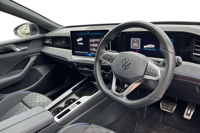 2 x Front USB-C ports, 2 x USB-C charging sockets on the centre console in the rear, charging capacity up to 45W, Adaptive cruise control, Advanced driver attention and drowsiness monitor, Chat GPT function for IDA voice assistant, Digital cockpit pro 10.25" high resolution, Discover media navigation system includes streaming and internet, Dynamic road sign display, E-Sim card for online connectivity, eCall emergency call service, Electronic engine sound, Full electric tailgate operation, Inductive smartphone charging without external antenna connection, Memory feature for park assist, Oncoming vehicle braking when turning including swerve support, Park assist with park distance control, Predictive speed limiter, Preparation for We connect and We connect plus, Wireless app connect, Battery 340 A (58 Ah), Charging cable mode 3 type 2, 16 A6 A, Front wheel drive, Petrol Particulate Filter, 8 Speakers, Auto dimming interior rear view mirror, Automatic headlights, Body colour bumpers, Body colour door handles, Heated windscreen washer jets, Laminated safety glass windshield, heat and sound insulating, LED third brake light, Rain sensor, Rear side wing doors, Rear wiper, Welcome light with surround lighting, 3 seat bench in 2nd row, 3 zone air care climatronic with rear air conditioning control panel, 30 colours options interior ambient lighting, Brushed stainless steel pedals, Front + rear carpet mats, Front head restraints, Front sports seats, Isofix child seat preparation, easy-fit (for two outer rear seats, and front passenger seat), compatible with I-size, Luggage compartment cover, power operated, Rear centre armrest, Single front passenger seat, Sun visors with illuminated vanity mirrors for driver and front passenger, Sunblind for rear side windows, Three rear head restraints, Unsplit rear seat bench, split folding backrest, Dynamic chassis control (DCC) pack - Passat, LED High matrix headlamps pack - Passat, 3x3 point rear seat belts, ABS (Anti locking brake system) includes BAS (Brake assist) and EBD (Electronic brake pressure distribution), Autonomous emergency braking front assist with pedestrian and cyclist monitoring, Disc brakes in front, Driver/Front Passenger airbags, Drivers knee airbag, Electronic parking brake with auto hold, ESC (Electronic stability control) + EDL (Electronic Differential lock) and ASR (Traction control), EDTC (Engine drag torque control), Extended safety system with proactive passenger protection system, Front passenger airbag deactivation switch, Hill hold function, Tyre pressure loss indicator, Warning triangle and first aid kit, Alarm with interior protection, Electronic engine immobiliser, Keyless locking and starting system keyless access with safelock, Tool kit for tyre mobility set, Trims for alloy wheels, Tyre mobility kit including compressor and sealing foam,