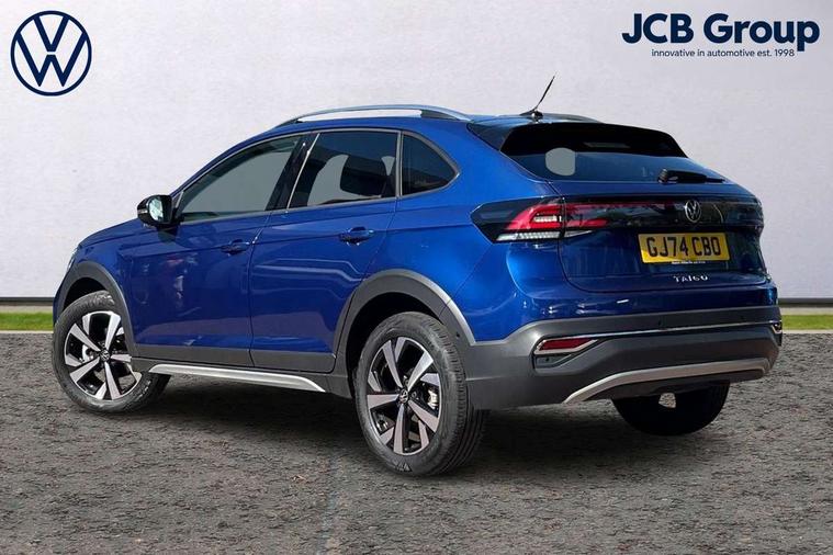 Adaptive cruise control, Advanced driver attention and drowsiness monitor, App-Connect including App-Connect Wireless, Digital cockpit pro - 10.25" high resolution TFT dash display screen with customizable menus and information, Dynamic road sign display, e-Call (emergency call), Power Steering, Travel assist including emergency assist, Washer fluid level indicator, Wireless Charging including Bluetooth, Rear shock absorption, Start-stop system with battery regeneration (recuperation - energy recovery during braking), Digital radio reception (DAB+), Diversity antenna for FM reception, WeConnect plus, Ambient lighting with logo projection, Aspherical driver's exterior mirror, Auto headlights, Body coloured bumpers and radiator grille with chrome trim and front fog lamps with chrome bezel, Dual chrome twin tailpipes on left and right, Electric windows, External USB type C socket and charging sockets, LED rear combination lamp, LED third brake light, Left convex exterior mirror, Power folding adjustable/heated exterior mirrors and front passenger exterior mirror lowering function, Rear fog light on one side, reversing light on both sides, Rear side wing doors, Rear wash/wipe with intermittent wipe setting, 12V socket in centre console, 2 front reading lights, 3 rear head restraints, 3 seat bench in 2nd row, Air care climatronic air conditoning system with active combination filter and 2-zone temperature control, Black carpets, Child seat anchor for child seat system i-Size, 2x top tether and child seat anchor in front on front passenger side, Chrome bezel for instrument cluster, vents, door handles + gear shift, Driver and front passenger seat height adjustment, Front + rear carpet mats, Front centre armrest, Front footwell illumination, Front sports comfort seats, Height and reach adjustable steering wheel, Interior ambient lighting and surround lighting, Leather trimmed gear knob, Leather wrapped multifunction steering wheel, Luggage compartment floor, Luggage compartment light, Lumbar support for driver's and front passengers seat, Single front passenger seat, Split folding backrest with centre armrest and unsplit rear seat bench, Storage compartment under front seats, Sun visors with illuminated vanity mirrors, Chrome Package - Taigo, Drivers assistance pack - Taigo, IQ.LIGHT - LED matrix headlights pack - Taigo, Light and sight pack - Taigo, 2 x 3-point seatbelts/outer rear seats with ECE label, 3-point seat belts in front with pretensioner and height adjustment, 3-point seatbelt for centre rear seat, Adaptive driver and front passenger airbags with passenger airbag deactivation function, Driver and front passenger safety-optimised head restraints, Electronic stability control, Extended and predictive pedestrian/ cyclist protection, Front and rear disc brakes, Front curtain and side airbags with center airbag, Hill start assist, Manual rear child locks, Single tone horn, Tyre pressure loss indicator, Anti-theft alarm system with interior monitoring, backup horn, and towing protection, Low rolling resistance tyres,