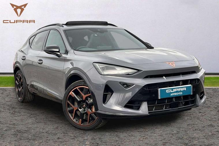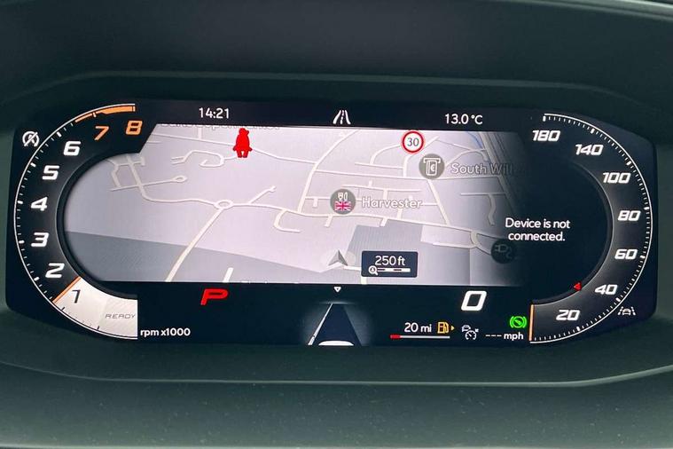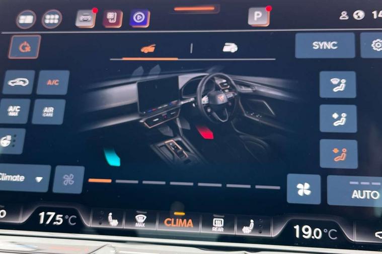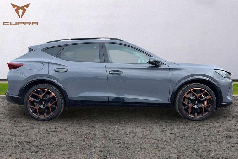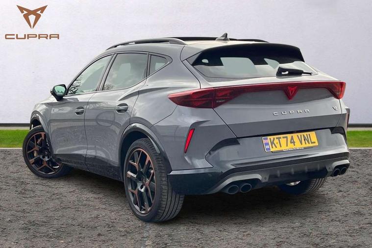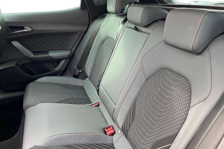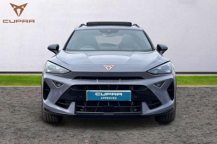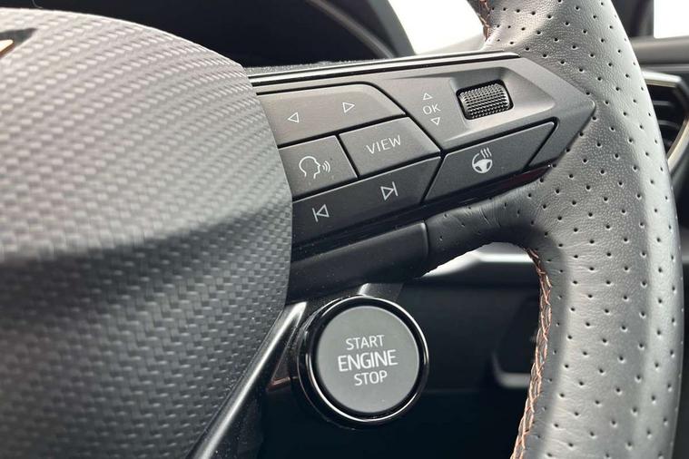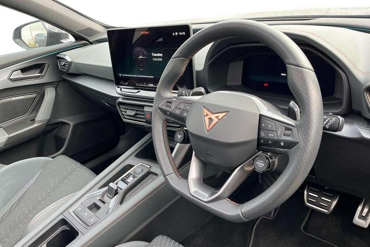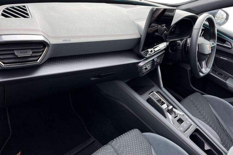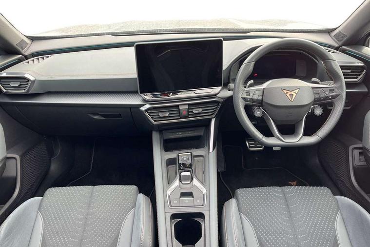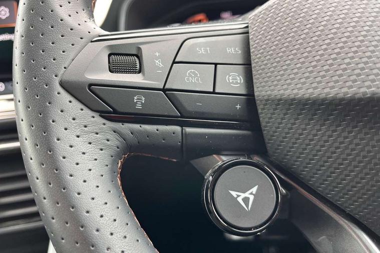 10.25" digital cockpit and configurable dashboard, Adaptive cruise control with follow-to-stop and speed limiter, Advanced driver alert system, Advanced lane assist with semi-automatic vehicle control in a medical emergency and traffic jam assist, Dynamic chassis control with driving profile selection (Comfort, Sport, CUPRA, Individual), Dynamic road sign display, Emergency steering support with turn assist, Forward collision warning with automatic braking, Full link phone integration, Intelligent park assist, RPM, trip computer, outside temp gauge, instrument light brightness, low fuel warning light, lights on reminder, gearshift indicator, Service interval indicator, Side and exit assist, Speed sensitive power steering, Start/stop system with regenerative braking, Top view camera, Virtual pedal and electric tailgate, Voice control system, Wired Android Auto, Wireless apple carplay, Wireless phone charger, Adaptive chassis control with continuous operation, CUPRA sport suspension, Electronic locking differential and dynamic traction support, 2 front and 2 rear USB type C sockets, Immersive by Sennheiser TM - 10 speakers, 1 central speaker, 1 subwoofer, Media system with navigation, 12.9" touchscreen display, voice control, DAB, steering wheel mounted controls, 3D LED rear lights, Auto dimming rear view mirror, Black roof spoiler, Body colour door handles, Body coloured bumpers, Dark grey wing mirror, Daytime running light with automatic headlight control and coming home feature, Door panel ambient lighting, Dynamic headlight range control, Electric front/rear windows, Electrically adjustable heated and folding door mirrors with memory function, Gloss black roof rails and window surrounds, High beam assist, LED 3rd brake light, LED front fog lamps with cornering function, LED Taillights with dynamic indicator, Matrix LED headlights with multifunction camera, Rain sensing wipers, Rear diffuser with twin exhaust pipe on each side, Rear fog lights, Rear side wing doors, Rear wash/wipe, Side skirts, Tinted rear windows, Welcome lights (within exterior mirror housing), 12V socket, 2 front and 2 rear reading lights, 3 seat bench in 2nd row, 60/40 split rear bench seat with armrest and mechanical seat release, Black headlining, Black interior roof lining, Cupra sports pedals, Dust/pollen filter, Electrically adjustable front seats with lumbar support and memory function, Front and rear head restraints, Front centre armrest, Heated front seats, Heated supersports multifunction leather steering wheel with satellite buttons and gear shift paddles, Height/reach adjust steering wheel, Illuminated aluminium doorsteps, Illuminated interior front door sills, Illuminated sunvisor with mirror, Isofix, Leather dashboard, door insert and side trim panel, LED smart wraparound lighting, PVC/Textile upholstery + cup bucket seats, Satellite steering wheel, Single front passenger seat, Three zone climate control with control panel in rear, Variable luggage/load compartment floor, 3 point seatbelts on all rear seats, ABS, Akebono brakes, Brake control system - ESC and brake booster, Child proof door locks, Driver and front passenger airbags with front passenger airbag de-activation, Driver and front passenger knee airbag, Electronic parking brake, Hill hold control, Performance brakes with front brembo calipers, Pre-crash front and rear seat belt tensioner, window closure and hazard lights, Public e-call, Seat belt reminder for front and rear seats, Side airbag for front and rear with curtain airbags, Tyre pressure monitoring system, Anti theft alarm system, KESSY Advanced - Keyless start, keyless entry with SAFELOCK, Locking wheel bolts, Copper and aluminium interior detailing, 19" Hailstorm forged machined R black and copper alloy wheels, Breakdown and tool kit,