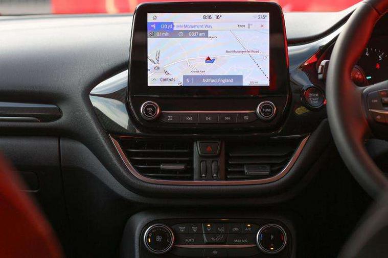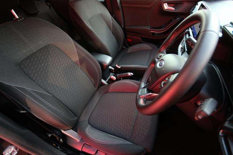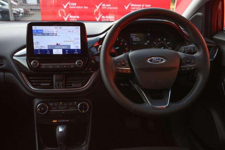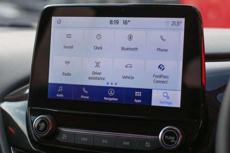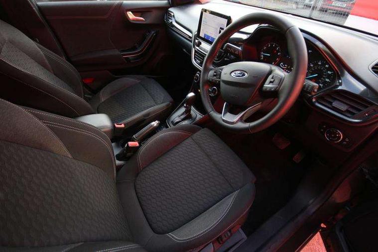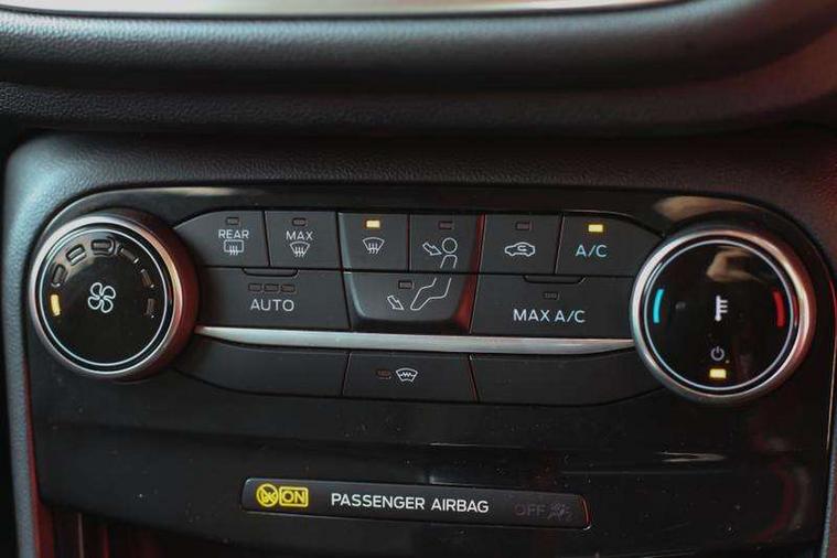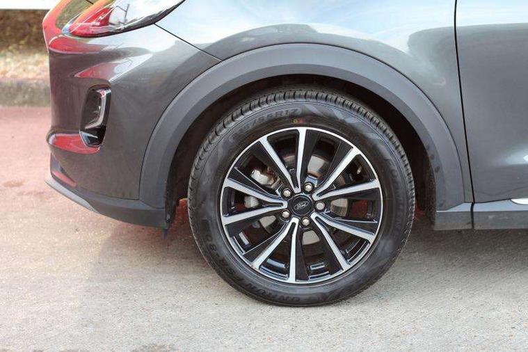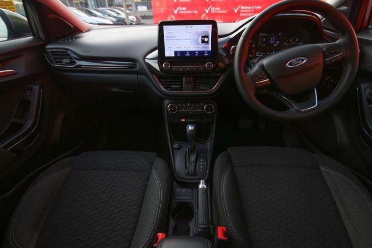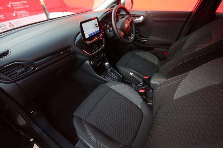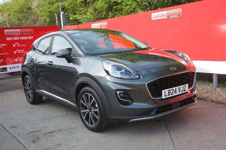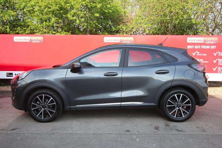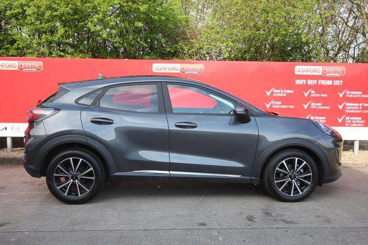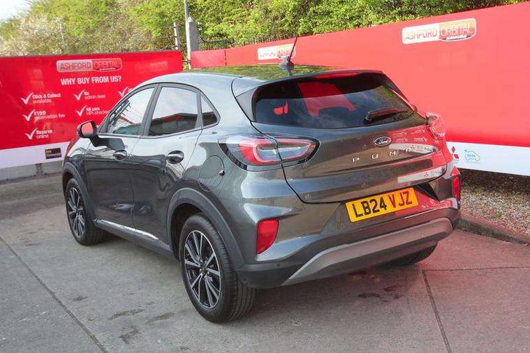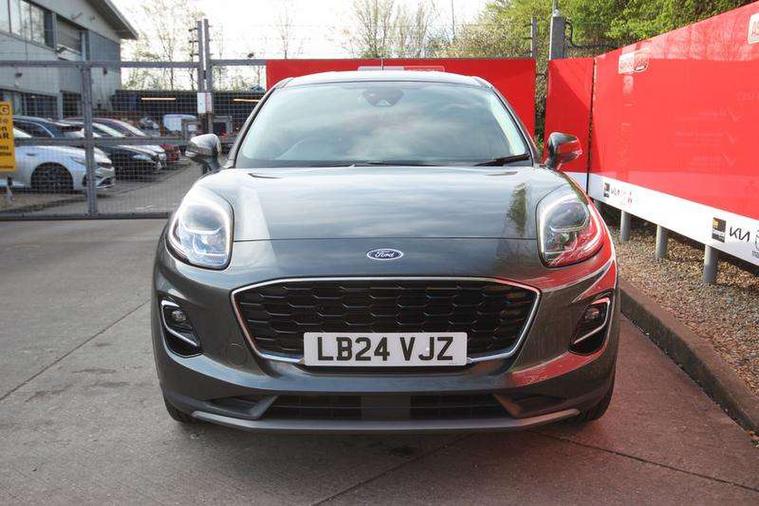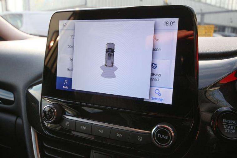 Driver impairment monitor, Emergency call service, Ford easy fuel, Lane keeping aid with lane departure warning, Power assist steering, Power start button, Rear parking sensor, Selectable drive modes(Normal, sport, Eco, trail, slippery), Speed sign recognition, Standard suspension, Automatic headlights with auto high beam, Automatic rain sensing wipers, LED rear lamps, Power foldable heated door mirrors with puddle lamps, Projector headlamps with LED day time running lights and front fog lamps, Quickclear heated windscreen, Rear side wing doors, Rear wiper, Third brake light, 3 seat bench in 2nd row, Centre console with armrest and stowage, Electronic automatic temperature control (EATC), Ford megabox extended bootspace, Front and rear head restraints, Front floor mats, Manual 2 way passenger seat adjustment, Manual 4 way driver seat adjust with lumbar adjustment, Sensico leather steering wheel/gear knob/handbrake, Single front passenger seat, Titanium cloth upholstery, Ford SYNC 3 navigation pack - Puma, 3 rear seatbelts, Child safety lock, Electronic stability control (ESC) and hill start assist, Pedestrian/cyclist detection & post-collision braking, Pre collision assist system, Tyre pressure monitoring system (TPMS), Thatcham alarm, 17" 10 spoke absolute black machined finish alloy wheel,