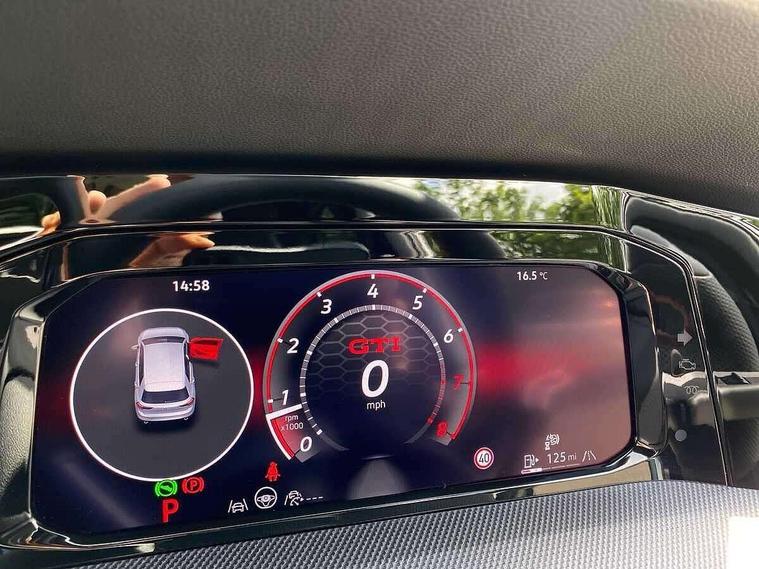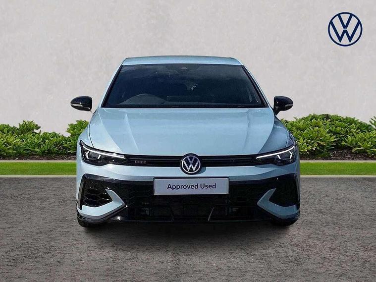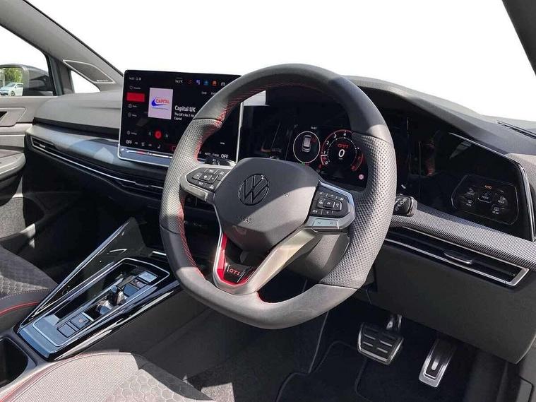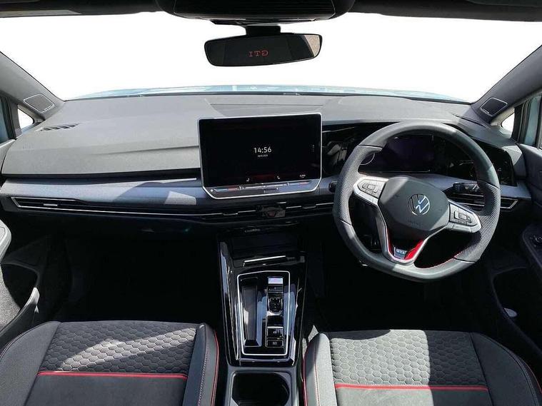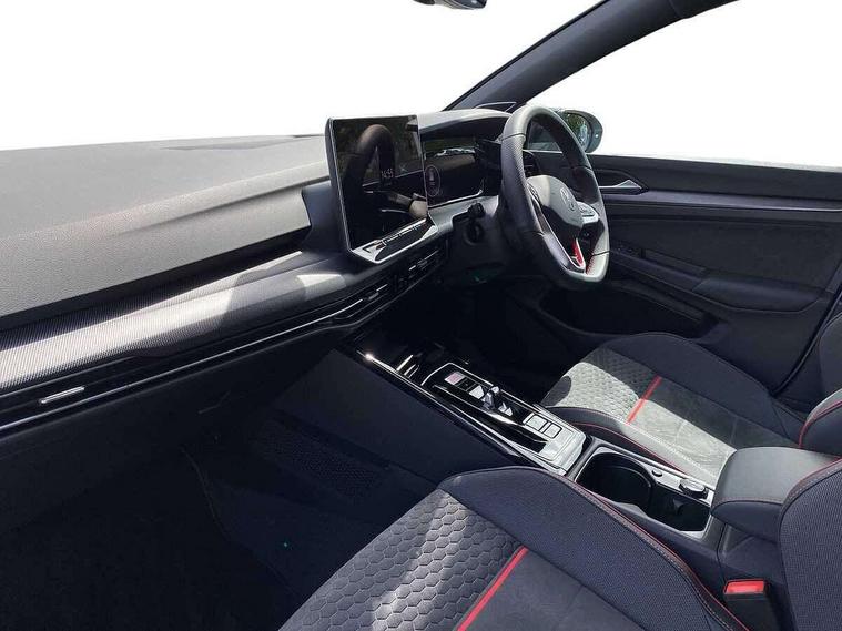 Activated carbon canister, Adaptive cruise control (ACC), Advanced driver attention and drowsiness monitor, Dynamic road sign display, E-Sim card for online connectivity, eCall emergency call system, Lane change system side assist, rear traffic alert and exit warning system, Multi-color Digital cockpit pro, selection of different info profile possible, Multifunction front facing camera for distance control, Navigation system, Oncoming vehicle braking when turning including swerve support, Preparation for light assist system, Progressive steering, Speed limiter, Speedo, rev counter, electronic odometer, trip, service interval display, exterior temperature and fuel gauge, Traffic jam assist, Voice enhancer and voice control, Warning signal and warning light for front and rear seatbelts not fastened, We connect plus preparation, We connect preparation, Wireless app connect, Front differential lock, Petrol Particulate Filter, Sports suspension, Start-stop system with battery regeneration (recuperation - energy recovery during braking), 2 USB C ports in front, 2 USB charging sockets on the centre console in the rear charging capacity upto 45W, Comfort telephony + wireless charging, without wireless aerial connection, Digital radio reception (DAB), Diversity antenna for FM reception, Gaming platform via car app, Infotainment system with 12.9" display, Mobile phone interface with inductive charging feature, 3rd brake light, Auto dimming rear view mirror, Auto headlights, Automatic headlamp activation with Coming home and Leaving home feature, Body colour door handles, Bumpers in "Clubsport", air intake in honeycomb structure, Exterior ambient lighting with illuminated lighting animation and wake up/goodbye scenario, Exterior mirrors convex on the left and aspherical on the right, Front and rear electric windows, Front fog lamps and cornering light, Heat insulating windshield made of laminated glass, LED daytime running lights, Nameplate 'GTI' set, Rain sensor, Rear fog light on one side and reversing lights on both sides, Rear side wing doors, Rear windscreen washer and wiper with interval delay, Remote electrically foldable door mirrors, puddle lights and reverse activated passenger's door mirror, Welcome light with surround lighting, 12V socket in front centre console, 12V socket in luggage compartment, 3 rear head restraints, 3 seat bench in 2nd row, 30 colour ambient lighting, illuminated center console storage compartment in front, Air care climatronic 3 Zone automatic climate control with rear air conditioning control panel, Aluminium gearshift handle, Brushed stainless steel pedals, Carpet mats, front and rear, Chrome plated radiator grille inserts, air vent surrounds and light switch surrounds, Front centre armrest, ISOFIX anchors for child seats on outer rear bench seats and on front passanger seat compatible for i-Size, Luggage compartment lighting, Rear cupholder and loadthough, Single front passenger seat, Soul black instrument panel, Split folding backrest with centre armrest and unsplit rear seat bench, Storm grey roof lining, Sun visors with illuminated vanity mirrors, Driver assistance pack - Golf DSG Estate/Hatchback, Technology park and comfort pro package - Golf Hatchback, 3 point height adj front seatbelts + pretensioners, 3 rear three point seatbelts, ABS, Autonomous emergency braking front assist with pedestrian and cyclist monitoring, Child locks on rear doors, Driver and front passenger airbag with front passenger airbag deactivation, Electronic parking brake with auto hold, ESC (Electronic Stability Control), Extended pedestrian protection measures, Hill start assist, Rear disc brakes, Two tone horn, Tyre pressure loss indicator, Volkswagen roadside assistance, Anti theft wheel bolts, Preparation for alcohol interlock, Decorative inserts carbon grey for dashboard and front door trim panels,