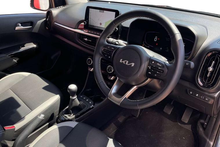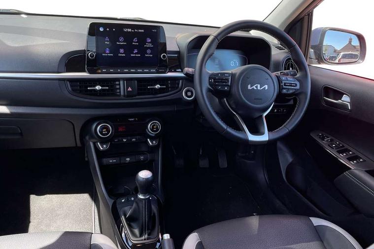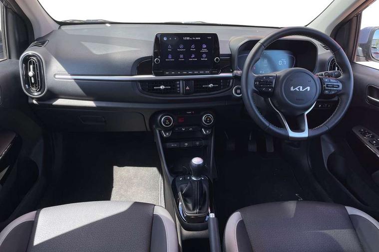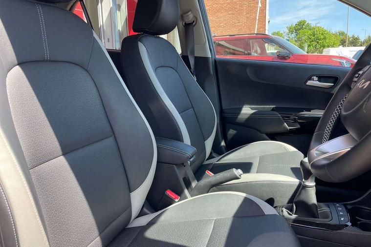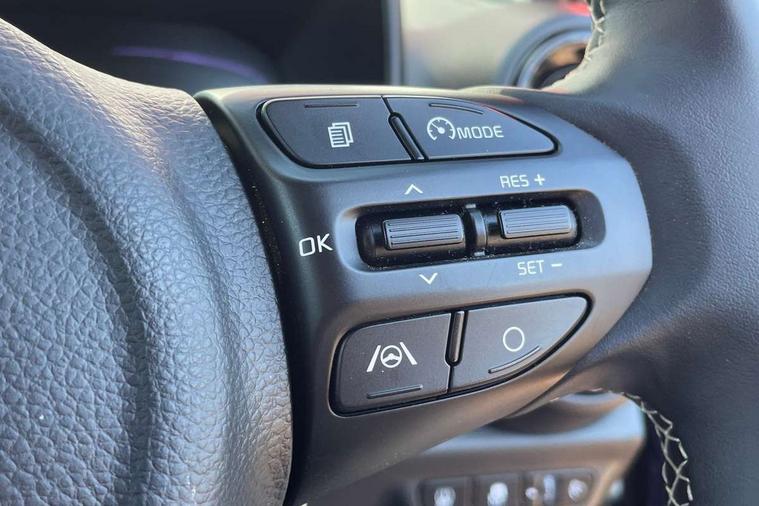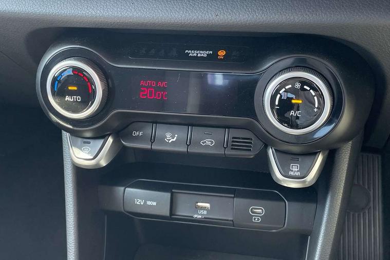4.2" driver display screen, 8" touchscreen navigation, Apple car play/Android Auto with voice control, Cruise control + speed limiter, Emergency call service, Emergency stop signalling system, External temperature gauge, Forward Collision-Avoidance Assist (FCA) 1.0 - City/Pedestrian/Cyclist, Intelligent speed limit assist, Kia Connect (UVO), Lane Follow Assist 1.0, Lane keep assist, Motor driven power steering, Rear parking sensors, Reversing camera system, Tachometer, Trip computer, Wireless Smartphone charger, 4 speaker audio system, Bluetooth with music streaming, USB ports for connection of a media device, Automatic defog system, Automatic headlight control system, Body colour bumpers, Body colour side sill mouldings, Body coloured door mirrors, Body coloured wheel arches, Electric adjustable/heated/folding door mirrors with LED indicators lights, Electric front and rear windows, Electric front touch drivers front window, Headlamp levelling, Heated rear window, High mount brake light, LED daytime running lights, LED Headlights, LED rear lights, Privacy glass - Rear windows and tailgate, Rain sensor, Rear fog lights, Rear side wing doors, Rear wiper, Silver window surround, Speed variable front wipers, Tinted windshield glass, Visible VIN plate, 12V power point front, 3 seat bench in 2nd row, 60:40 Split folding rear seats, All round height adjustable headrests, Artificial leather steering wheel, Artificial leather upholstery, Automatic air conditioning, Centre console storage box, Driver and front passenger sunvisors with driver's side illuminated vanity mirrors, Front and rear door storage, Front cabin lights, Front passenger USB-C charging port, Glovebox, Grey headlining, Heated front seats, Heated steering wheel, ISOFIX Child seat top tethers and anchor fixings, Luggage area light, Luggage area parcel shelf, Luggage board, Luggage net + hook, Manual adjust steering wheel, Manual adjustable driver and front passenger seat, Rear cabin lights, Rear USB charging port, Single front passenger seat, All round 3-point seatbelts, Anti-lock braking system (ABS), Electronic stability control, Front + rear side airbags, Front airbags, Front passenger airbag cut-off switch, Front seatbelt height adjusters, Hill hold control, Hill start assist control (HAC), Rear airbags, Seatbelt warning, Side impact protection, Torque vectoring brake based and straight line stability (SLS), Traction control, Tyre pressure monitoring system, Vehicle stability management, Anti theft alarm, Engine immobiliser, Folding key, Locking wheel nuts, Manual child locks, Rear occupant alert, Remote central door locking, Smart key with engine start/stop button, Smart key with motion sensor, Thatcham category 2 security alarm and immobiliser, 16" alloy wheels, Tyre mobility kit,