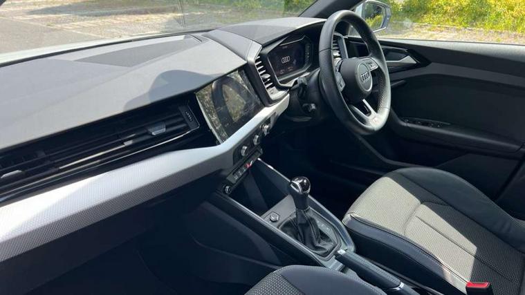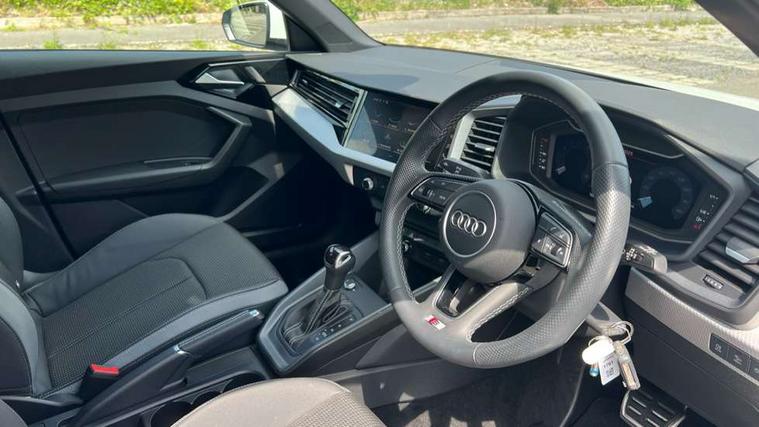 10.25" Digital instrument cluster display classis style instrument dials + speed, odometer, time, outside temperature, telephone menu + fuel level warning, Audi drive select - power steering assistance + engine + gear shift 3 preset modes (auto, dynamic, efficiency and an Individual mode), Audi smartphone interface with connect compatible smartphone via USB directly MMI display + Nav, music, third party apps controlled via MMI controller, Automatic start/stop system, Bluetooth interface, Cruise control, Driver's information system, Electromechanical power steering, Emergency e-call, Lane departure warning system, Rear parking sensor, Service interval indicator, Speed limiter, Voice control system, Washer fluid level indicator, Sports suspension, 2 x USB type C connection points, 6 passive loudspeakers, DAB Digital radio, MMI radio plus with 10.1" colour MMI display screen and MMI touch, Auto dimming rear view mirror, Body coloured door mirrors, Door sills with aluminium inlays and S Line logo, Electric front and rear windows, Electrically adjustable, heated, folding door mirrors with integrated LED side indicator, Front side air inlets in grained matt black and C frame in anthracite black, Heat insulating glass windscreen and side windows, Heated rear windscreen, High level LED brake light, LED headlights with LED rear lights + dynamic rear indicators + headlight adjustment and high beam, turning light + LED daytime running lights, Privacy glass, Radiator grille and rear diffuser in matt anthracite black, Radiator protective grille frame in matt aluminium silver, Rain and light sensors, Rear fog lights, Rear side wing doors, Rear wiper, S line badges on front wings, Side front spoiler lips in grained matt black, 12V socket in centre console with two cup holders, 3 rear seats with headrests, 3 seat bench in 2nd row, 3 spoke leather multi-function plus steering wheel features S badging and grips in perforated leather with contrast stitching, 40:60 Split folding rear seat or folded fully, Black cloth headlining, Driver and passenger seat with manual height adjust with forward and backwards adjustment, Front and rear black floor mats with contrast stitching in fine silver, Front head restraints, Front passenger seat, Height and reach adjustable steering wheel, ISOFIX child seat mounting for front passenger and outer rear seats including top tether attachment point of outer rear seats, Leather gear knob with aluminium trim, Leather handbrake grip, Luggage compartment light with front and rear reading lights, Manual air conditioning, Manually adjustable lumbar support in front seats, Stainless steel pedals, LED interior lighting pack - A1, Luggage compartment pack - A1, S line exterior styling pack - A1 Sportback, 3x3 point rear seatbelts, Audi pre-sense front with pedestrain and cyclist recognition, Brake assist function, Driver and front passenger airbag with front side and head airbags, Electronic Stability Control including ABS, EBD, ASR and EDL, Front passenger airbag deactivation switch, Hill hold assist, Manual rear child locks, Seatbelt height adjustment for front seats, Seatbelt monitoring, Tyre pressure warning light, Warning triangle and first aid kit, Anti theft alarm, Anti theft wheel bolts and loose wheel warning, Immobiliser, Remote central locking with 2 foldaway keys, Aluminium trim for control switches, air vents and digital instrument cluster, Black dashboard, Silver grey inlays polygon structure in diamond paint finish, Structured grey accent areas including air vents, door handle recesses and centre console in quartz paint finish,