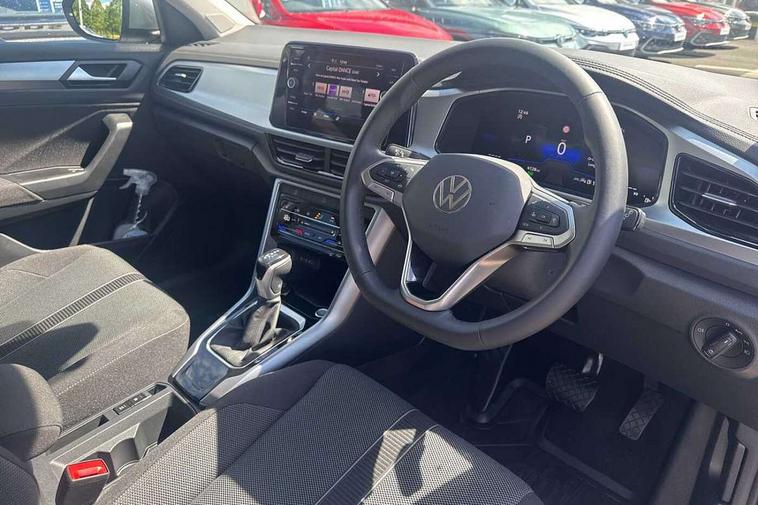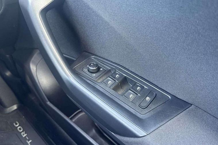 Advanced driver attention and drowsiness monitor, Dynamic road sign display, Emergency call service, Lane keeping system Lane Assist, Mobile phone interface, Modified key software - reduce switch off time for key status change to Long no motion, Online services, Park assist including front and rear parking sensors, Power assisted speed sensitive steering, Rear view camera, Service interval indicator, Tailgate/trunk lid release from outside, Think blue trainer driver tips and journey analysis, Warning sound and light for front seatbelts unfastened, Wireless app connect, Battery regeneration during braking, Front shock absorption, Rear shock absorption chassis with increased ride height, Start/stop function with battery regeneration, DAB Digital radio, Diversity antenna for FM reception, Front and rear 6 speakers, Music playback - MP3, WMA and AAC files, Premium USB cable in choice of either Apple or Android smartphone compatibility, SD card slot, Simultaneous pairing of 2 compatible mobile devices, Title and cover art display, We Connect and We Connect Plus functionality, Auto dimming interior rear view mirror, Automatic hazard lights activation under emergency braking, Automatic headlight control with LED separate daytime running lights with coming/leaving home function, Black roof rails, Body coloured bumpers and radiator grille with chrome trim and front fog lamps with chrome bezel, Body coloured exterior mirror housings and door handles, Electrically adjustable and heated door mirrors, Extended roof spoiler, Exterior mirrors aspherical on driver side, convex on front passenger side, External USB type C socket and charging sockets, Front windscreen wiper with intermittent wipe and 4 position delay, Heated rear window, LED 3rd brake light, LED rear combination lamps, LED rear number plate lights, Power windows with comfort operation and circuit breaker, Privacy glass for rear side windows and rear window, Rain sensor, Rear exhaust tailpipe, Rear fog light on one side and reversing lights on both sides, Rear side wing doors, Rear wash/wipe with intermittent wipe setting, Remote electrically foldable door mirrors, puddle lights and reverse activated passenger's door mirror, 12V power socket in centre console, 3 rear head restraints, 3 seat bench in 2nd row, 4 load lashing points in luggage compartment, Air care climatronic air conditoning system with active combination filter and 2-zone temperature control, Black stitching for floor mats, Ceramique roof liner, Cloth upholstery, Door and side trim panel in cloth, Drawer under drivers seat, Driver/front passenger seat height adjustment, Front centre armrest, Front comfort sports seats, Front cupholders x 2, Front reading light, Front seat back storage pockets, Glove compartment door with light, Instrument lighting, white adjustable panel illumination, Interior ambient lighting and surround lighting, Interior light delay, Isofix child seat preparation, Leather gearshift handle, Load-through provision with cup holder when folded down ('Unsplit rear seat bench, split folding backrest, with centre armrest), Luggage compartment lighting, Lumbar support for driver's and front passengers seat, Non-folding front passenger seat backrest, Single front passenger seat, Storage compartment in left and right luggage area, Storage compartment in rear doors, Storage compartments in driver and front passenger doors, Sunvisors with illuminated vanity mirrors, Variable boot floor, height adjustable and removable, Driver assistance pack without proactive passenger protection - T-Roc Life/Match, 3 point height adj front seatbelts + pretensioners, 3 point seatbelts in outer rear with ECE label, ABS, Child locks on rear doors, City emergency braking and pedestrian monitoring, Driver and front passenger airbag with front passenger airbag deactivation, Driver and front passenger safety-optimised head restraints, Drivers seatbelt reminder, Electronic parking brake, Electronic Stability Control (ESC) inc EDL (Electronic Differential Lock) and ASR (Traction Control), Front and rear passengers curtain airbag system including front side airbags, Front disc brakes, Hill start assist, Predictive pedestrian protection, Rear disc brakes, Two tone horn, Tyre pressure loss indicator, Volkswagen roadside assistance, Alarm with interior protection, Keyless locking and starting system keyless access with safelock, Pewter matt decorative inserts for intrument panel, centre console and door panels at the front, Trims for alloy wheels,