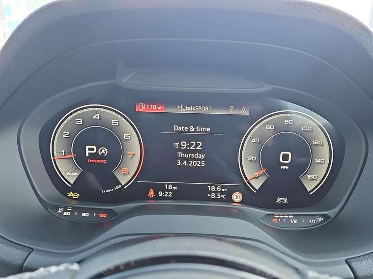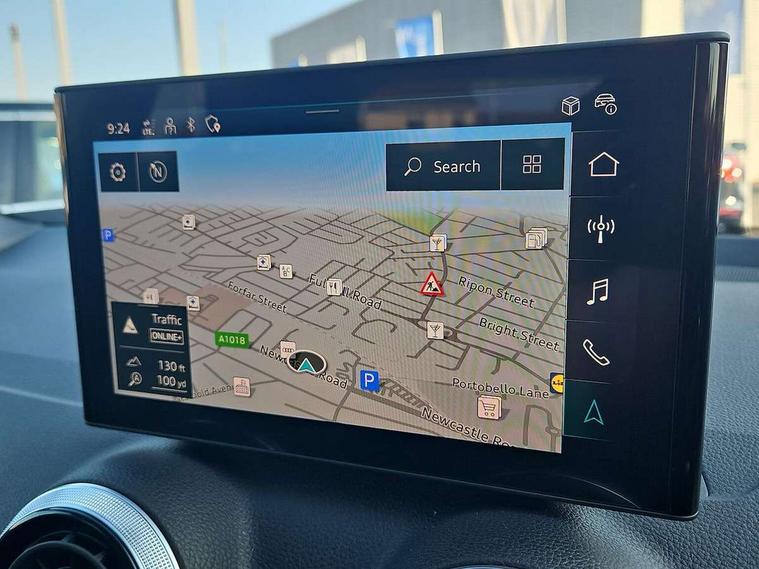 3D map display, Audi connect navigation and infotainment includes innovative services, Audi connect remote and control connects your vehicle to your smartphone, Audi drive select: S tronic - power steering assistance + engine + gearshift (modes: comfort, auto, dynamic, efficiency, individual), Audi smartphone interface - Apple carplay/Android Auto, USB connect, 2xSDXC card readers, voice control for navi, telephone, music and 3rd party apps, Audi virtual cockpit, Automatic start/stop system with recuperation, Bluetooth interface includes bluetooth audio streaming, Camera based traffic sign recognition, Cruise control, Distraction and Fatigue warning, E-call, Jukebox hard drive memory for music (10GB), Lane departure warning, MMI navigation plus with 8.8" touchscreen, Natural voice recognition, Power operated tailgate, Progressive steering, Rear parking sensors, Sport suspension, 6 passive loudspeakers, DAB Digital radio, USB type C port, Auto dimming rear view mirror, Black window trims, Body colour door mirrors, Electrically adjustable, folding, auto dimming and heated door mirrors with integrated LED side indicators, Front windscreen with grey tinted sunband, LED daytime running lights, LED headlights with dipped beam, high beam, position lights, indicators, LED rear lights, LED third brake light, Privacy glass - dark tinted rear and rear side windows from B-pillar backwards, Rear side wing doors, Rear wiper, S Line badges on the front wings, S Line body styling - front and rear bumpers, side skirts, radiator grille, rear diffuser insert and front air intakes, Variable front intermittent wipers, Wheel arch trims in manhattan grey, 12v socket in front, 3 seat bench in 2nd row, 3 spoke multi-function leather steering wheel with S badging, 4-way electric lumbar support for front seats including manual seat height adjustment for both front seats, 60/40 split folding rear seat bench, Black carpets, Black cloth headlining, Front and rear head restraints, Front centre armrest, Front sport seats, Front/rear floor mats, Height/reach adjust steering wheel, Illuminated door sill trims with S logo, ISOFIX child seat mounting in front passenger and rear outer seats, Manual air conditioning, Single front passenger seat, Stainless steel pedals, 3x3 point rear seatbelts, 6 airbags - Front, curtain and front side airbags, Electromechanical parking brake, Electronic stabilisation control including ABS, ASR and EDL, Front passenger airbag deactivation, Hill hold assist, Pre-sense front with pedestrian recognition, Seatbelt monitoring, Tyre pressure warning light with visual and acoustic warning, Warning triangle and first aid kit, Anti theft alarm, Anti theft wheel bolts, Electronically operated child locks, Remote central door locking, Aluminium interior element, Black dashboard, Gloss black centre console, Matt brushed aluminium trim inlays, Tool kit,