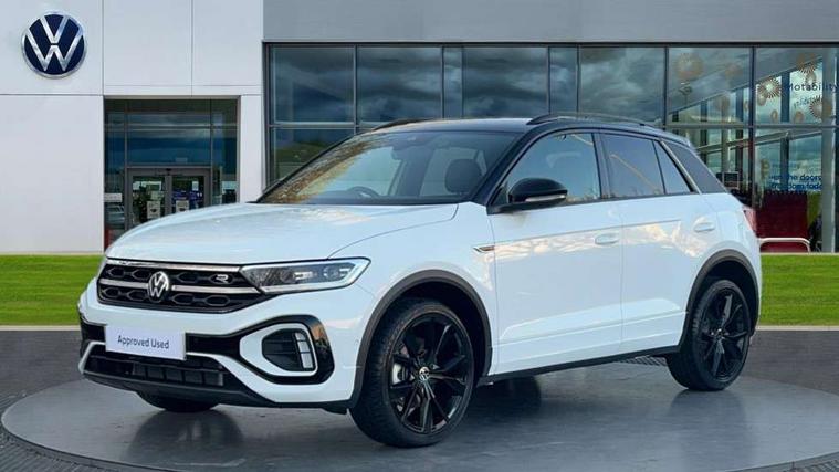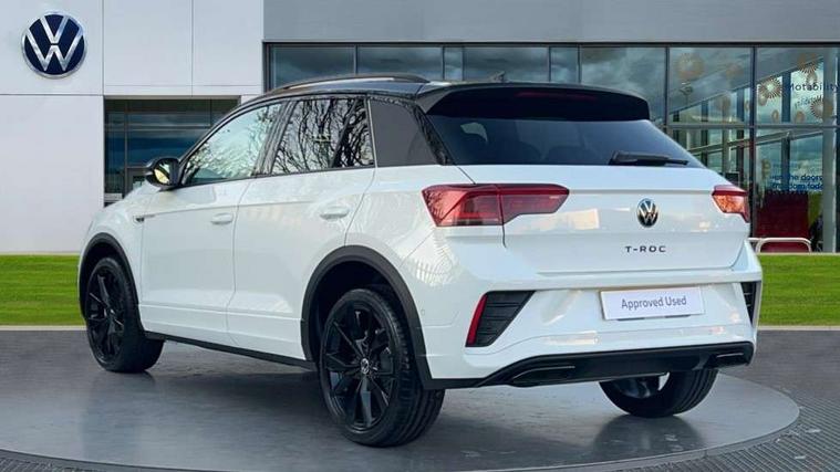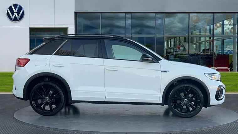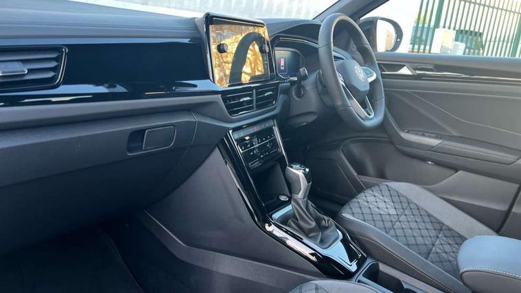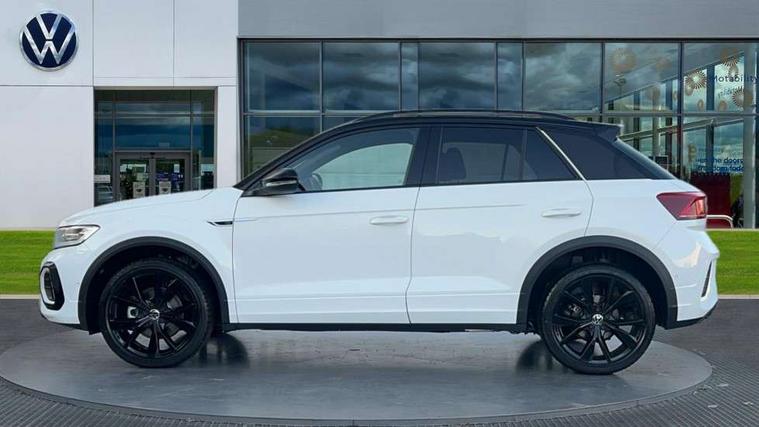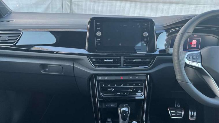 10.25" Digital cockpit pro, Advanced driver attention and drowsiness monitor, Emergency call service, Lane keeping system Lane Assist, Mobile phone interface, Modified key software - reduce switch off time for key status change to Long no motion, Online services, Park assist including front and rear parking sensors, Power assisted speed sensitive steering, Service interval indicator, Tailgate/trunk lid release from outside, Think blue trainer driver tips and journey analysis, Warning sound and light for front seatbelts unfastened, Wireless app connect, Battery regeneration during braking, Rear shock absorption chassis with increased ride height, Start/stop function with battery regeneration, DAB Digital radio, Diversity antenna for FM reception, Front and rear 6 speakers, Music playback - MP3, WMA and AAC files, Premium USB cable in choice of either Apple or Android smartphone compatibility, SD card slot, Simultaneous pairing of 2 compatible mobile devices, Title and cover art display, We Connect and We Connect Plus functionality, Auto dimming interior rear view mirror, Automatic hazard lights activation under emergency braking, Automatic headlight control with LED separate daytime running lights with coming/leaving home function, Dynamic cornering light, Electrically adjustable and heated door mirrors, Extended roof spoiler, Exterior mirrors aspherical on driver side, convex on front passenger side, External USB type C socket and charging sockets, Front windscreen wiper with intermittent wipe and 4 position delay, Heated rear window, Illuminated front grille, IQ LED matrix headlights, LED 3rd brake light, LED rear number plate lights, LED rear tail lights with dynamic turn signal, Light mode for poor weather, rain, fog or snow, Power windows with comfort operation and circuit breaker, R-Line design body coloured bumpers, Rain sensor, Rear exhaust tailpipe, Rear fog light on one side and reversing lights on both sides, Rear side wing doors, Rear wash/wipe with intermittent wipe setting, Remote electrically foldable door mirrors, puddle lights and reverse activated passenger's door mirror, 12V power socket in centre console, 3 rear head restraints, 3 seat bench in 2nd row, 4 load lashing points in luggage compartment, Air care climatronic air conditoning system with active combination filter and 2-zone temperature control, Artvelours cloth upholstery, Black roof lining, Chrome plated radiator grille inserts, air vent surrounds and light switch surrounds, Door and side trim panel with leatherette insert, Drawer under drivers seat, Driver seat height adjust, Driver's seat lumbar support, Front + rear carpet mats, Front centre armrest, Front comfort sports seats, Front cupholders x 2, Front footwell illumination, Front reading light, Front scuff plates with R Line logo, Front seat back storage pockets, Glove compartment door with light, Instrument lighting, white adjustable panel illumination, Interior ambient lighting and surround lighting, Interior light delay, Isofix child seat preparation, Leather gearshift handle, Leather wrapped multifunction steering wheel with paddle shift, Load-through provision with cup holder when folded down ('Unsplit rear seat bench, split folding backrest, with centre armrest), Luggage compartment lighting, Non-folding front passenger seat backrest, Passenger seat height adjuster, Passenger seat lumbar support, Single front passenger seat, Stainless steel pedals, Storage compartment in left and right luggage area, Storage compartment in rear doors, Storage compartments in driver and front passenger doors, Sunvisors with illuminated vanity mirrors, Variable boot floor, height adjustable and removable, Winter pack without heated windscreen washer jets - T-Roc, 3 point height adj front seatbelts + pretensioners, 3 point seatbelts in outer rear with ECE label, ABS, Child locks on rear doors, City emergency braking and pedestrian monitoring, Driver and front passenger airbag with front passenger airbag deactivation, Driver and front passenger safety-optimised head restraints, Drivers seatbelt reminder, Electronic parking brake, Electronic Stability Control (ESC) inc EDL (Electronic Differential Lock) and ASR (Traction Control), Front and rear passengers curtain airbag system including front side airbags, Front disc brakes, Hill start assist, Predictive pedestrian protection, Rear disc brakes, Two tone horn, Tyre pressure loss indicator, Volkswagen roadside assistance, Tool kit, Trims for alloy wheels, Tyre mobility kit including compressor and sealing foam,