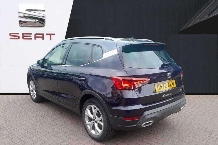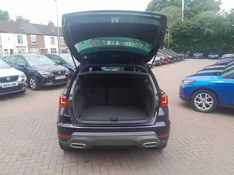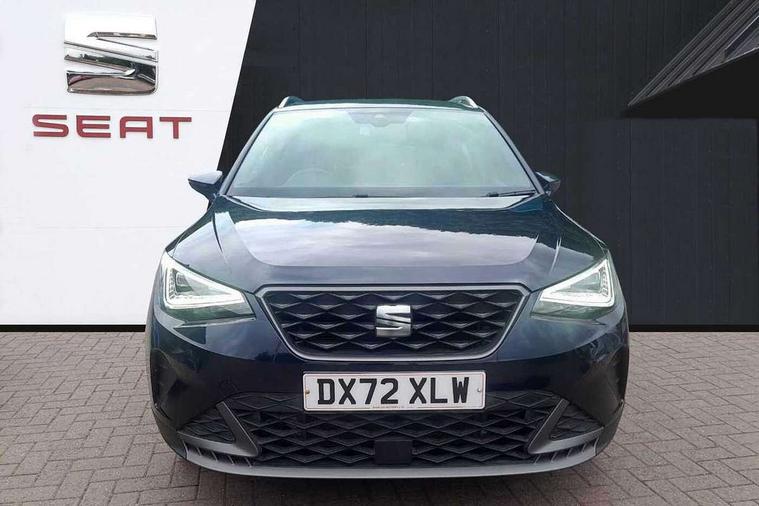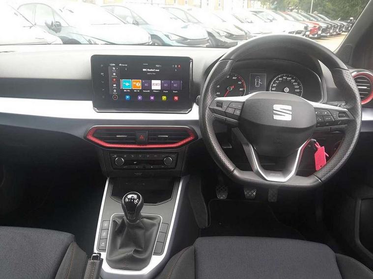 'Lights On' Reminder warning buzzer, 8" Digital cockpit, Digital clock, E-call, Electric speed sensitive power steering, Full Link Smartphone Integration with Mirror Link, Apple Car Play, Google Android Auto with USB Type C cable for Apple and Android compatibility, Lane keeping system, Low fuel warning light, Outside temperature display, Rear parking sensor, RPM counter, Seat connect with safety, service, remote and online, SEAT Drive profile - Four different models normal-sport-eco-individual, steering response, throttle response, Trip computer, Wireless phone charger, 9.2" colour touchscreen with navigation system, voice control and USB port (type c), Bluetooth interface for hands free and audio streaming, DAB digital radio and AM/FM radio, Steering wheel mounted audio controls, Anti theft roof antenna, Auto dimming interior rear view mirror, Automatic activation of hazard warning lights, Body coloured bumpers, Body coloured door handle inserts, Chrome roof rails and window surrounds, Dark tinted rear windows, Electric front/rear windows, Electrically adjustable, heated and folding door mirrors, Front fog lights with cornering function and rear fog light, FULL LED automatic headlights with dynamic headlight range control, coming and leaving home, LED daytime running lights, LED rear tail lights and licence plate lights, Protective side mouldings, Rain sensing wipers, Rear side wing doors, Rear spoiler, Rear window wash/wipe, Roof colour door mirrors, Third brake light, Twin exhaust pipe styling hidden exhaust pipe, Visible VIN plate, Windshield wiper with intermittent control and potentiometer, 2 cupholders, 3 seat bench in 2nd row, 60/40 split folding rear seat, Aircare filter, Black interior roof, Cloth upholstery, Double boot floor, Driver sunvisor with covered mirror + card holder, Dual zone climate control, Front courtesy light with front and rear reading lights, Front sport seats, Gear shift indicator, Height adjustable front seats, Height/reach adjustable steering column, Illuminated boot, Instrument lighting with brightness control, Interior ambient lighting, Interior light in footwell, central console and door panel, ISOFIX points in outer rear seats with top tether anchorage points, Passenger sunvisor with vanity mirror, Perforated flat bottomed leather steering wheel/gear knob/handbrake with red stitching and FR logo, Single front passenger seat, Two front and three rear height adjustable headrests, Interior chrome pack - Arona, 3 point seatbelts on all rear seats, ABS, Active front headrests, Child locks on rear doors, Driver and front passenger airbags with front passenger airbag de activation, front side and curtain airbags, Electronic stability control, Emergency Brake Assist (EBA) and front assist, Front and rear seatbelt reminder, Hill hold control, Multi-Collision braking, Tiredness recognition system, Traction control, Tyre pressure monitoring system, Alarm with back-up horn, Electronic engine immobiliser, Locking wheel bolts, Remote central locking + deadlocks, Tow away protection, Titan black dashboard, 17" Dynamic alloy wheels,