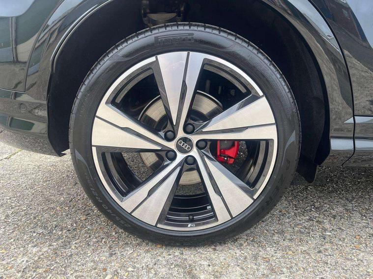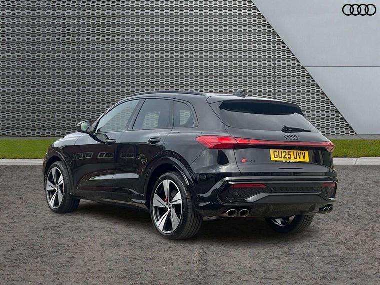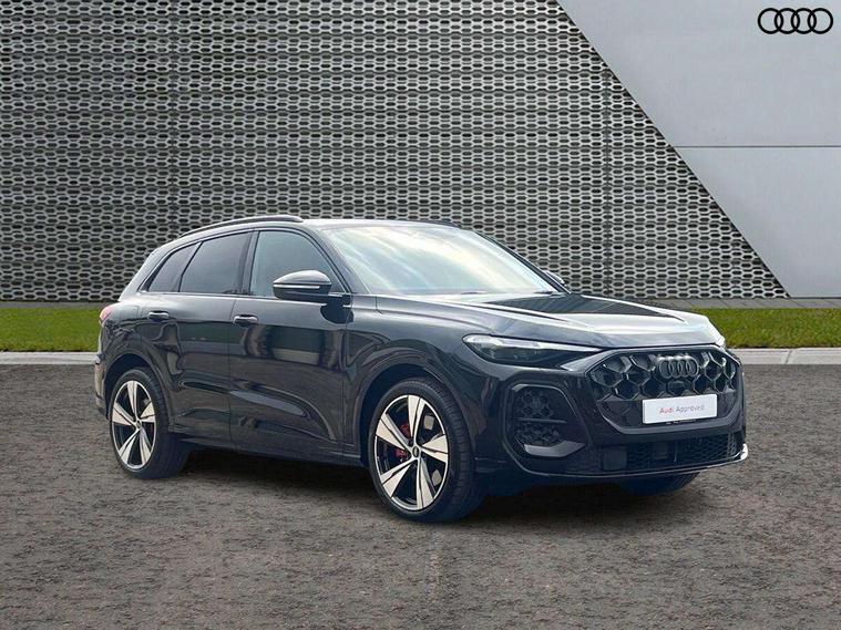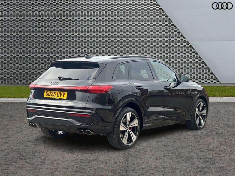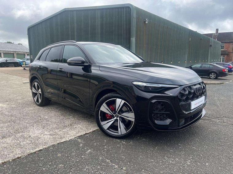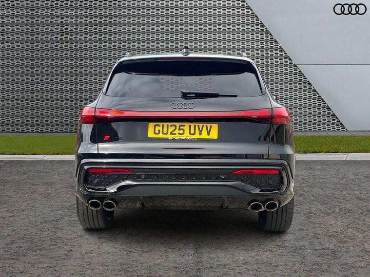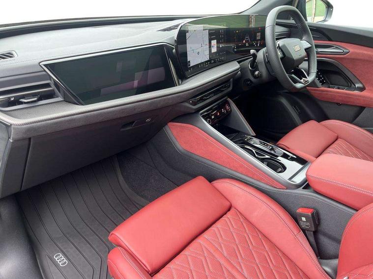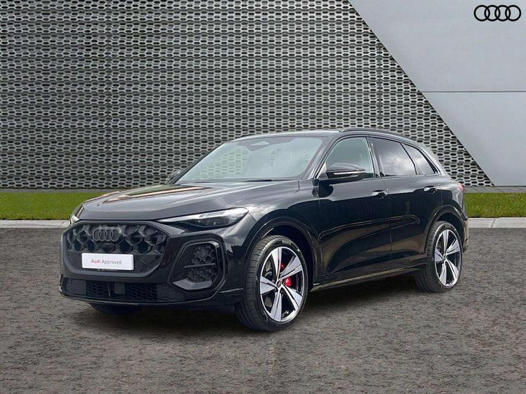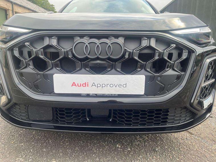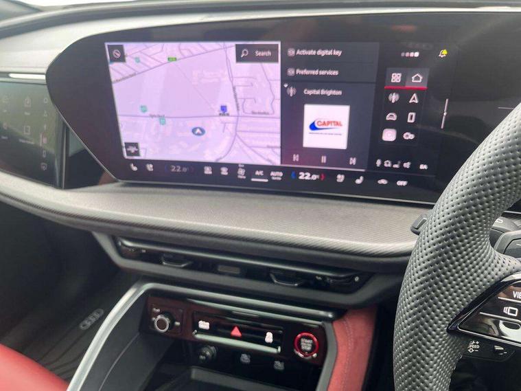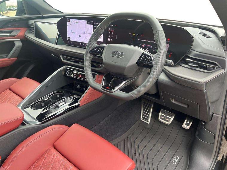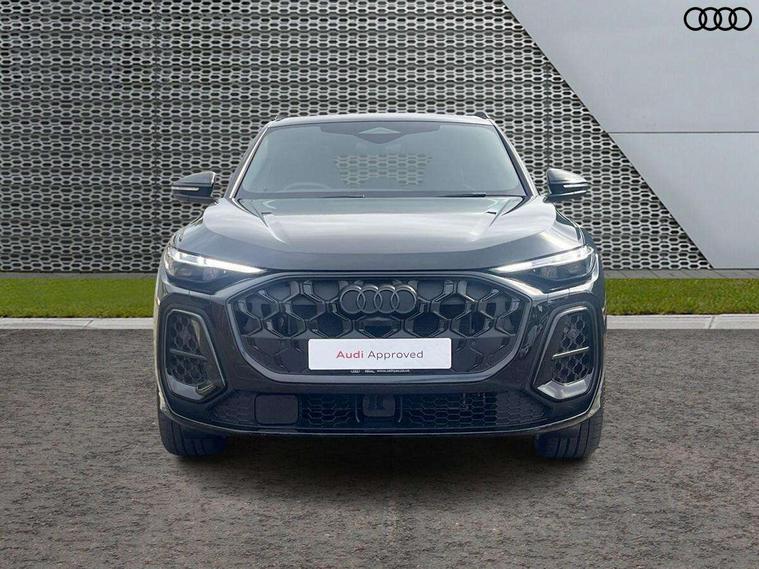 Adaptive cruise assist plus with steering intervention, Advanced driver attention alert, Audi application store, Audi connect emergency call and service, Audi digital key, Audi drive select, Audi smartphone interface, Audi virtual cockpit plus with 11.9" OLED colour display, Camera based traffic sign recognition, Fatigue monitor, Front cross traffic intersection assist, Garage door opener, Lane change assistant with exit warning system, rear cross traffic alert and rear turn assist, Lane departure warning with emergency assist, MMI 10.9" front passenger touch display, MMI navigation plus with high resolution 14.5" OLED touchscreen colour display, Park assist plus, Parking system plus with 360 display, PAS, Reversing camera, Swerve assist and turn assist, Top view camera, Traffic sign based speed limiter, S adaptive air suspension, 2 USB-C ports in both the front and rear, DAB Digital radio, Smartphone compartment with wireless charging, Acoustic glass for front door windows, Active digital light signatures - Six additional combinations of active daytime running light signature, Auto dimming rear view mirror, Black door mirrors, Black roof rails, Coming/leaving home lighting function, Contrast bumpers in mythos black metallic paint finish, Digital OLED tail lights including communication light, Electrically adjustable heated and folding + automatically dimming exterior mirrors, Entry LED with red and white rhombus S logo projection, Exhaust tailpipes in dark chrome, Front and rear electric windows, Front door sill trims with aluminium inlays, illuminated with 'S' logo, Headlight cleaning system, Heated rear window, High beam assist, High gloss window surrounds, Inlay and front air inlets in matt anthracite chrome, Logo projection light in exterior mirrors, Matrix LED headlights, Memory function for door mirrors, Privacy glass, Projection light for rear window, Radiator grille in phantom black, Rear and side windows with heat insulating glass, Rear honeycombe grille in matt black with inlay in matt anthracite chrome, Rear side wing doors, Rear wash/wipe, Red S rhombus badging with 'S' lettering on rear, S exterior styling, Towbar preparation, Windscreen with acoustic glazing, 3 rear head restraints, 3 seat bench in 2nd row, 3 spoke leather steering wheel with multi-function buttons with touch control, flattened on top and bottom, with S badging and contrast stitching, 40:20:40 split folding rear seat bench with centre armrest and cup holders, Comfort centre armrest, Deluxe 3 zone electronic climate control, Electric steering wheel adjustment, Electrically adjustable front seats with memory function for driver's side, Front and rear floor mats, Front seat ventilation, Front sport seats with integrated head reastrains, Headlining in black cloth, Heated front seats, Heated outer rear seats, Heated steering wheel, i-Size child seat mounting on the front passenger side and outer rear seats, i-Size and top tether on the outer rear seats, Interior trim in aluminium look, Luggage compartment lid, electrically opening and closing, Perforated fine nappa leather with diamond stitching incl. ventilation and massage function for front seats, Pneumatically adjustable lumbar support with massage function for front seats, Single front passenger seat, Softwrap in Dinamica, Stainless steel pedals and footrest, Steering wheel grips in perforated leather and shift paddles, Ambient lighting package plus - Q5, Black styling package plus - Q5, Sound and Vision pack - Q5, Storage and luggage compartment pack - Q5, Vanadium pack - Q5, 3x3 point rear seatbelts, ABS, Acoustic vehicle alerting system, Convenience key with safelock, Driver and front passenger airbag with passenger airbag deactivation, Electric child safety locks, First aid kit with warning triangle and high visibility vests, Front emergency brake assist, Front side airbags with head airbag system and front interaction airbag, Hill hold assist, Occupant detection in rear seat area, Proactive passenger protection system for front, sides and rear, Red brake calipers, Side airbags in front and rear with head airbag system and front interaction airbag, Tyre pressure loss indicator, Anti theft alarm, Anti-theft wheel bolts, Remote control key with SAFELOCK and keyless go, Black dashboard with contrast stitching, Carbon micro twill structure inlay, Steel grey seat stitching, Upper and lower interior elements in dinamica microfiber, 21" 5 arm slit black metallic, gloss turned finish Audi Sport alloy wheels, Tyre repair kit,