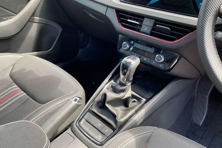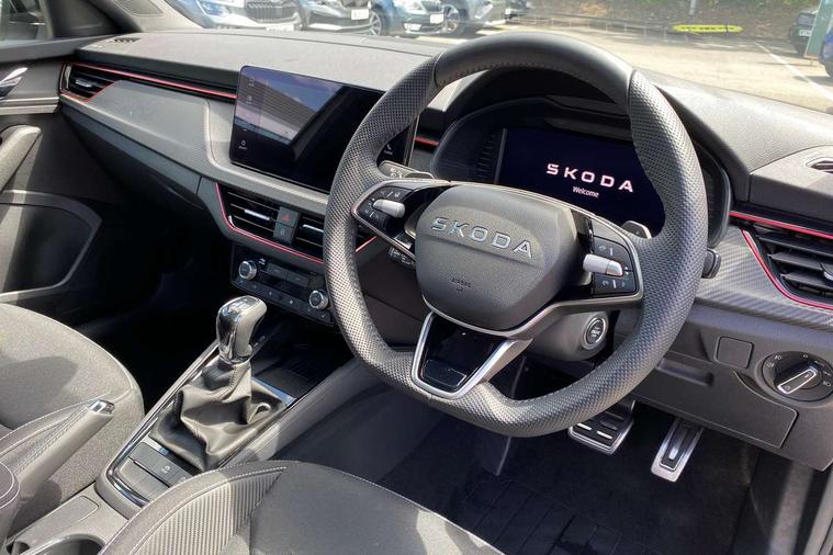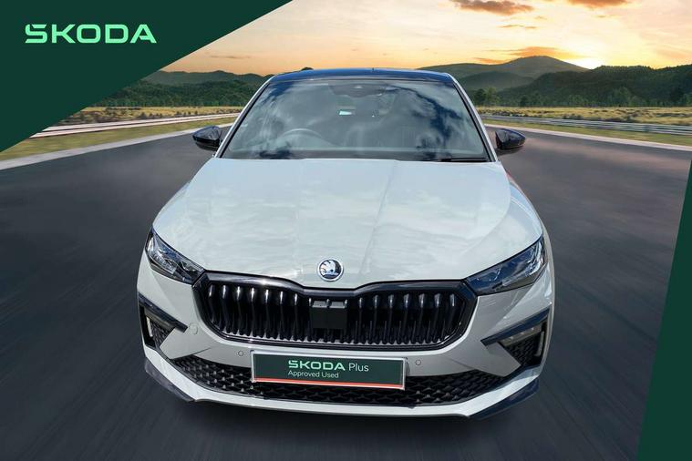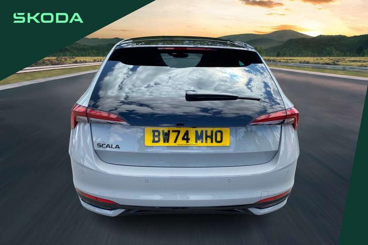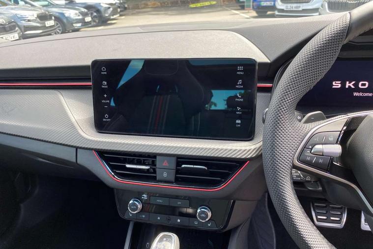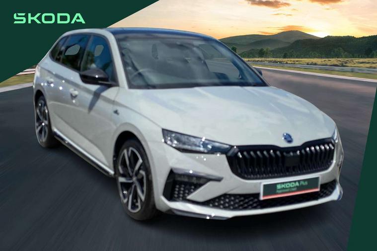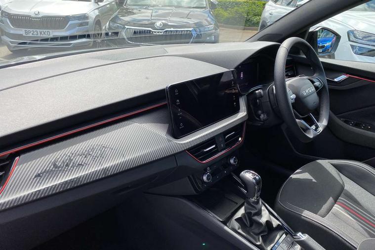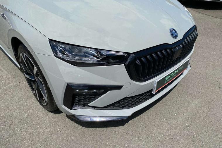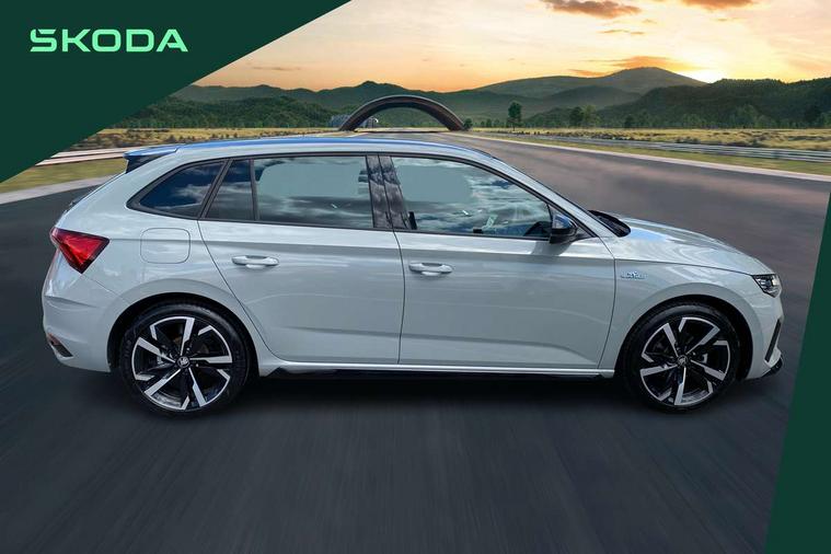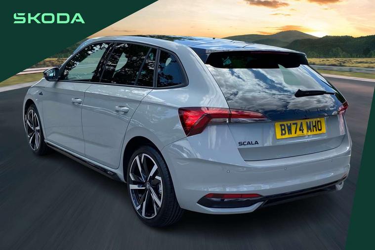 Advanced driver attention and drowsiness monitor, Bluetooth, e-Call (emergency call), Front assist system, PAS, Rear parking sensors, Rear view camera, Speed limiter, Tailgate, Traffic sign recognition, Virtual Cockpit - 10.25" digital display, Voice control system, Wireless smartlink, 4 USB C ports, 8 Speakers, 9.2" Skoda navigation display, DAB radio, Auto dimming rear view mirror, Automatic headlamp activation with Coming home and Leaving home feature, Automatic high/low beam, Automatic intermittent wipers, Black door mirrors, Black lettering on boot lid, Black radiator grille, Black rear diffuser, Black roof spoiler, Body colour bumpers, Body colour door handles, Chrome moulding around grille, Extended tailgate glass, Front and rear electric windows, Heated rear window, LED 3rd brake light, LED brake lights, LED daytime running lights, LED high beam, LED low beam, Light sensors, Monte carlo plaque, Panoramic glass roof, Privacy glass, Rear LED fog light, Rear side wing doors, Rear wiper, Tinted windows, Unique dark chrome design logo on alloy wheels, 12V socket in luggage compartment, 3 seat bench in 2nd row, Aluminium pedals, Ambient lighting in white/red, Black / White armrest stitching, Black ceiling, Black roof headlining, Cargo elements, Chrome inner door handles, Door inserts in art.leather carbon, Driver and passenger sun visors with vanity mirror, Dual zone climate control, Front and rear roof lights, Front centre armrest, Front head restraints, Height adjustable driver seat, Height adjustable passenger seat, Ice scraper, Illuminated glove compartment, Inner circulation control with pollen filter, ISOFIX for front passenger seat, Isofix preparation for back seats, Leather gearknob and handbrake lever, Luggage net under rear parcel shelf, Manual lumbar support for front seats, Monte Carlo cloth upholstery, Net package and top tether hooks in boot space, Pocket on the back of both front seats, incl. mobile phone pockets, Rear centre armrest, Red hotstamping, Single front passenger seat, Skoda lettering on steering wheel, Sport seats, Textile floor mats, Third rear headrest, Ticket holder, Top tether for front passenger seat, Umbrella in driver's door, Light and view plus pack - Scala, 3x3 point rear seatbelts, ABS, Child locks, Curtain airbags and front side airbags, Disc brakes, Driver and front passenger airbags, ESP, Hill hold control, Manual leather parking brake, One tone horn, Passenger airbag switch off function, Seatbelt reminder for driver and front passenger, Tyre pressure monitoring system, Anti theft alarm system with interior monitoring, backup horn and towing protection, Anti-theft wheel bolts, Remote central locking with 2 remote folding keys, SAFE function for remote central locking, Carbon effect decorative inserts, 18" Ursa black diamond cut alloy wheels,