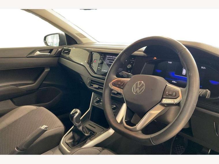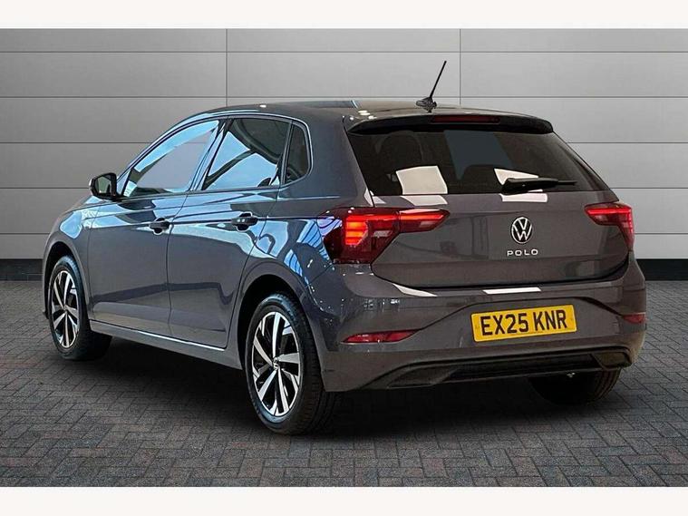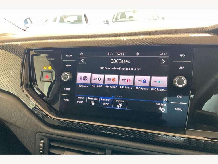 Adaptive cruise control without follow-to-stop and speed limiter, Advanced driver attention and drowsiness monitor, Bluetooth mobile phone interface, Dynamic road sign display, Emergency call service, Multifunction front facing camera for distance control, Park distance control, Power assisted speed sensitive steering, Preparation for navigation system with media and internet package, Preparation for We connect and We connect plus, Rear view camera, Speedo and rev counter, electronic odometer, trip, service interval display and exterior temperature gauge, Standard rear axle, Travel Assist - Lane keeping system and traffic jam assist, Travel assist including emergency assist, Trip computer, Warning signal and warning light for front and rear seatbelts not fastened, Washer fluid level indicator, Wireless app connect, Front wheel drive, Rear shock absorpion, Start-stop system with battery regeneration (recuperation - energy recovery during braking), DAB Digital radio, Diversity antenna for FM reception, Front and rear 6 speakers, Automatic dimming interior rear view mirror, Automatic headlight control with LED separate daytime running lights with coming/leaving home function, Body colour bumpers with chrome inserts, Body colour door handles, Body colour door mirrors, Electric front windows, Engine badge deletion, Headlight range adjustment, Heat insulating and laminated safety glass windshield, LED Headlights, LED rear combination lamps, Power folding adjustable/heated exterior mirrors and front passenger exterior mirror lowering function, Rain sensor, Rear electric windows, Rear fog light, Rear side wing doors, Rear tinted glass from B-pillar backwards approx 65% tinted, Rear windscreen washer and wiper with interval delay, Third brake light, 12V power socket in centre console, 2 front and 2 rear reading lights with switch off delay and dimmer, 2 USB-C ports in the front, 2 USB-C charging sockets on the center console in the rear, 3 rear head restraints, 60/40 split folding rear seat and rear seat bench not split, Ceramique roof lining, Chrome plated radiator grille inserts, air vent surrounds and light switch surrounds, Door and side trim panel, Driver and front passenger seat height adjustment, Driver/passenger sunvisors with illuminated vanity mirrors, Front centre armrest, Front seat backrest storage pockets, Front standard seats, Handbrake lever handle in leather, Hartley/Thomas cloth upholstery, Headliner in recycled material, Isofix child seat preparation easy-fit (for two outer rear seats, and front passenger seat) compatible with I-size, Leather trimmed gear knob, Luggage compartment cover, Luggage compartment lighting, Removable luggage compartment floor, Single front passenger seat, Standard climatic zones, Standard pedal cluster, Three spoke leather wrapped multifunction steering wheel, Light and vision pack - Polo, 3 point height adj front seatbelts + pretensioners, 3 point seat belt for centre rear seat, 3 point seatbelts, outer rear with ECE lable, ABS, Driver and front passenger airbag with front passenger airbag deactivation, Drivers and front passengers safety optimised head restraints, ESC (Electronic stability control) + EDL (Electronic Differntial lock) and ASR (Traction control), Extended and predictive pedestrian/ cyclist protection, Front assist with autonomous emergency braking (for Adaptive Cruise Control ACC up to 130 mph), Front curtain and side airbags with center airbag, Front disc brakes, Hill hold control, Manual child lock in rear doors, Rear drum brakes, Single tone horn, Tyre pressure loss indicator, Alarm with interior protection, Anti-theft alarm system with interior monitoring, backup horn, and towing protection, Anti-theft wheel bolts, Electronic engine immobiliser, Lava stone black gloss/matt decorative inserts in dash and front door panels, 16" Torsby alloy wheels, Low rolling resistance tyres,