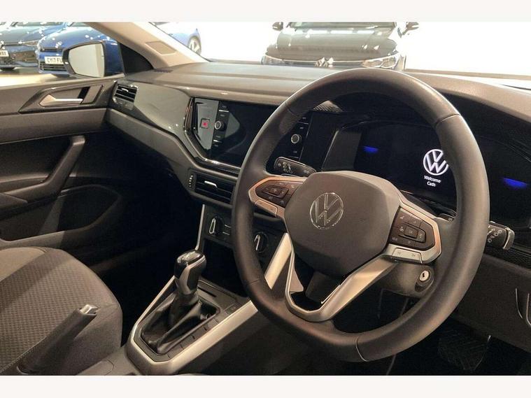 Advanced driver attention and drowsiness monitor, Bluetooth mobile phone interface, Dynamic road sign display, Emergency call service, Multifunction front facing camera for distance control, Park distance control, Power assisted speed sensitive steering, Predictive adaptive cruise control without follow-to-stop and speed limiter, Preparation for navigation system with media and internet package, Preparation for We connect and We connect plus, Rear view camera, Speedo and rev counter, electronic odometer, trip, service interval display and exterior temperature gauge, Standard rear axle, Travel Assist - Lane keeping system and traffic jam assist, Travel assist including emergency assist, Trip computer, Warning signal and warning light for front and rear seatbelts not fastened, Washer fluid level indicator, Wireless app connect, Front wheel drive, Rear shock absorpion, Start-stop system with battery regeneration (recuperation - energy recovery during braking), DAB Digital radio, Diversity antenna for FM reception, Front and rear 6 speakers, Automatic dimming interior rear view mirror, Automatic headlight control with LED separate daytime running lights with coming/leaving home function, Body colour bumpers with chrome inserts, Body colour door handles, Body colour door mirrors, Electric front windows, Engine badge deletion, Headlight range adjustment, Heat insulating and laminated safety glass windshield, LED Headlights, LED rear combination lamps, Power folding adjustable/heated exterior mirrors and front passenger exterior mirror lowering function, Rain sensor, Rear electric windows, Rear fog light, Rear side wing doors, Rear tinted glass from B-pillar backwards approx 65% tinted, Rear windscreen washer and wiper with interval delay, Third brake light, 12V power socket in centre console, 2 front and 2 rear reading lights with switch off delay and dimmer, 2 USB-C ports in the front, 2 USB-C charging sockets on the center console in the rear, 3 rear head restraints, 60/40 split folding rear seat and rear seat bench not split, Ceramique roof lining, Chrome plated radiator grille inserts, air vent surrounds and light switch surrounds, Door and side trim panel, Driver and front passenger seat height adjustment, Driver/passenger sunvisors with illuminated vanity mirrors, Front centre armrest, Front seat backrest storage pockets, Front standard seats, Handbrake lever handle in leather, Hartley/Thomas cloth upholstery, Headliner in recycled material, Isofix child seat preparation easy-fit (for two outer rear seats, and front passenger seat) compatible with I-size, Leather trimmed gear knob, Luggage compartment cover, Luggage compartment lighting, Removable luggage compartment floor, Single front passenger seat, Standard climatic zones, Standard pedal cluster, Three spoke leather wrapped multifunction steering wheel with shifting paddles, Light and vision pack - Polo, 3 point height adj front seatbelts + pretensioners, 3 point seat belt for centre rear seat, 3 point seatbelts, outer rear with ECE lable, ABS, Driver and front passenger airbag with front passenger airbag deactivation, Drivers and front passengers safety optimised head restraints, ESC (Electronic stability control) + EDL (Electronic Differntial lock) and ASR (Traction control), Extended and predictive pedestrian/ cyclist protection, Front assist with autonomous emergency braking (for Adaptive Cruise Control ACC up to 130 mph), Front curtain and side airbags with center airbag, Front disc brakes, Hill hold control, Manual child lock in rear doors, Rear drum brakes, Single tone horn, Tyre pressure loss indicator, Alarm with interior protection, Anti-theft alarm system with interior monitoring, backup horn, and towing protection, Anti-theft wheel bolts, Electronic engine immobiliser, Lava stone black gloss/matt decorative inserts in dash and front door panels, 16" Torsby alloy wheels, Low rolling resistance tyres,