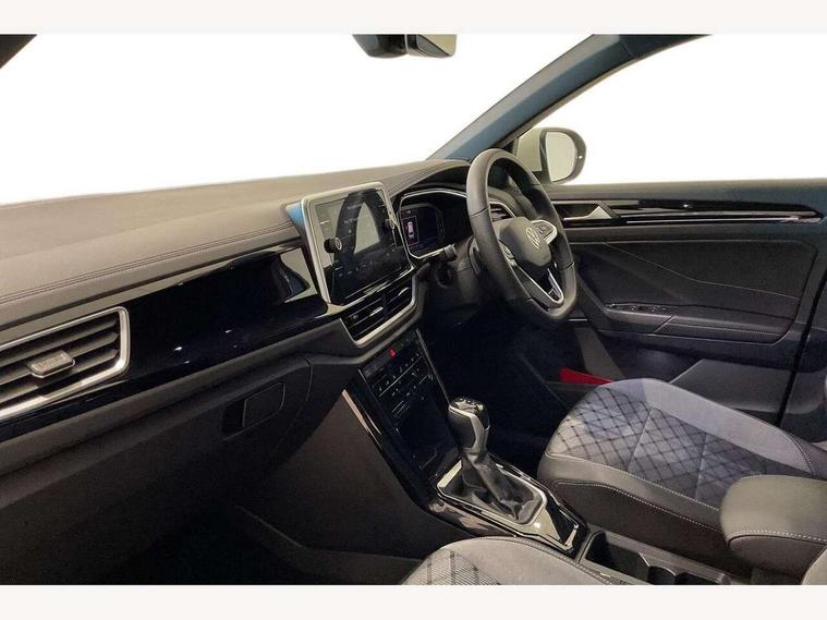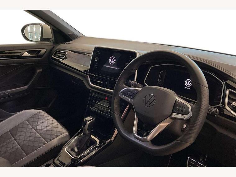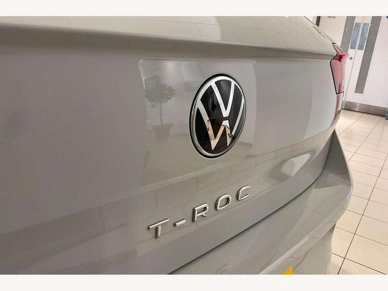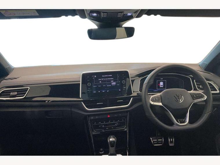 10.25" Digital cockpit pro, Advanced driver attention and drowsiness monitor, Emergency call service, Lane keeping system Lane Assist, Mobile phone interface, Modified key software - reduce switch off time for key status change to Long no motion, Online services, Park assist including front and rear parking sensors, Service interval indicator, Tailgate/trunk lid release from outside, Think blue trainer driver tips and journey analysis, Warning sound and light for front seatbelts unfastened, Wireless app connect, Battery regeneration during braking, Start/stop function with battery regeneration, DAB Digital radio, Diversity antenna for FM reception, Front and rear 6 speakers, Music playback - MP3, WMA and AAC files, Premium USB cable in choice of either Apple or Android smartphone compatibility, SD card slot, Simultaneous pairing of 2 compatible mobile devices, Title and cover art display, We Connect and We Connect Plus functionality, Auto dimming interior rear view mirror, Automatic hazard lights activation under emergency braking, Automatic headlight control with LED separate daytime running lights with coming/leaving home function, Body coloured exterior mirror housings and door handles, Electrically adjustable and heated door mirrors, Extended roof spoiler, Exterior mirrors aspherical on driver side, convex on front passenger side, External USB type C socket and charging sockets, Front windscreen wiper with intermittent wipe and 4 position delay, Heated rear window, LED 3rd brake light, LED rear combination lamps, LED rear number plate lights, Power windows with comfort operation and circuit breaker, Privacy glass for rear side windows and rear window, R-Line design body coloured bumpers, Rain sensor, Rear exhaust tailpipe, Rear fog light on one side and reversing lights on both sides, Rear side wing doors, Rear wash/wipe with intermittent wipe setting, Remote electrically foldable door mirrors, puddle lights and reverse activated passenger's door mirror, 12V power socket in centre console, 3 rear head restraints, 3 seat bench in 2nd row, 4 load lashing points in luggage compartment, Air care climatronic air conditoning system with active combination filter and 2-zone temperature control, Black roof lining, Chrome plated decorative trims, Chrome plated radiator grille inserts, air vent surrounds and light switch surrounds, Door and side trim panel with leatherette insert, Front + rear carpet mats, Front centre armrest, Front cupholders x 2, Front footwell illumination, Front reading light, Front scuff plates with R Line logo, Front seat back storage pockets, Glove compartment door with light, Instrument lighting, white adjustable panel illumination, Interior ambient lighting and surround lighting, Interior light delay, Isofix child seat preparation, Leather gearshift handle, Load-through provision with cup holder when folded down ('Unsplit rear seat bench, split folding backrest, with centre armrest), Luggage compartment lighting, Single front passenger seat, Stainless steel pedals, Storage compartment in left and right luggage area, Storage compartment in rear doors, Storage compartments in driver and front passenger doors, Sunvisors with illuminated vanity mirrors, Variable boot floor, height adjustable and removable, Driver assistance pack without proactive passenger protection - T-Roc, 3 point height adj front seatbelts + pretensioners, 3 point seatbelts in outer rear with ECE label, ABS, Child locks on rear doors, City emergency braking and pedestrian monitoring, Driver and front passenger airbag with front passenger airbag deactivation, Driver and front passenger safety-optimised head restraints, Drivers seatbelt reminder, Electronic parking brake, Electronic Stability Control (ESC) inc EDL (Electronic Differential Lock) and ASR (Traction Control), Front and rear passengers curtain airbag system including front side airbags, Hill start assist, Predictive pedestrian protection, Rear disc brakes, Two tone horn, Tyre pressure loss indicator, Volkswagen roadside assistance, Piano black decorative inserts in dashboard and front door trim panels, Trims for alloy wheels,