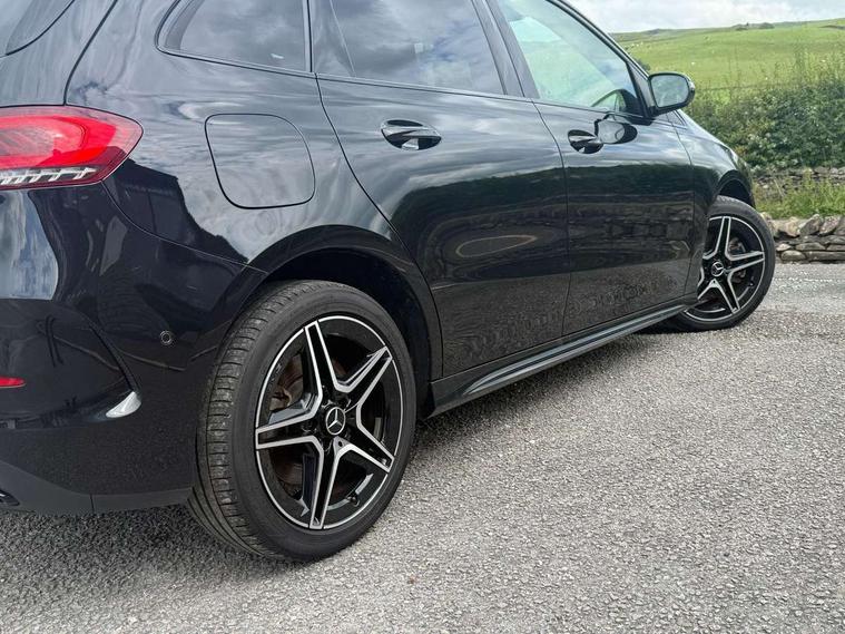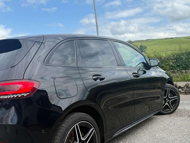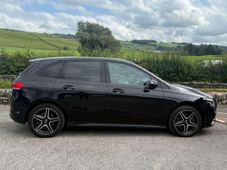 10.25" media display, 180 degree reversing camera with parking guidelines, 7 inch instrument digital display, Acoustic ambient protection, Active lane keeping assist, Attention assist - Monitors steering behaviour and long journey fatigue, Brake pad wear indicator warning light, Cruise control + speed limiter, Direct steer system, Dual bluetooth interfaces, DYNAMIC SELECT with a choice of driving modes (ECO, Comfort, Sport and Individual), ECO start/stop function, Fluid level warning indicator for fuel, oil, coolant and washer fluid, GPS aerial, Hard disk navigation, Hey Mercedes Voice activation, Lamp failure indicator, Live traffic information, MBUX multimedia system with Hey Mercedes, DAB Digital Radio and touchpad, Mercedes me connect including emergency call system, accident recovery, breakdown management and maintenance, Outside temperature gauge, Owners manual and service booklet in English, Pre-installation for car sharing, Preinstallation for Mercedes Benz link, Remote and charging services plus, Service indicator (ASSYST), Smartphone integration with Apple CarPlay and Android auto, Speed limit assist, Speed sensitive power steering, Trip computer in multifunction display with current consumption indicator, Comfort suspension, 2 USB ports (type C) in rear stowage compartment and one in front of center console, Mercedes Benz sound system (100 W) with 6 speakers, 4 Electric Front and Rear windows, Adaptive brake lights, AMG body styling - AMG front apron with black front splitter, AMG side sill panels and AMG rear apron and visible exhaust tailpipe, Body coloured bumpers, Body coloured door handles, Body coloured side skirts, Car wash function, Chrome weather strip, Edition badging on the front wings, Electric adjustable and heated door mirrors with integrated LED side indicators, Exclusive diamond radiator grille, Exhaust system with 2 Visible tailpipe trim elements and rear apron with trim in chrome, Headlamp assist automatic headlamp activation, Heated glass rear windscreen + timer control, High level LED third brake light, Interior mirror with black reading lamps and frameless, LED high performance headlamps with integrated LED daytime running lights, LED tail lamp, Privacy glass, Rain sensing windscreen wipers with two sensitivity settings, Rear fog lamp, Rear windscreen wiper, 3 spoke multifunction sports steering wheel in nappa leather with flattened bottom and perforated grip area, 40:20:40 split folding rear seats with backrest, Air conditioning - air vents with silver chrome surround, Air conditioning - Two zone thermotronic luxury automatic climate control with display, Artico man-made leather/Dinamica upholstery with light grey contrast stitching, Automatic child seat recognition sensor, Black roof lining, Brushed stainless steel sports pedals with rubber studs, Charging socket, Charging system - AC charging system rated at 7.4 kW, Floor mats with black top stitching embroidered edition logo and piping in light grey, Folding rear seat backrest, Freight packaging without tie-down hooks, Front and rear head restraints, Front centre armrest with stowage, Front door sills with Mercedes benz lettering, Galvanished gear shift paddles on steering wheel, Heated front seats, Illuminated glove compartment stowage, Interior lighting - 64 colour Ambient lighting, Luggage net on driver/front passenger seat backrest, Manually adjustable front seats, Manually height and reach adjustable steering column, Mode 2 charging cable with 3pin and 5m upto 2.3kW, Mode 3 charging cable for wallbox and public charging stations with 4m upto 11kW, Pre-entry climate control, Rear armrest with 2nd row seat adjustment, Seat occupancy sensor for front passenger seat, Sports seats with adjustable head restraints, Stowage compartment in centre console with retractable cover, Sunvisors with illuminated vanity mirrors, Touchpad on center console, Twin front cupholders, Two outer rear seat isofix and top tether child seat fixing points, Interior lighting with light and sight pack - B Class, Mirror package - B Class, Night package - B Class, Parking pack - B Class, Seat comfort pack - B Class, 3 rear three point seatbelts, Active bonnet pedestrian safety measure which detects an impact and raises bonnet, Active brake assist includes forward collision warning system with autonomous braking, Adaptive brake assist with hold function and hill start assist, Airbags - kneebag for driver, Anti-lock braking system (ABS) with brake assist, Black seat belts, Childproof locks manually operated for rear doors and electrically operated for rear power windows, Crash responsive emergency lighting, Curve dynamic assist, Driver and front passenger head and sidebags, Driver and front passenger windowbags, Dual stage driver/passenger airbags, Electric parking brake, Electronic stability programme with acceleration skid control, Front and rear seatbelt reminder, Radar-based recuperation, Tyre pressure monitoring system, Warning triangle and first aid kit, Alarm system with immobiliser and interior protection -Thatcham category 1, Keyless Go starting function, Remote central locking and crash sensor with emergency opening function, Urban guard vehicle protection - Anti theft alarm system, tow away protection with visual and acoustic warning and alarm siren, Matrix look light longitudinal-grain aluminium trim elements, 18" AMG 5 spoke light alloy wheels aerodynamically optimised painted in black with high sheen finish, Summer tyres, Tirefit tyre sealant kit,