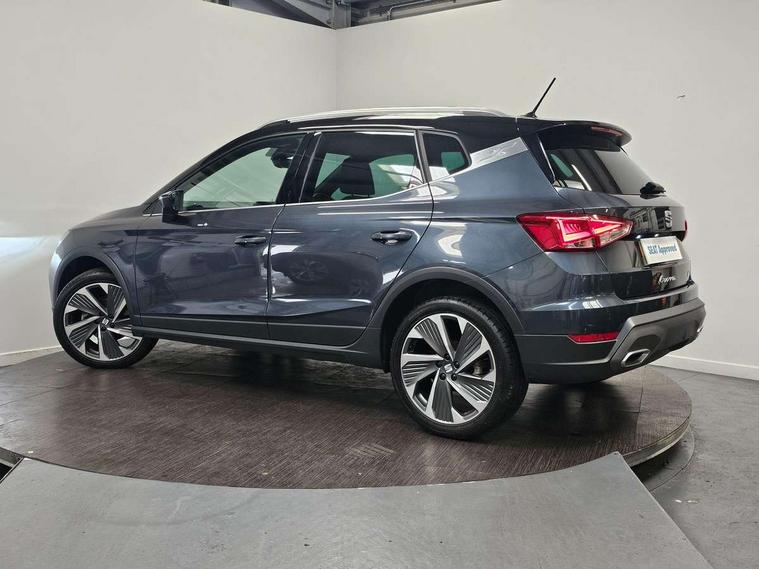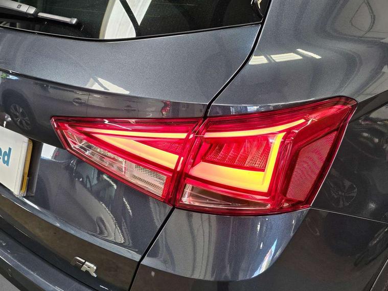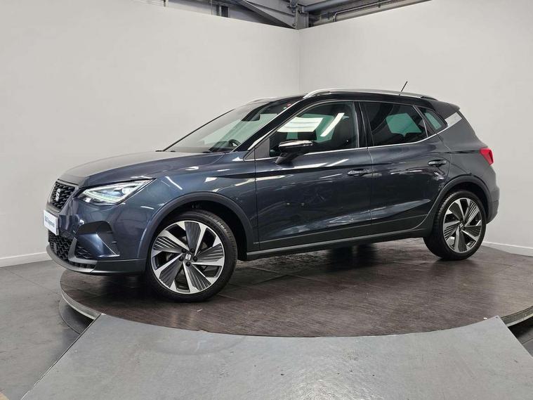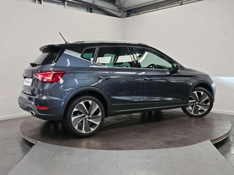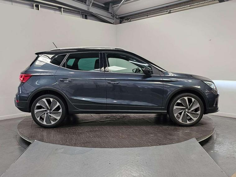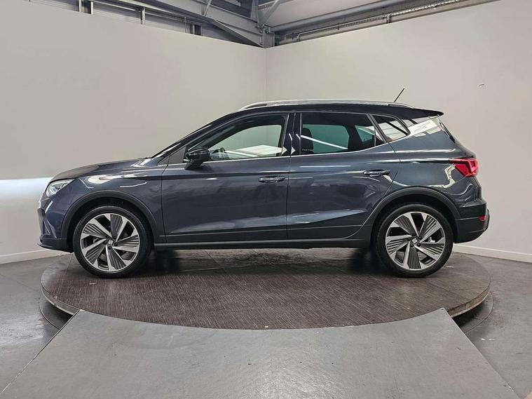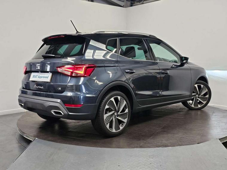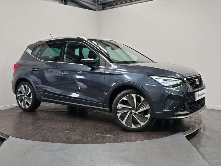 'Lights On' Reminder warning buzzer, 10" Digital cockpit, Digital clock, E-call, Electric speed sensitive power steering, Full Link Smartphone Integration with Mirror Link, Apple Car Play, Google Android Auto with USB Type C cable for Apple and Android compatibility, Low fuel warning light, Outside temperature display, Rear parking sensor, RPM counter, Seat connect with safety, service, remote and online, SEAT Drive profile - Four different models normal-sport-eco-individual, steering response, throttle response, Trip computer, Wireless phone charger, 9.2" colour touchscreen with navigation system, voice control and USB port (type c), Bluetooth interface for hands free and audio streaming, DAB digital radio and AM/FM radio, Steering wheel mounted audio controls, Anti theft roof antenna, Auto dimming interior rear view mirror, Automatic activation of hazard warning lights, Body coloured bumpers, Body coloured door handle inserts, Chrome roof rails and window surrounds, Dark tinted rear windows, Electric front/rear windows, Electrically adjustable, heated and folding door mirrors, Front fog lights with cornering function and rear fog light, FULL LED automatic headlights with dynamic headlight range control, coming and leaving home, LED daytime running lights, LED rear tail lights and licence plate lights, Protective side mouldings, Rain sensing wipers, Rear side wing doors, Rear spoiler, Rear window wash/wipe, Roof colour door mirrors, Third brake light, Twin exhaust pipe styling hidden exhaust pipe, Visible VIN plate, Windshield wiper with intermittent control and potentiometer, 2 cupholders, 3 seat bench in 2nd row, 60/40 split folding rear seat, Aircare filter, Black interior roof, Double boot floor, Driver sunvisor with covered mirror + card holder, Dual zone climate control, Front comfort seats, Front courtesy light with front reading lights, Front seat back storage pockets, Gear shift indicator, Heated front seats, Height adjustable front seats, Height/reach adjustable steering column, Illuminated boot, Instrument lighting with brightness control, Interior ambient lighting, Interior light in footwell, central console and door panel, ISOFIX points in outer rear seats with top tether anchorage points, Microsuede cloth upholstery, Passenger sunvisor with vanity mirror, Perforated flat bottomed leather steering wheel/gear knob/handbrake with red stitching and FR logo, Single front passenger seat, Two front and three rear height adjustable headrests, Interior chrome pack - Arona, 3 point seatbelts on all rear seats, ABS, Active front headrests, Child locks on rear doors, Driver and front passenger airbags with front passenger airbag de activation, front side and curtain airbags, Electronic stability control, Emergency Brake Assist (EBA) and front assist, Front and rear seatbelt reminder, Hill hold control, Multi-Collision braking, Tiredness recognition system, Traction control, Tyre pressure monitoring system, Alarm with back-up horn, Electronic engine immobiliser, Locking wheel bolts, Remote central locking + deadlocks, Tow away protection, Titan black dashboard, 18" Performance Cosmo grey matt alloy wheels,