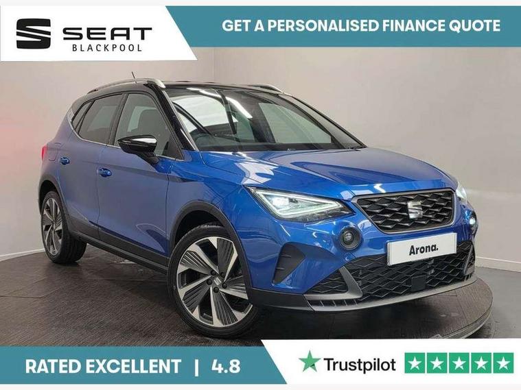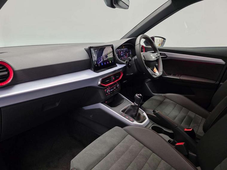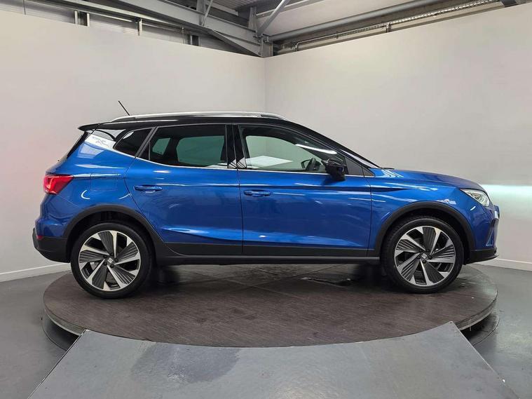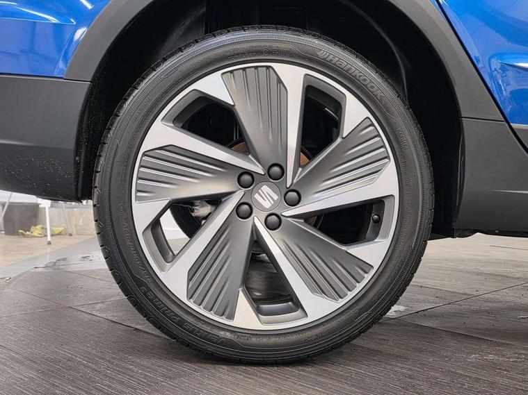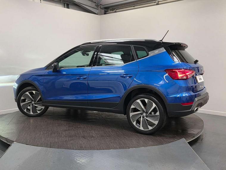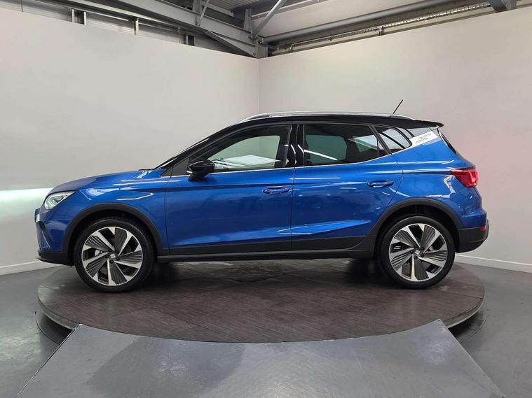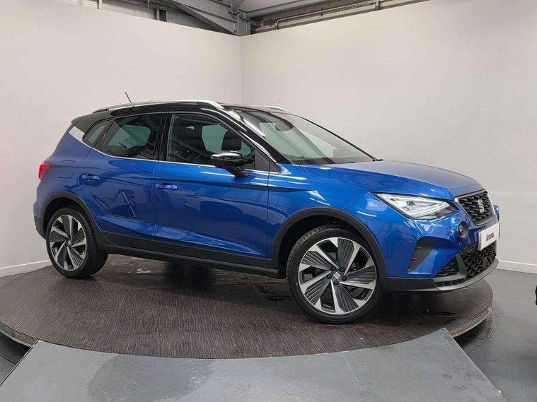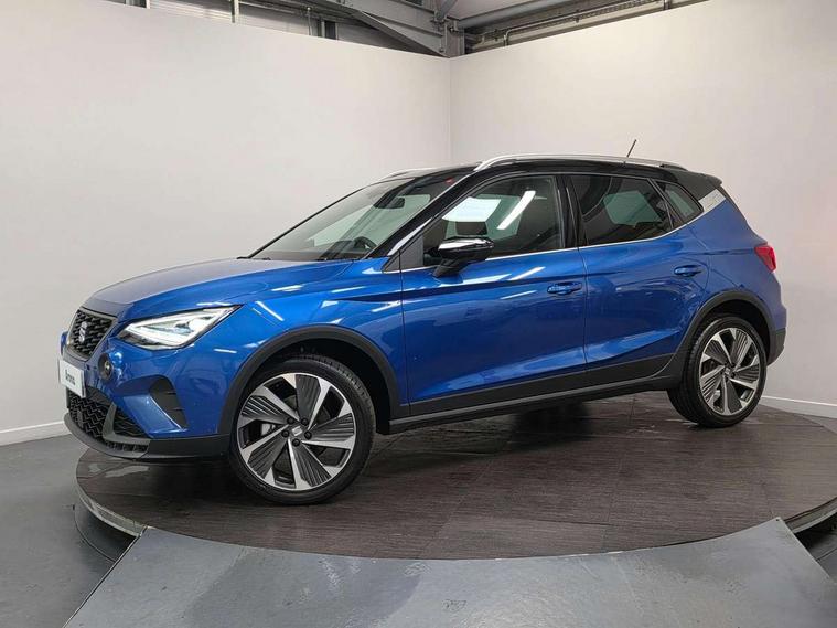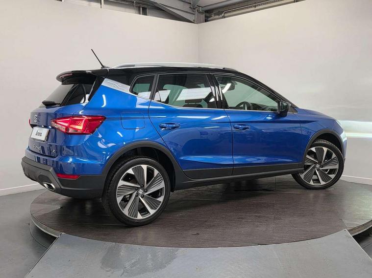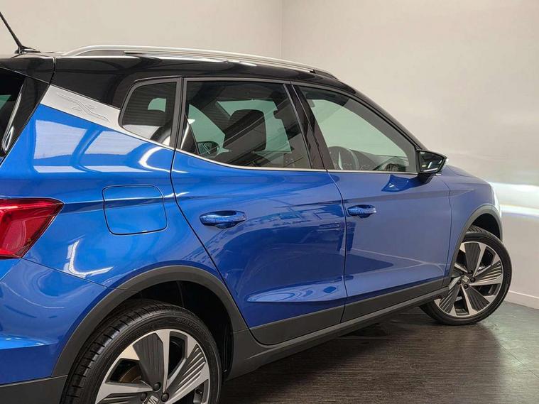 'Lights On' Reminder warning buzzer, 10" Digital cockpit, Digital clock, E-call, Electric speed sensitive power steering, Full link smartphone integration with mirror link, wireless apple carplay, Google android auto + USB Type C cable for apple and android devices, Lane keeping system, Low fuel warning light, Outside temperature display, RPM counter, SEAT Drive profile - Four different models normal-sport-eco-individual, steering response, throttle response, Trip computer, Wireless phone charger, 6 speakers, 9.2" colour touchscreen with navigation system, voice control and USB port (type c), Bluetooth interface for hands free and audio streaming, DAB digital radio and AM/FM radio, Steering wheel mounted audio controls, Anti theft roof antenna, Auto dimming interior rear view mirror, Automatic activation of hazard warning lights, Body coloured bumpers, Body coloured door handle inserts, Chrome roof rails and window surrounds, Dark tinted rear windows, Electric front/rear windows, Electrically adjustable, heated and folding door mirrors, Front fog lights with cornering function and rear fog light, FULL LED automatic headlights with dynamic headlight range control, coming and leaving home, LED daytime running lights, LED rear tail lights and licence plate lights, Protective side mouldings, Rain sensing wipers, Rear side wing doors, Rear spoiler, Rear window wash/wipe, Roof colour door mirrors, Third brake light, Twin exhaust pipe styling hidden exhaust pipe, Visible VIN plate, 2 cupholders, 3 seat bench in 2nd row, 60/40 split folding rear seat, Aircare filter, Black interior roof, Double boot floor, Driver sunvisor with covered mirror + card holder, Dual zone climate control, Front comfort seats, Front courtesy light with front reading lights, Front seat back storage pockets, Gear shift indicator, Heated front seats, Height adjustable front seats, Height/reach adjustable steering column, Illuminated air vent surrounds, Illuminated boot, Instrument lighting with brightness control, Interior ambient lighting, Interior light in footwell, central console and door panel, ISOFIX points in outer rear seats with top tether anchorage points, Microsuede cloth upholstery, Passenger sunvisor with vanity mirror, Perforated flat bottomed leather steering wheel/gear knob/handbrake with red stitching and FR logo, Potentiometer, Single front passenger seat, Two front and three rear height adjustable headrests, Interior chrome pack - Arona, Safe and driving pack (S) - Arona, 3 point seatbelts on all rear seats, ABS, Active front headrests, Child locks on rear doors, Driver and front passenger airbags with front passenger airbag de activation, front side and curtain airbags, Emergency Brake Assist (EBA) and front assist, Front and rear seatbelt reminder, Hill hold control, Multi-Collision braking, Tiredness recognition system, Traction control, Tyre pressure monitoring system, Alarm with back up horn with tow away protection, Deadlock, Electronic engine immobiliser, Locking wheel bolts, Remote central locking, Titan black dashboard, 18" Performance Cosmo grey matt alloy wheels,