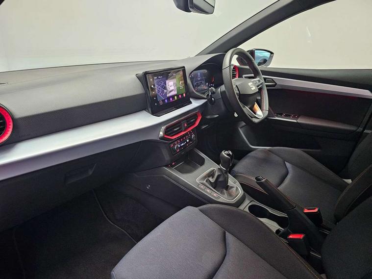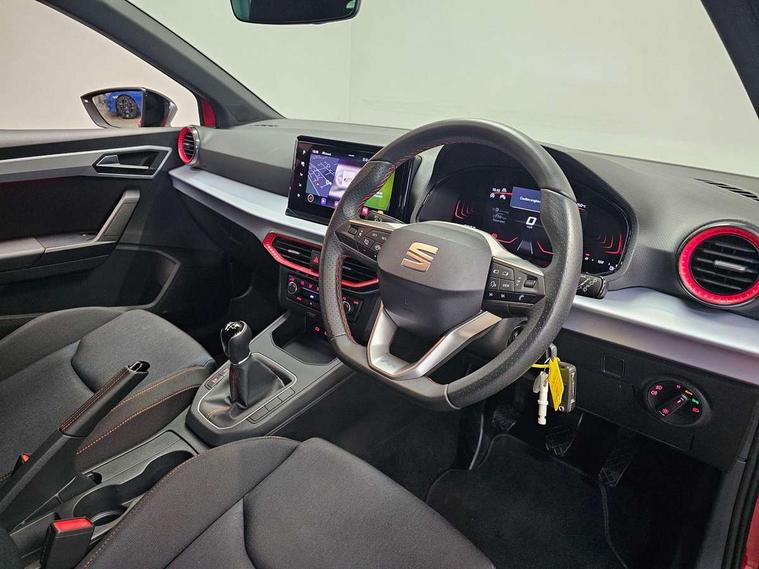 'Lights On' Reminder warning buzzer, 8" Digital cockpit, 9.2" touchscreen navigation system with type C USB socket, Voice control and DAB/AM/FM radio, Auto start and stop system, Bluetooth audio streaming with handsfree system, Digital clock, E-call, Full link smartphone integration with mirror link, wireless apple carplay, Google android auto + USB Type C cable for apple and android devices, Lane assist, Low fuel warning light, Outside temperature gauge, Power Steering, Seat connect with safety, service, remote and online, SEAT drive profiles and ECO function, SEAT logo boot release, Speed limiter, Trip computer, Sports suspension, Auxiliary input socket, Radio/MP3 player, SD card slot, Steering wheel mounted controls, Anti theft roof antenna, Auto dimming rear view mirror, Automatic rain sensing wipers, Black door mirrors, Body colour bumpers, Body colour door handles, Brilliant black window surrounds, Dark tinted rear windows, Electric adjustable/heated/folding door mirrors, Electric front windows, Electric headlight adjustment, Electric rear windows, Front/rear fog lights, FULL LED automatic headlights with dynamic headlight range control, coming and leaving home, LED daytime running lights, LED tail lights, Rear roof spoiler with FR twin exhausts, Rear side wing doors, Rear wiper, Third brake light, 3 seat bench in 2nd row, 60/40 split folding rear seat, Ambient interior lighting, Chrome detailing and black headlining, Cloth upholstery, Dual zone climate control with combination filter, Front courtesy lights, Front cupholders x 2, Front reading lights, Gear shift indicator, Glovebox, Height adjustable front and rear headrests (five), Height adjustable front seats, Height/reach adjust steering wheel, Illuminated air vent surrounds, Illuminated boot, Instrument lighting with brightness control, Isofix, Leather multifunction flat bottomed sports steering wheel, Passenger sunvisor, Single front passenger seat, Sports seats, Sunvisors with mirror and driver side card holder, 3 point seatbelts on all 3 rear seats, ABS, Active front headrests, Child locks on rear doors, Electronic stability control, Energy recovery system, Front assist forward collision warning and autonomous emergency braking, Front driver and passenger side airbags with curtain airbag and front passenger airbag deactivation, Hill hold control, Multi-Collision braking, Seat belt reminder for front and rear seats, Tiredness recognition system, Tyre pressure monitoring system, Electronic engine immobiliser, Locking wheel bolts, Perimeter alarm and interior monitoring with backup horn and tow away protection, Remote central locking + deadlocks, 17" Alloy wheels in Brilliant silver,