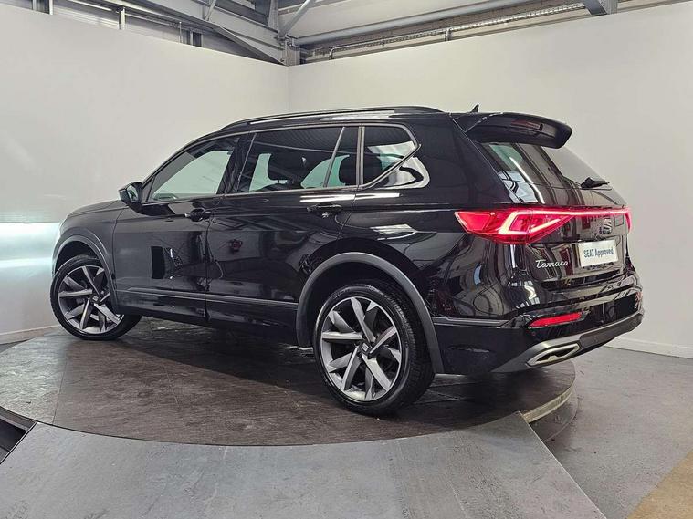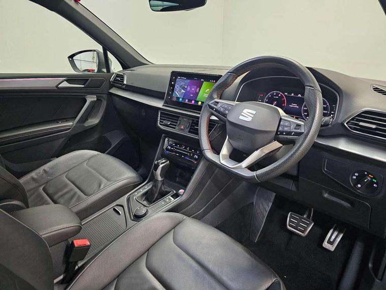 'Lights On' Reminder warning buzzer, 10.25" digital cockpit with multi function display, Adaptive cruise control with speed limiter, Bluetooth audio streaming with handsfree system, Digital clock, e-Call (emergency call), Front assist city emergency braking and pedestrian protection, Full Link Wireless Smartphone Integration with Mirror Link, Apple Car Play, Lane assist, Low fuel warning light, Outside temperature gauge, Power assist steering, RPM counter, Seat connect with safety, service, remote and online, SEAT Drive profile-4 different modes, progressive steering, 4Drive versions with off-road/snow, steering response, throttle response, gear shifts mode, Self parking functionality (includes front and rear parking sensors), Tailgate, Top view camera, Trip computer, Wash water level indicator, Comfort suspension, Sports rear shock absorption, XDS electronic differential lock, Navigation system with 9.2" colour touchscreen with proximity sensor, 3D Map display, DAB, AM/FM Radio, 3 USB (type C), Aux-in, 8 speakers, SD card, Steering wheel mounted audio/telephone controls, USB (type C) cable for Apple and Android compatibility, Auto dimming rear view mirror, Auto headlights with automatic coming and leaving home function, Automatic headlight adjustment, Black door mirrors, Black roof rails, Black window trims, Body coloured side skirts, Coast to coast lighting, Dark tinted rear windows, Dynamic rear indicators, Electric adjustable/heated/folding door mirrors with memory, Electric front/rear windows, Exterior black mouldings, Front grille frame in black, Front halogen fog lights with cornering function, Fuel door linked to central locking, Full LED headlights with LED rear lights, Illuminated aluminium front door sill with trim logo, LED daytime running lights, LED licence plate lighting, LED third brake light, Rain sensing wipers, Rear fog lights, Rear roof spoiler, Rear side wing doors, Rear wash/wipe, Sports bumpers, Twin exhaust pipes, Welcome lighting, 2 individual 3rd row seats, 3 seat bench in 2nd row, 3 zone climate control, Ambient spot lighting and front footwell illumination, Black interior roof, Centre armrest in front with air outlet in rear, Driver and passenger sunvisor with covered and illuminated mirror, Driver's electric lumbar adjustment, Easy fold rear seat system - second and third row, Electric driver's seat with memory, Forward and backward adjustable seats 2nd row, Four cargo rings in the boot, Front bucket seats, Front cupholders, Front integrated headrests, Front passenger seat lumbar adjustment, Front seat back storage pockets, Gear shift indicator, Heated front and outer rear seats, Height adjustable passenger seat, Illuminated boot, Illuminated glovebox, Instrument lighting with brightness control, ISOFIX points in outer 2nd row seats and front passenger seat with top tether anchorage points, Leather gear knob, Leather upholstery, Leather wrapped multifunction steering wheel, Luggage compartment floor with split function, Multicolour ambient lighting in front and rear door panels + LED lights in interior door handles, Rear armrest and easy back seat release mechanism from boot, Rear head restraints, Red stitching on front armrest, Single front passenger seat, Sliding boot cover, Sports front seats, Sports steering wheel, Three 12V sockets, 3x3 point rear seatbelts, ABS, Driver/front passenger airbag, Drivers knee airbag, Electronic parking brake with auto hold, Electronic stability control, Front passenger airbag deactivation, Front side airbags, Hill hold control, Manual rear child locks, Seatbelt reminders for all seats, Tiredness recognition system, Traction control, Two curtain airbags, Tyre pressure monitoring system, Alarm, Keyless enter and go with electric tailgate with virtual pedal, Locking wheel bolts, Power locking and remote control with two foldable keys and opening boot selector, Chrome interior detailing - door and dashboard decorative inserts, 20" 'Cosmo' Grey machined alloys wheels, Tool kit,