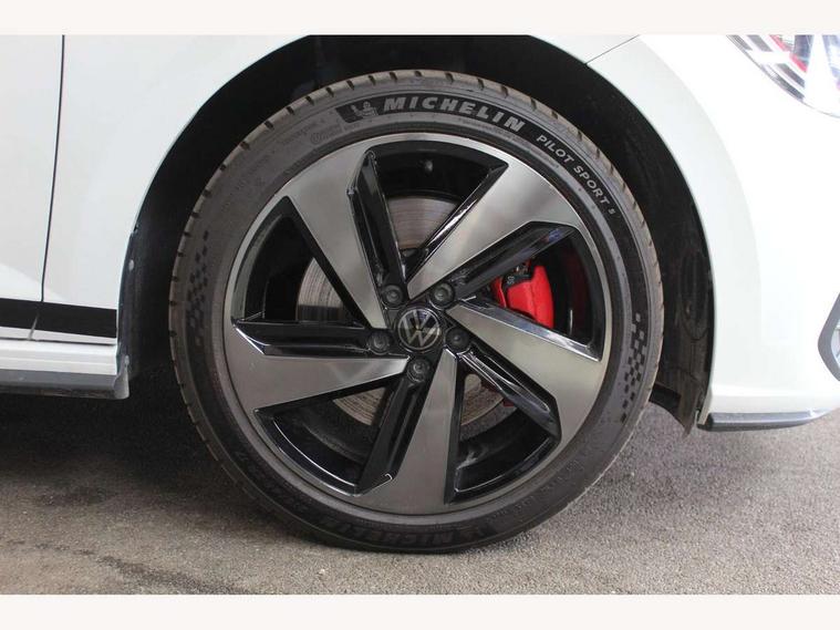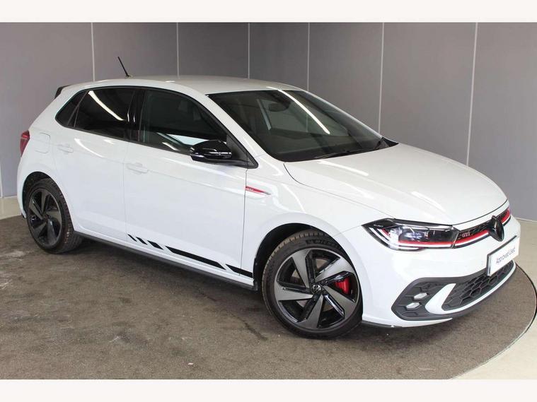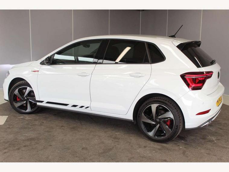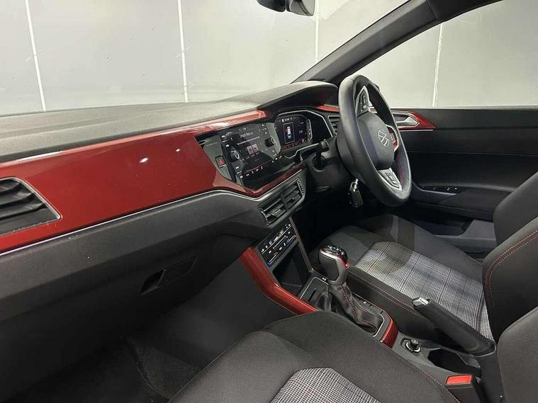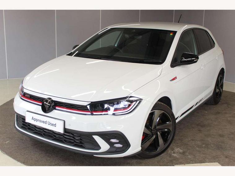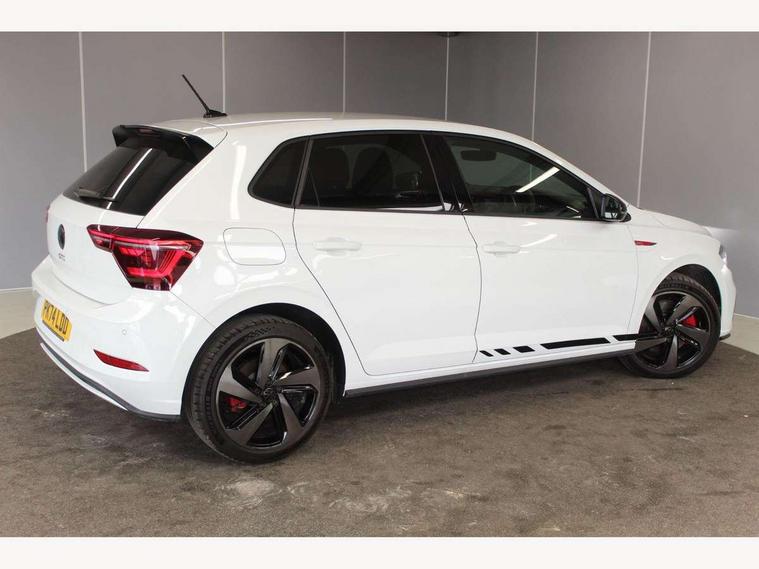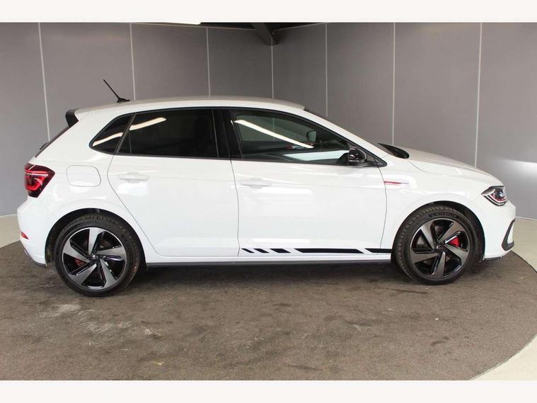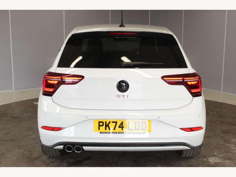 Adaptive cruise control with follow-to-stop and speed limiter, Advanced driver attention and drowsiness monitor, Bluetooth mobile phone interface, Digital Cockpit Pro with 10.25" Display, Dynamic road sign display, Eco mode, Emergency call service, Multifunction camera, Power assisted speed sensitive steering, Preparation for We connect and We connect plus, Speedo and rev counter, electronic odometer, trip, service interval display and fuel gauge, Travel Assist - Lane keeping system and traffic jam assist, Travel assist including emergency assist, Trip computer, Warning signal and warning light for front and rear seatbelts not fastened, Washer fluid level indicator, Wireless app connect, Adaptive chassis control, Front wheel drive, Heavy duty rear axle, Rear shock absorpion sports version, Sports select suspension lowered by 15mm, Start-stop system with battery regeneration (recuperation - energy recovery during braking), DAB Digital radio, Diversity antenna for FM reception, Front and rear 6 speakers, Body colour bumpers, Body colour door handles, Electric front windows, Front scuff plates in aluminium with GTI logo, Heat insulating darkened glass in side and rear windows, Heat insulating glass windscreen, Power folding adjustable/heated exterior mirrors and front passenger exterior mirror lowering function, Rain sensor, Rear electric windows, Rear fog light, Rear side wing doors, Rear windscreen washer and wiper with interval delay, Sport bumpers with air intakes with honeycomb structure, Third brake light, Twin chrome exhaust tailpipes, 12V power socket in centre console, 2 USB-C ports in the front, 2 USB-C charging sockets on the center console in the rear, 3 rear head restraints, 60/40 split folding rear seat and rear seat bench not split, Air care climatronic air conditoning system with active combination filter and 2-zone temperature control, Black roof lining, Carpet mats, front and rear, Chrome plated radiator grille inserts, air vent surrounds and light switch surrounds, Door and side trim panel, Driver and front passenger seat height adjustment, Driver/passenger sunvisors with illuminated vanity mirrors, Front centre armrest, Front footwell illumination, Front seat backrest storage pockets, GTI sports gearshift knob in aluminium leather, Handbrake lever handle in leather, Headliner in recycled material, Isofix child seat preparation easy-fit (for two outer rear seats, and front passenger seat) compatible with I-size, LED interior light with switch off delay and dimmer, 2 reading lights front and rear, Luggage compartment cover, Luggage compartment floor, Luggage compartment lighting, Single front passenger seat, Stainless steel pedals, Standard pedal cluster, Three spoke leather wrapped multifunction sports steering wheel with shifting paddles, IQ LED matrix headlights pack - Polo, Light and sight pack - Polo GTI, 3 point height adj front seatbelts + pretensioners, 3x3 point rear seatbelts, ABS, Driver and front passenger airbag with front passenger airbag deactivation, Drivers and front passengers safety optimised head restraints, ESC (Electronic stability control) + EDL (Electronic Differntial lock) and ASR (Traction control), Extended and predictive pedestrian/ cyclist protection, Front and rear disc brakes with red brake calipers, Front curtain and side airbags with center airbag, Hill hold control, Manual child lock in rear doors, Two tone horn, Tyre pressure loss indicator, Alarm with interior protection, Anti-theft alarm system with interior monitoring, backup horn, and towing protection, Anti-theft wheel bolts, Electronic engine immobiliser, Chrome applications on rotary light, mirror adjustment, window regulator switches, outlet with frame in black, Low rolling resistance tyres,