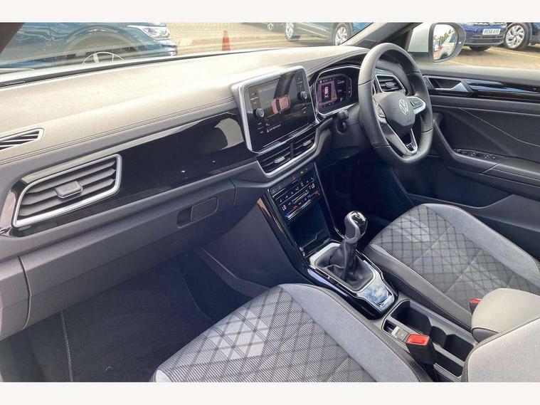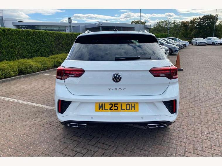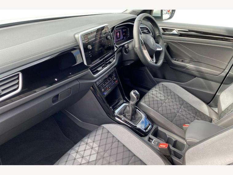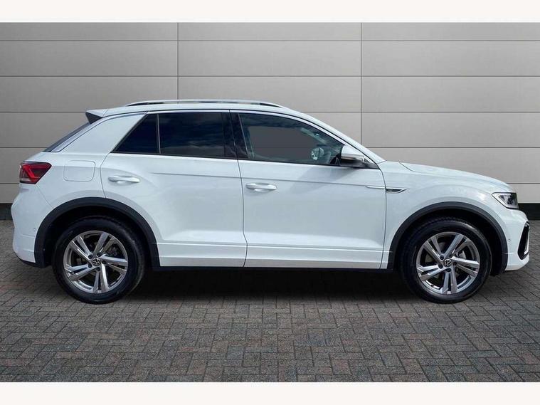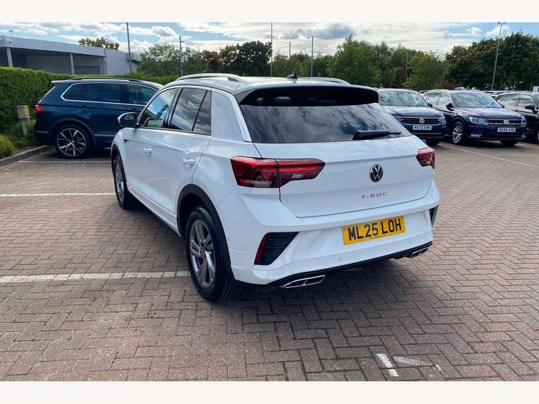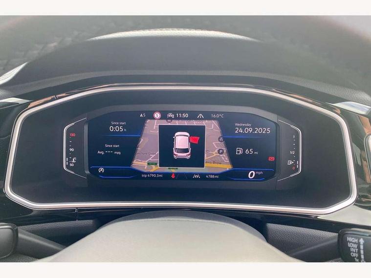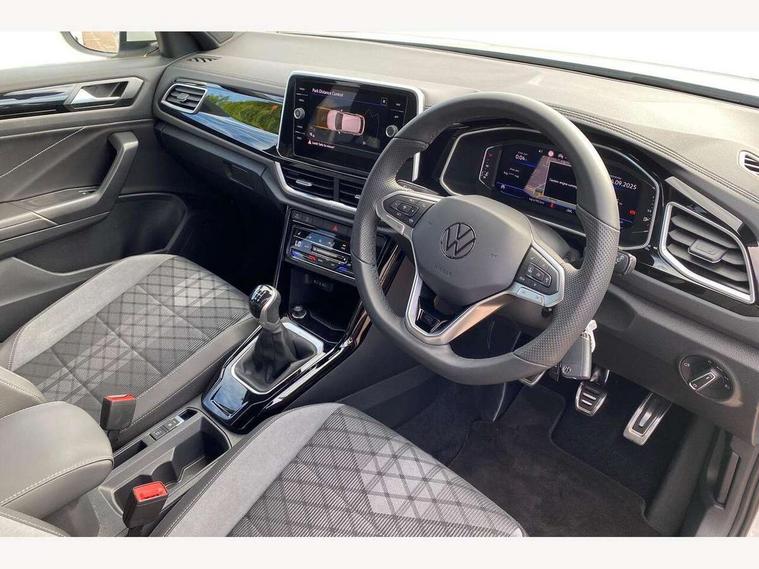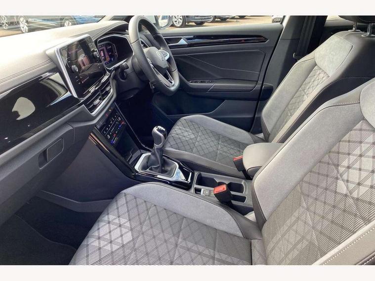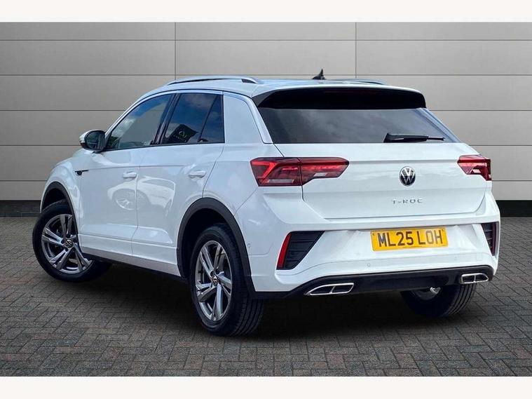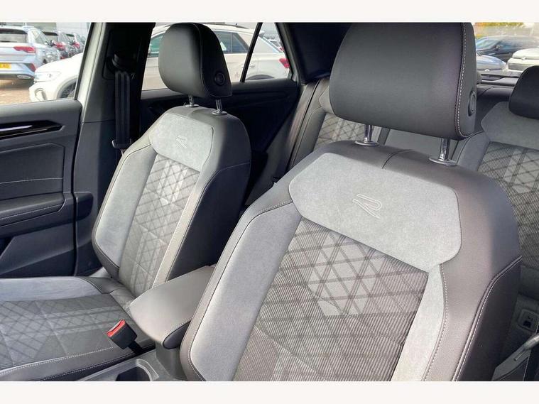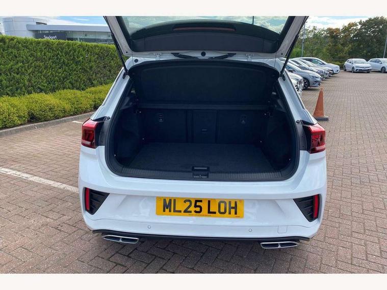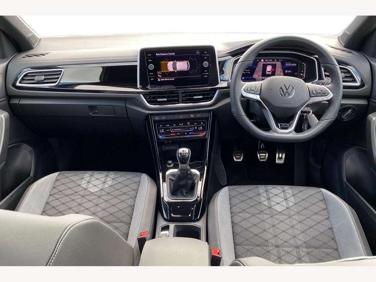 10.25" Digital cockpit pro, Advanced driver attention and drowsiness monitor, Emergency call service, Lane keeping system Lane Assist, Mobile phone interface, Modified key software - reduce switch off time for key status change to Long no motion, Online services, Park assist including front and rear parking sensors, Service interval indicator, Tailgate/trunk lid release from outside, Think blue trainer driver tips and journey analysis, Warning sound and light for front seatbelts unfastened, Wireless app connect, Battery regeneration during braking, Start/stop function with battery regeneration, DAB Digital radio, Diversity antenna for FM reception, Front and rear 6 speakers, Music playback - MP3, WMA and AAC files, Premium USB cable in choice of either Apple or Android smartphone compatibility, SD card slot, Simultaneous pairing of 2 compatible mobile devices, Title and cover art display, We Connect and We Connect Plus functionality, Auto dimming interior rear view mirror, Automatic hazard lights activation under emergency braking, Automatic headlight control with LED separate daytime running lights with coming/leaving home function, Body coloured exterior mirror housings and door handles, Electrically adjustable and heated door mirrors, Extended roof spoiler, Exterior mirrors aspherical on driver side, convex on front passenger side, External USB type C socket and charging sockets, Front windscreen wiper with intermittent wipe and 4 position delay, Heated rear window, LED 3rd brake light, LED rear combination lamps, LED rear number plate lights, Power windows with comfort operation and circuit breaker, Privacy glass for rear side windows and rear window, R-Line design body coloured bumpers, Rain sensor, Rear exhaust tailpipe, Rear fog light on one side and reversing lights on both sides, Rear side wing doors, Rear wash/wipe with intermittent wipe setting, Remote electrically foldable door mirrors, puddle lights and reverse activated passenger's door mirror, 12V power socket in centre console, 3 rear head restraints, 3 seat bench in 2nd row, 4 load lashing points in luggage compartment, Air care climatronic air conditoning system with active combination filter and 2-zone temperature control, Black roof lining, Chrome plated decorative trims, Chrome plated radiator grille inserts, air vent surrounds and light switch surrounds, Door and side trim panel with leatherette insert, Front + rear carpet mats, Front centre armrest, Front cupholders x 2, Front footwell illumination, Front reading light, Front scuff plates with R Line logo, Front seat back storage pockets, Glove compartment door with light, Instrument lighting, white adjustable panel illumination, Interior ambient lighting and surround lighting, Interior light delay, Isofix child seat preparation, Leather gearshift handle, Load-through provision with cup holder when folded down ('Unsplit rear seat bench, split folding backrest, with centre armrest), Luggage compartment lighting, Single front passenger seat, Stainless steel pedals, Storage compartment in left and right luggage area, Storage compartment in rear doors, Storage compartments in driver and front passenger doors, Sunvisors with illuminated vanity mirrors, Variable boot floor, height adjustable and removable, Driver assistance pack without proactive passenger protection - T-Roc, 3 point height adj front seatbelts + pretensioners, 3 point seatbelts in outer rear with ECE label, ABS, Child locks on rear doors, City emergency braking and pedestrian monitoring, Driver and front passenger airbag with front passenger airbag deactivation, Driver and front passenger safety-optimised head restraints, Drivers seatbelt reminder, Electronic parking brake, Electronic Stability Control (ESC) inc EDL (Electronic Differential Lock) and ASR (Traction Control), Front and rear passengers curtain airbag system including front side airbags, Hill start assist, Predictive pedestrian protection, Rear disc brakes, Two tone horn, Tyre pressure loss indicator, Volkswagen roadside assistance, Piano black decorative inserts in dashboard and front door trim panels, Trims for alloy wheels,