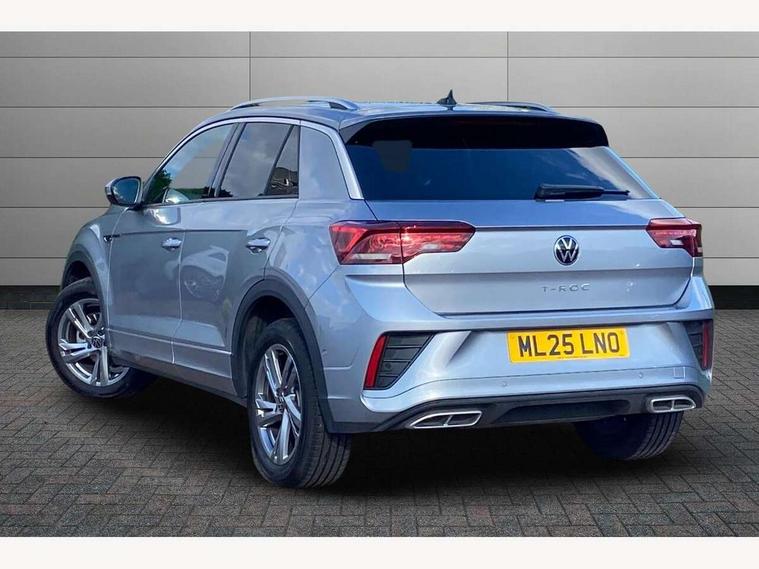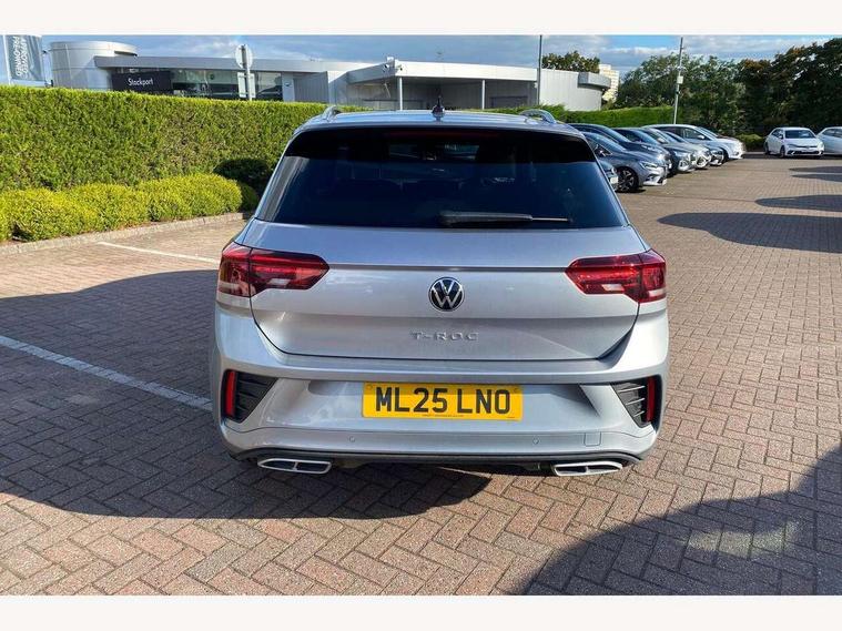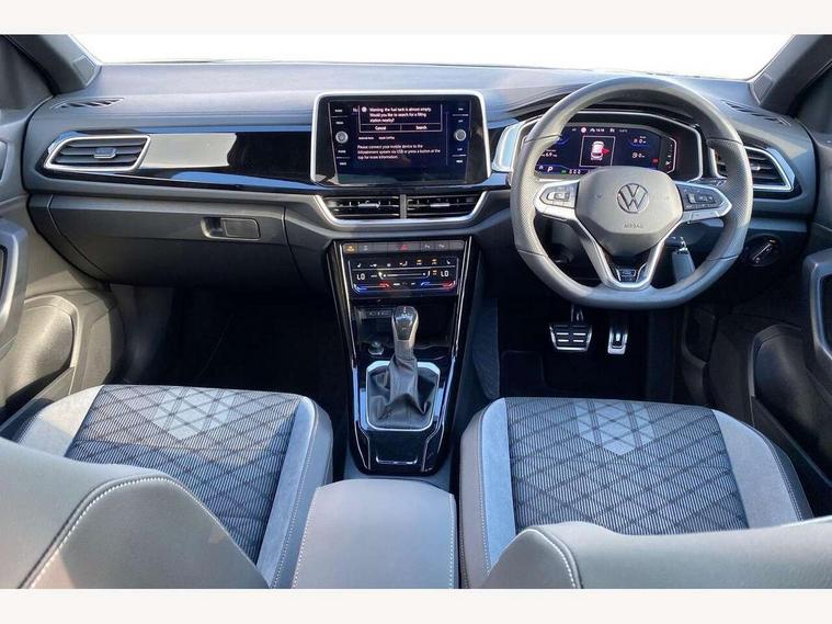 10.25" Digital cockpit pro, Advanced driver attention and drowsiness monitor, Emergency call service, Lane keeping system Lane Assist, Mobile phone interface, Modified key software - reduce switch off time for key status change to Long no motion, Online services, Park assist including front and rear parking sensors, Service interval indicator, Tailgate/trunk lid release from outside, Think blue trainer driver tips and journey analysis, Warning sound and light for front seatbelts unfastened, Wireless app connect, Battery regeneration during braking, Start/stop function with battery regeneration, DAB Digital radio, Diversity antenna for FM reception, Front and rear 6 speakers, Music playback - MP3, WMA and AAC files, Premium USB cable in choice of either Apple or Android smartphone compatibility, SD card slot, Simultaneous pairing of 2 compatible mobile devices, Title and cover art display, We Connect and We Connect Plus functionality, Auto dimming interior rear view mirror, Automatic hazard lights activation under emergency braking, Automatic headlight control with LED separate daytime running lights with coming/leaving home function, Body coloured exterior mirror housings and door handles, Electrically adjustable and heated door mirrors, Extended roof spoiler, Exterior mirrors aspherical on driver side, convex on front passenger side, External USB type C socket and charging sockets, Front windscreen wiper with intermittent wipe and 4 position delay, Heated rear window, LED 3rd brake light, LED rear combination lamps, LED rear number plate lights, Power windows with comfort operation and circuit breaker, Privacy glass for rear side windows and rear window, R-Line design body coloured bumpers, Rain sensor, Rear exhaust tailpipe, Rear fog light on one side and reversing lights on both sides, Rear side wing doors, Rear wash/wipe with intermittent wipe setting, Remote electrically foldable door mirrors, puddle lights and reverse activated passenger's door mirror, 12V power socket in centre console, 3 rear head restraints, 3 seat bench in 2nd row, 4 load lashing points in luggage compartment, Air care climatronic air conditoning system with active combination filter and 2-zone temperature control, Black roof lining, Chrome plated decorative trims, Chrome plated radiator grille inserts, air vent surrounds and light switch surrounds, Door and side trim panel with leatherette insert, Front + rear carpet mats, Front centre armrest, Front cupholders x 2, Front footwell illumination, Front reading light, Front scuff plates with R Line logo, Front seat back storage pockets, Glove compartment door with light, Instrument lighting, white adjustable panel illumination, Interior ambient lighting and surround lighting, Interior light delay, Isofix child seat preparation, Leather gearshift handle, Load-through provision with cup holder when folded down ('Unsplit rear seat bench, split folding backrest, with centre armrest), Luggage compartment lighting, Single front passenger seat, Stainless steel pedals, Storage compartment in left and right luggage area, Storage compartment in rear doors, Storage compartments in driver and front passenger doors, Sunvisors with illuminated vanity mirrors, Variable boot floor, height adjustable and removable, Driver assistance pack without proactive passenger protection - T-Roc, 3 point height adj front seatbelts + pretensioners, 3 point seatbelts in outer rear with ECE label, ABS, Child locks on rear doors, City emergency braking and pedestrian monitoring, Driver and front passenger airbag with front passenger airbag deactivation, Driver and front passenger safety-optimised head restraints, Drivers seatbelt reminder, Electronic parking brake, Electronic Stability Control (ESC) inc EDL (Electronic Differential Lock) and ASR (Traction Control), Front and rear passengers curtain airbag system including front side airbags, Hill start assist, Predictive pedestrian protection, Rear disc brakes, Two tone horn, Tyre pressure loss indicator, Volkswagen roadside assistance, Piano black decorative inserts in dashboard and front door trim panels, Trims for alloy wheels,