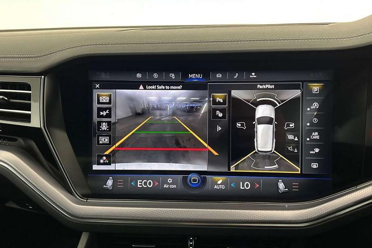 2D/3D map view, ACC - Adaptive cruise control with front assist, forward collision warning, distance monitoring, city emergency brake and speed limiter, Apple car play/Android Auto, Audible and visual fatigue detection system, Bluetooth hands free telephone connection, Car information display, Drive select with Damper control, Driver alert system, Driver profile selection, Dynamic road sign display camera controlled system with visual warning for traffic and road signs, eCall emergency system, Fully electric tailgate + keyless entry and start, Instrument cluster, MirrorLink, Multifunction camera, Multifunction computer premium with 7" colour display, One touch indicators with repeat function, Service interval indicator, Speed sensitive power steering, Start/stop system with regenerative braking, Tailgate power latch, Think blue trainer driver tips and journey analysis, Traffic sign recognition, Voice control system, Wireless Smartphone charger, 24 litre AdBlue tank, Torsen limited slip differential, DAB Digital radio, Dynamic navigation based on TMC+, Gesture control for infotainment system, Multi device interface (MDI) with illuminated USB-C connection, Music playback - MP3, WMA and AAC files, SD card slot, Simultaneous pairing of 2 compatible mobile devices, SMS functionality - read, compose and send SMS messages using touch-screen display, Title and cover art display, Volkswagen media control, Adaptive low beam for urban and motorway use, Auto dimming rear view mirror, Automatic coming/leaving home lighting function, Automatic headlights, Black anodised roof rails, Black door mirrors, Black rear diffuser, Black side window surrounds, Black upper and lower grille louvres extending into headlights and radiator grille, Body colour door handles, Body coloured wheel arches, C signature gloss black front air intake, Chromed tailpipe on the left and right integrated in the bumper with trapezoid design, Dusk sensor, Dynamic headlight range control, Electric front tilt/slide panoramic sunroof and fixed rear sunroof, Electrically power adjustable, heated, folding, auto dimming, front passenger exterior door mirror lowering function, Front and rear electric windows, Galvanised body, Gloss black finish B pillar, Gloss black rear diffuser, Headlight washers, Heat insulating glass in side and rear windows, Heated windscreen washer jets, IQ.Light-LED matrix headlight, daytime running light with dynamic cornering light and indicator, LED 3rd brake light, LED rear fog light, LED rear number plate lights, Plastic scuff plates in door apertures, Poor weather light, Puddle lights, Rain sensor, Rear side wing doors, Rear wiper, 12V socket in front and rear centre console and boot, 2 Coat hooks on B pillar, 3 rear head restraints, 3 seat bench in 2nd row, 3 spoke sport heated leather multi-function sports steering wheel with gear shift paddles - generation 2, 4 way adjustable front head restraints, 4 way electric lumbar support for driver and front passenger, 4 zone climate control, 40:20:40 split folding slide/recline rear seat, B pillar vents, Black lower edge of door extending sills, Branded points of interest, Double sun visor for drivier and passenger with LED illuminated vanity mirrors, Electric luggage compartment cover, Folding rear centre armrest with 2 cupholders, Front + rear carpet mats, Front centre armrest with storage box, Gear shift indicator, Height/reach adjust steering wheel, Illuminated air conditioned glovebox, Isofix preparation for 2 rear child seats, Jack and tool kit, Leather trimmed gear knob with gloss black inlay/aluminum trim, Leatherette door trim, LED luggage compartment lighting, Load through provision, Luggage compartment with load lashing rings, Plastic loading edge protection, Rear seat remote release levers, Single front passenger seat, Soul black headlining, Stainless steel pedals, Innovision cockpit pack - Touareg, 3 point front seatbelts with pre-tensioners, ABS, Active bonnet, Automatic post collision braking system, Curtain airbags, Driver/Front Passenger airbags, EBD + Brake Assist, EDL, Electronic parking brake with auto hold, ESC with ASR, Front seat side impact airbags, Hill descent control, Hill start assist, Passenger airbag deactivate switch, Seatbelt warning lamp and buzzer, Three 3 point rear seatbelts, Two tone horn, Volkswagen roadside assistance, Warning triangle and first aid kit, Alarm with interior monitoring in cab, backup horn and towing protection, Child security locks for front and rear doors, Electronic engine immobiliser, Remote central locking, Black decorative trims on the side windows, High gloss black centre console,