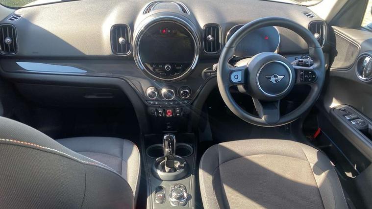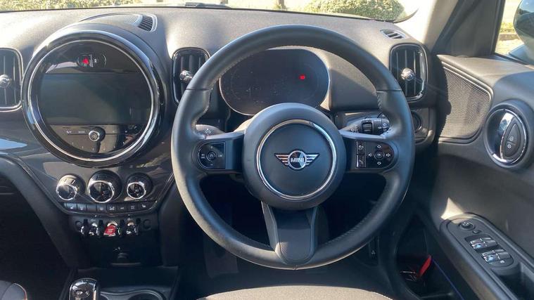 Active Guard incl speed limiting and lane departure functions with auto steering, and front collision warning with brake intervention, Automatic start/stop function with brake energy recuperation, Compatible mobile phone bluetooth with audio streaming, Cruise control with brake assist, Electro-mechanical speed dependant steering assistance, Instrument cluster, Mini E-call, On board computer, Rear parking distance control, 51 Litre fuel tank, Double Vanos system, Fully variable valve control, High precision injection, Performance Control, Steptronic transmission with double clutch, FM tuner and DAB digital radio, 3rd brake light, Body colour fuel filler cap, Day time driving lights, Door sill strips, Dynamic brake lights, Electric windows, Heated rear window, Heated windscreen washer jets, LED fog lights, LED Headlights, Left exhaust tailpipe with chrome finisher, Model logo, Model logo on Tailgate, Radiator grille, Rain sensor with auto headlights, Rear fog lights, Rear side wing doors, Rear window wiper, Side scuttle panel with integrated indicator, Split rear doors, Sun/heat protection glass, White indicator lenses, 12V socket in centre console, 3 seat bench in 2nd row, 3 spoke sport leather steering wheel + limiter function and audio controls, 360L luggage compartment capacity, 4 lashing eyes in luggage compartment, 40:20:40 split folding rear seats, Chrome interior highlights, Colour line - Carbon black, Cupholders, English handbook, Floor mats, Front headrests, Glove compartment, Headliner with grab handles and clothes hooks, Height and length steering column adjustment, Interior lighting with 12 basic colours selectable via toggle switch in roof, Isofix rear child seat preparation, Leather gearshift lever and handbrake gaiters, LED reading lights, vanity mirror lights, front foot well light and spotlight on front seats, Manual air conditioning, Mechanical seat adjustment, driver seat height adjust, forward/back and front seats backrest, Multifunction steering wheel, Passenger seat height adjuster, Rear headrests, Single front passenger seat, Storage compartments in doors, Sunvisors with vanity mirrors, Excitement pack - Countryman, Navigation pack - Countryman, 2 tone horn, 3 point seatbelts on all seats, 6 Airbags - front, side, head and seat belt tensioners, Anti-lock braking system (ABS), DSC - Dynamic Stability Control, Electronic handbrake, Front and rear disc brakes, Hill start assist, Manual rear child locks, Tyre pressure monitoring system, Alarm system with tilt sensor, monitoring doors, bonnet interior and tailgate, Auto drive away locking, Deadlocking function, Electronic vehicle immobiliser, Locking wheel bolts, Start/stop toggle with keyless go, Tool kit,