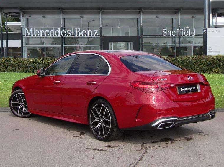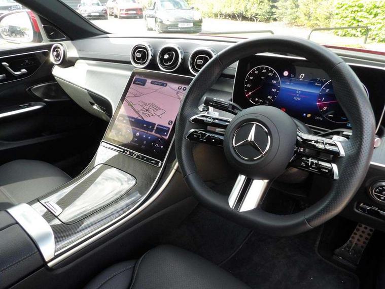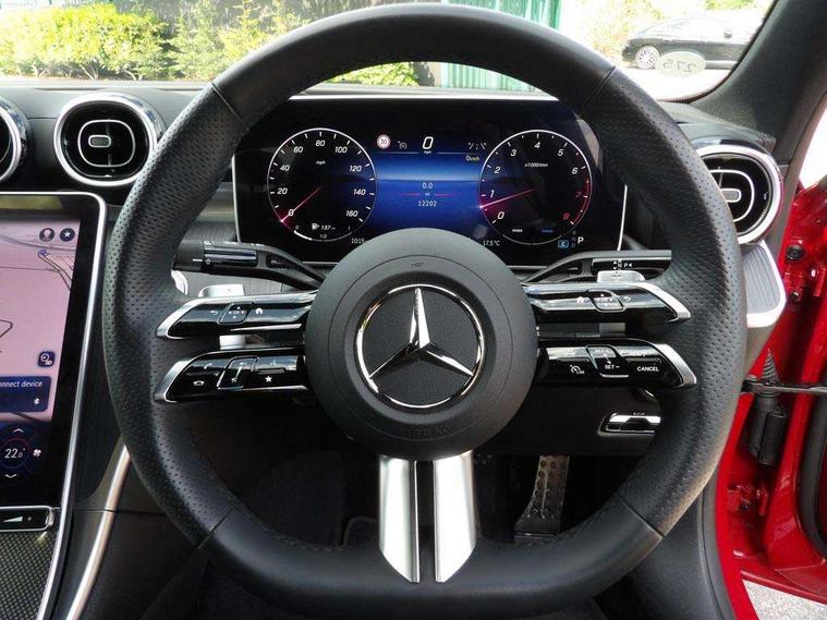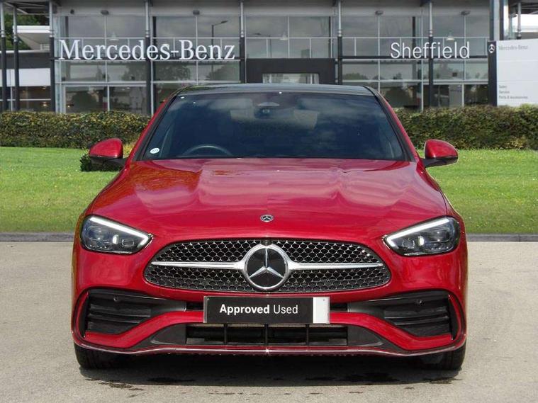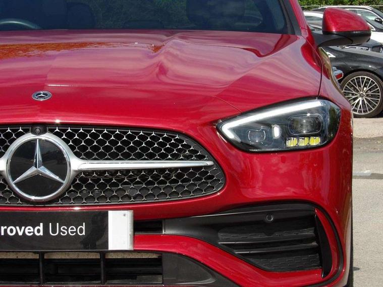 11.9" high resolution multimedia colour display, 12.3" digital instrument cluster display, Active lane keeping assist, Attention assist, DYNAMIC SELECT with a choice of driving modes (Comfort, ECO, Sport, Sport+, Individual), E-call, Extended MBUX functions, Finger print sensor, Fluorescent jacket for driver, Head up Display, MBUX augmented reality for navigation, MBUX navigation premium, MBUX voice control activated by keywords "Hey Mercedes", Mercedes connect me, Mercedes me remote services, Outside temperature gauge, Pre-installation for digital key transfer, Remote boot release, Service indicator (ASSYST), Smartphone integration, Sports direct steer speed sensitive steering, Status display for rear seat belts in instrument cluster, Traffic sign assist, Wireless charging system for mobile devices, 66l fuel tank with increased capacity, 9G TRONIC 9 speed automatic transmission, Agility control sports suspension and lowered by 15 mm, Petrol Particulate Filter, Residual engine heat utilisation, Sporty engine sound system, Burmester 3D surround sound system, DAB Digital radio, MBUX multimedia system, Adaptive brake lights, Adaptive high beam assist plus, AMG body styling front apron, rear apron and side skirts, AMG front bumper with sporty air intakes and chrome elements, AMG rear bumper with high gloss chrome elements, AMG side skirts in vehicle colour, B-pillar trim in glossy black, Body coloured bumpers, Body coloured door mirrors, Chrome beltline trim, Daytime running lights, Digital light LED headlights with projection function, Electric panoramic sliding sunroof, Electric windows with one touch opening/closing and obstruction sensors, Electrically adjustable and heated door mirrors, Green tinted glass, Heat insulating dark tinted glass, Illuminated front door sill panels, LED Indicators, LED tail lights, LED third brake light, Noise acoustic glass, Powerdomes on bonnet, Privacy glass, Radiator diamond grille with integrated Mercedes Benz star and louvre silver with chrome pins, Radio aerial integrated into rear window, Rain sensor with automatic windscreen wiper activation, Rear boot, Rear side wing doors, Two visible exhaust pipes integrated into rear bumper, 3 seat bench in 2nd row, 3 spoke flattened bottom AMG multifunction steering wheel in black nappa leather with chrome inserts and perforated leather in grip area, 40:20:40 split folding rear bench seat, Ambient lighting premium, AMG sports seats, Artico man-made leather upholstery, Audio and onboard settings control on multifunction steering wheel, Auto Mercedes-Benz child seat recognition sensor, Black air vents with silver chrome elements, Black floor mats with AMG lettering, Black roof liner, Door trim elements high gloss black with silver chrome surroundings and switches, Double cupholder in centre console, Electrically height/reach adjustable steering column, Folding rear seat backrest, Front and rear head restraints, Front centre armrest with storage compartment, Gearshift paddles on steering wheel, Heated front seats, Illuminated door sills with Mercedes Benz lettering, Illuminated glove compartment stowage, Overhead control unit in high gloss black, Rear top tether child seat ISOFIX attachment, Single front passenger seat, Sports pedals with stainless steel surfaces and rubber studs, Sunvisors with illuminated vanity mirrors, Thermotronic automatic 4 zone climate control, Interior lighting package - C Class, Memory package - C Class, Mirror pack - C Class, Parking package with 360 degree camera - C Class, Seat comfort pack - C Class, Stowage space pack - C Class, USB package plus - C Class, 3 rear 3 point seatbelts, Active bonnet pedestrian safety measure which detects an impact and raises bonnet, Adaptive brake system with HOLD function and brake drying in the wet, Anti-lock braking system (ABS), Black seat belts, Brake calipers with Mercedes-Benz lettering + perforated front brake discs, Child proof door locks, Drivers knee airbag, Drivers pelvis airbag, Dual stage driver/passenger airbags, Electric parking brake, Electronic Stability Programme (ESP), Front centre airbag between driver and front passenger seats, Front side airbags, Larger brake discs on front axle, Rear seatbelt warning indicator, Sports braking system, Tyre pressure monitoring system, Warning triangle and first aid kit, Window airbags for driver, front passenger and rear passenger, Central locking with interior switch, automatic locking and crash sensor with emergency opening function, Chrome surround electric key, Dashcam, Keyless Go, URBAN GUARD vehicle protection (Thatcham Category 1) consisting of break-in, anti-theft alarm system (ATA), interior monitoring and tow-away protection, Artico man-made leather dashboard with contrast stitching, Centre console trim in anthracite line structure lime wood, 19" AMG 5 twin spoke light alloy wheels aerodynamically optimised painted in black with high sheen finish, Noise reduced tyre with foam absorber, Summer tyres, TIREFIT with tyre inflation compressor,