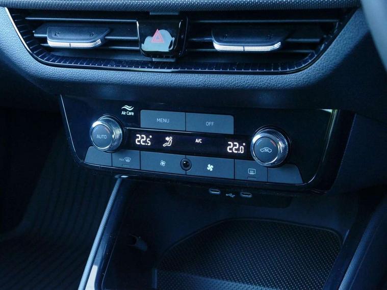 Advanced driver attention and drowsiness monitor, Bluetooth connection, Electromechanical power steering, Exterior temperature gauge, Service interval indicator, Traffic sign recognition, Virtual cockpit with 10.25" colour display, Wireless SmartLink for Apple CarPlay and Android Auto, 6 Speakers (4 in front and 2 in rear), Auxiliary socket for external MP3 player, DAB digital radio reception, Auto dimming rear view mirror, Body coloured bumpers, Door mirror integrated indicators, Front and rear electric windows, Front window wiper intermittent control, Headlight range control - Automatic, Ice scraper in fuel cap, LED daytime running lights with coming and leaving home feature, LED rear lights, Privacy glass, Rear LED fog light, Rear side wing doors, Rear window wiper with washing nozzles, Roof mounted spoiler, SKODA tailgate lettering in chrome, Third brake light, Unique dark chrome design logo on alloy wheels, 2 reading lights in front and 2 reading lights in rear, 3 rear headrests, Backrest split and folding, Central console with removable cup holder and storage box, Chrome handbrake release button, Dual zone air conditioning with climatronic electronic control, Fabric upholstery, Front centre armrest, Gearshift knob/handle in leather, Grain satin black interior door handles, Hand brake lever handle in leather, Height adjustable front headrests, Height adjustable front seats, Height adjustable steering wheel, ISOFIX and TopTether anchorage points to the outer rear seats, ISOFIX and TopTether on the front passenger seat, Luggage compartment lighting, Manually adjustable lumbar support in front seats, Pollen filter, Rear seat bench unsplit, Single front passenger seat, Skoda lettering on steering wheel, Storm grey headlining, Sun visors with mirror and airbag label on passenger side, Textile floor mats, Ticket holder, Umbrella in drivers door, 3-point height adjustable front seats belts with pretensioner and force limiter, Automatic warning lights in case of crash, Driver and passengers airbag with switch off function, e-Call+, ESC including ABS, MSR, ASR, EDS, HBA and XDS, Front and rear seat belt warning, FRONT ASSIST (AEB City and AEB Inter Urban), Front side airbags, Head airbags, Hill hold control, One tone horn, Pedestrian protection, Three rear 3-points safety seat belts with pretensioner and force limiter including stop function for outer rear seat belts, Tyre pressure monitoring system, Anti-theft alarm system including immobiliser, interior monitoring, backup horn, and towing protection, Central locking with radio remote control, interior controls, SAFE function and 2 foldable keys, Black painted air vents, Grain satin black central console cover, Metallic grey upper decorative trim, Satin black door and side trim panel in front, Textile Kota grey lower decorative inserts, Anti-theft wheel bolts protection, Super-low rolling resistance tyres,