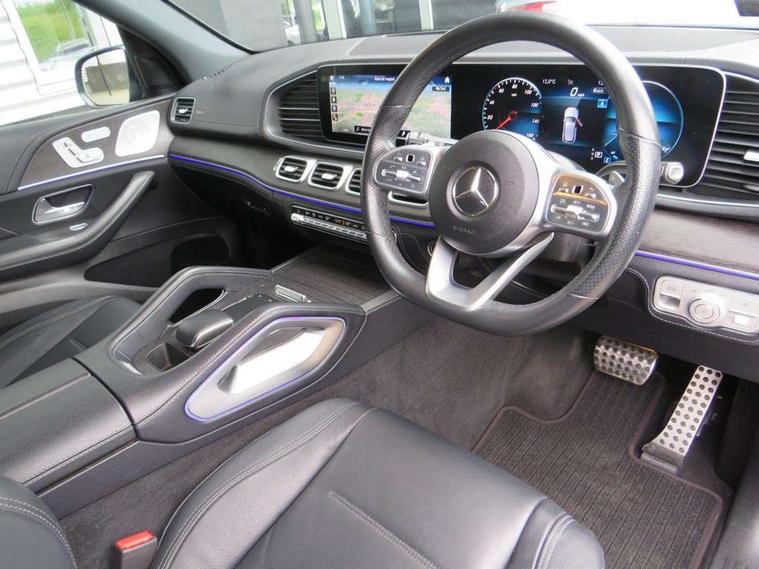 Attention assist, Brake wear warning display, Cockpit display 12.3" widescreen digital instrument cluster, Direct steer speed sensitive steering, DYNAMIC SELECT with a choice of driving modes (ECO, Comfort, Sport and Individual), Easy-pack tailgate - Powered opening/closing automatically, ECO start/stop function, Geofencing, Hard-disk navigation, Hey Mercedes Voice activation, High resolution 12.3" multimedia colour display, MBUX augmented reality for navigation, Mercedes me connect including emergency call system, accident recovery, breakdown management and maintenance, Outside temperature display, Remote boot release, Service indicator (ASSYST), Smartphone integration with Apple CarPlay and Android auto, Status display for rear seat belts in instrument cluster, Traffic Sign Assist, Traffic sign recognition including wrong way warning function and display of posted speed limits in the instrument cluster, Trip computer in multifunction display showing current fuel consumption, Wireless charging system for mobile devices, 85 litre fuel tank, Agility control suspension with selective damping system and lowered by 15mm, Diesel particulate filter (DPF), Incorrect fuelling protection, Burmester surround sound system, DAB Digital radio, Dual bluetooth interface, 2 USB ports (type C), MBUX multimedia system with DAB digital radio and touchpad including satellite navigation, Adaptive brake lights, Adaptive high beam assist, Aerial for GPS, Aluminium look, illuminated running boards with rubber studs, AMG bodystyling front and rear aprons and side skirts in polished aluminium, Body colour door mirrors, Body coloured bumpers, Electric windows with one touch opening/closing and obstruction sensors, Exterior mirrors heated and electronically adjustable, Front green tinted glass, LED rear lights, Multi beam LED headlights, Panoramic sunroof, Privacy glass - heat insulating dark tinted glass, Radiator grille with integrated star and single louvre in matt iridium silver with chrome trim, Radio aerial integrated into rear window, Rain sensing windscreen wipers, Rear wiper, Roof rail system, Top surround of side windows in polished aluminium, Visible twin pipe exhaust system integrated into bumper, Waistline in polished aluminium, 3 spoke AMG multifunction steering wheel with touch control buttons, trimmed in black nappa leather with flattened bottom section, 4 way adjustable front head restraints and 2 way rear head restraints, 4 way lumbar support, 40:20:40 split folding rear seats, AMG brushed stainless steel sports pedals with rubber studs, AMG floor mats with AMG lettering, Artico man-made leather upper dashboard with contrast topstitching, Automatic child seat recognition sensor, Black fabric roof liner, Central stowage compartment with 12 V socket in centre console, Chrome door pins, Courtesy lights in rear grab handles with reading light functionality, Four way partially front electric seat adjustment, Front centre armrest with stowage compartment and illuminated grab handles, Gearshift paddles on steering wheel, Glasses compartment in overhead control panel, Glove compartment - lockable, air conditioned and illuminated, Heated front seats, Interior lighting - 64 colour Ambient lighting, ISOFIX child seat attachment points two outer rear seats, Nappa leather upholstery, Seat occupancy sensor for front passenger seat, Second row three seats, Steering column manually adjustable for height and reach, Sunvisors with illuminated vanity mirrors, Touchpad, Two zone automatic climate control, Air balance package - GLE, Anti theft Protection package - GLE, Driving assistance pack - GLE Premium Plus/GLE 53, Energizing comfort package - GLE, Keyless go comfort package - GLE, Memory package - GLE, Mirror package - GLE, Parking package with 360 camera - GLE, Active bonnet, Adaptive brake system with HOLD function and brake drying in the wet, Airbags - driver and front passenger, with extended adaptivity for front passenger airbag, Airbags - sidebag for driver and front passenger with combined thorax/pelvis bag, Airbags - windowbags, Anti-lock braking system (ABS), Childproof locks manually operated for rear doors and electrically operated for rear power windows, Drivers knee airbag, Electronic parking brake, Electronic Stability Programme (ESP), Perforated front brake discs and brake calipers with Mercedes-Benz lettering, Pre-Safe anticipatory safety system, Three point rear seat belts, Tyre pressure monitoring system and loss warning system, Warning triangle and first aid kit, Alarm system/interior protection/immobiliser, Central locking with interior switch, automatic locking and crash sensor with emergency opening function, Chrome surround electric key, Keyless entry, Dashboard and door, anthracite open pore oak wood trim, Trim - Centre console, anthracite open pore oak wood trim, 21" AMG multi spoke light alloy wheels painted in black with a high sheen finish, Summer tyres with noise reducing absorber, TIREFIT with tyre inflation compressor,