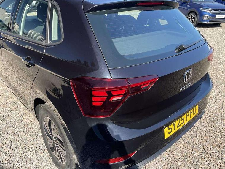 Adaptive cruise control with follow-to-stop and speed limiter, Advanced driver attention and drowsiness monitor, Bluetooth mobile phone interface, Dynamic road sign display, Emergency call service, Multifunction camera, Power assisted speed sensitive steering, Preparation for navigation system with media and internet package, Preparation for We connect and We connect plus, Speedo and rev counter, electronic odometer, trip, service interval display and exterior temperature gauge, Standard rear axle, Travel Assist - Lane keeping system and traffic jam assist, Travel assist including emergency assist, Trip computer, Warning signal and warning light for front and rear seatbelts not fastened, Washer fluid level indicator, Wireless app connect, Front wheel drive, Rear shock absorpion, Start-stop system with battery regeneration (recuperation - energy recovery during braking), DAB Digital radio, Diversity antenna for FM reception, Front and rear 6 speakers, Automatic dimming interior rear view mirror, Automatic headlight control with LED separate daytime running lights with coming/leaving home function, Body colour bumpers with chrome inserts, Body colour door handles, Body colour door mirrors, Electric front windows, Engine badge deletion, Headlight range adjustment, Heat insulating and laminated safety glass windshield, LED Headlights, LED rear combination lamps, Power folding adjustable/heated exterior mirrors and front passenger exterior mirror lowering function, Rain sensor, Rear electric windows, Rear fog light, Rear side wing doors, Rear windscreen washer and wiper with interval delay, Third brake light, 12V power socket in centre console, 2 front and 2 rear reading lights with switch off delay and dimmer, 2 USB-C ports in the front, 2 USB-C charging sockets on the center console in the rear, 3 rear head restraints, 60/40 split folding rear seat and rear seat bench not split, Ceramique roof lining, Chrome plated radiator grille inserts, air vent surrounds and light switch surrounds, Door and side trim panel, Driver and front passenger seat height adjustment, Driver/passenger sunvisors with illuminated vanity mirrors, Front centre armrest, Front seat backrest storage pockets, Front standard seats, Handbrake lever handle in leather, Hartley/Thomas cloth upholstery, Headliner in recycled material, Isofix child seat preparation easy-fit (for two outer rear seats, and front passenger seat) compatible with I-size, Leather trimmed gear knob, Luggage compartment cover, Luggage compartment lighting, Removable luggage compartment floor, Single front passenger seat, Standard climatic zones, Standard pedal cluster, Three spoke leather wrapped multifunction steering wheel with shifting paddles, Light and vision pack - Polo, 3 point height adj front seatbelts + pretensioners, 3x3 point rear seatbelts, ABS, Driver and front passenger airbag with front passenger airbag deactivation, Drivers and front passengers safety optimised head restraints, ESC (Electronic stability control) + EDL (Electronic Differntial lock) and ASR (Traction control), Extended and predictive pedestrian/ cyclist protection, Front assist with autonomous emergency braking (for Adaptive Cruise Control ACC up to 130 mph), Front curtain and side airbags with center airbag, Front disc brakes, Hill hold control, Manual child lock in rear doors, Rear drum brakes, Single tone horn, Tyre pressure loss indicator, Alarm with interior protection, Anti-theft alarm system with interior monitoring, backup horn, and towing protection, Anti-theft wheel bolts, Electronic engine immobiliser, Lava stone black gloss/matt decorative inserts in dash and front door panels, Low rolling resistance tyres,