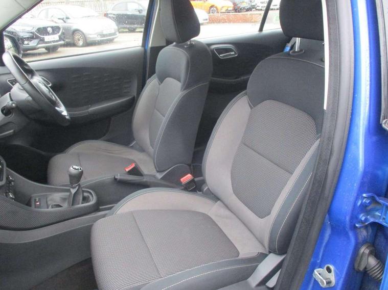 8" colour touch screen, Apple car play, Headlamp on warning buzzer, Multi function trip computer, PAS, Remote fuel flap release, Reverse parking sensors, 4 front speakers with woofer (2 main and 2 tweeters), Bluetooth telephone and audio streaming, DAB radio + AUX/USB, Remote audio controls on steering wheel, Auto dimming rear view mirror, Body colour bumpers, Body coloured door handles, Body coloured electrically adjustable heated door mirrors, Body coloured rear spoiler, Body coloured side sills extension, Electric front/rear windows/one touch facility, High mounted stop lamp, LED daytime running lights, LED headlamps with "follow me home" feature, Programmed rear wash/wipe, Solar reducing windscreen, Variable front intermittent wipers, 12V socket, 60/40 split folding rear seat, Air conditioning with dust and pollen filter, Boot space lamp, Driver 6-way adjustable seat, Driver's footrest, Fabric upholstery, Front cupholders x 2, Front headrests, Front interior lamp with reading lamps and time delay, Front sun visors with driver and passenger mirrors, Passenger 4-way adjustable seat, Rear headrests, Seat back pockets, Stitched leather-style steering wheel, Tilt adjustable steering column, 2 x adjustable rear head rests, 3x3 point rear seatbelts, Airbags - Twin front, side and curtain, Driver seatbelt warning indicator, Fold-away key, Front disc brakes and rear drum brakes, Front seatbelts (3-point + pretensioner + load limiter), Hill hold function, Passenger airbag cut-off switch, Passenger seatbelt warning indicator, Rear child locks, Rear ISOFIX child-seat upper tether & lower anchor, Side impact beams, Stability control system (SCS) including ABS, EBD, EBA, CBC, Tyre pressure monitoring system, Remote central door locking with deadlocks and immobiliser, Speed sensitive door locking, 16" Diamond cut alloy wheels, Tyre repair kit,