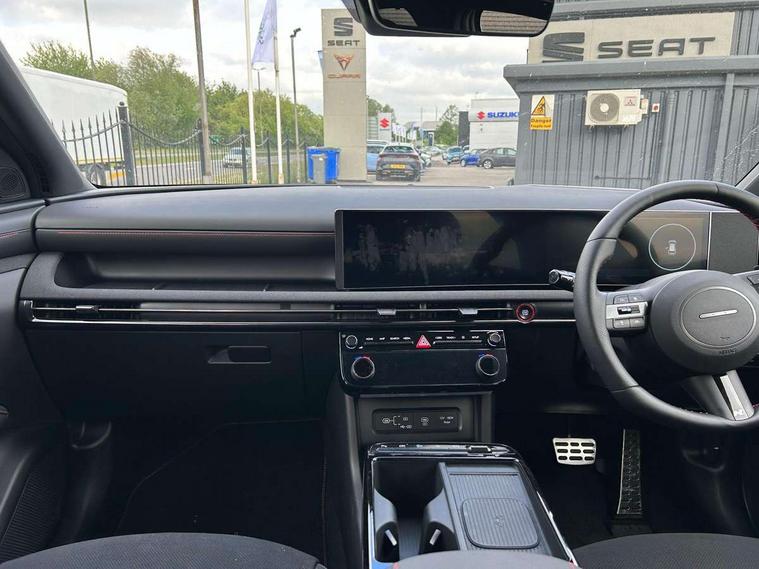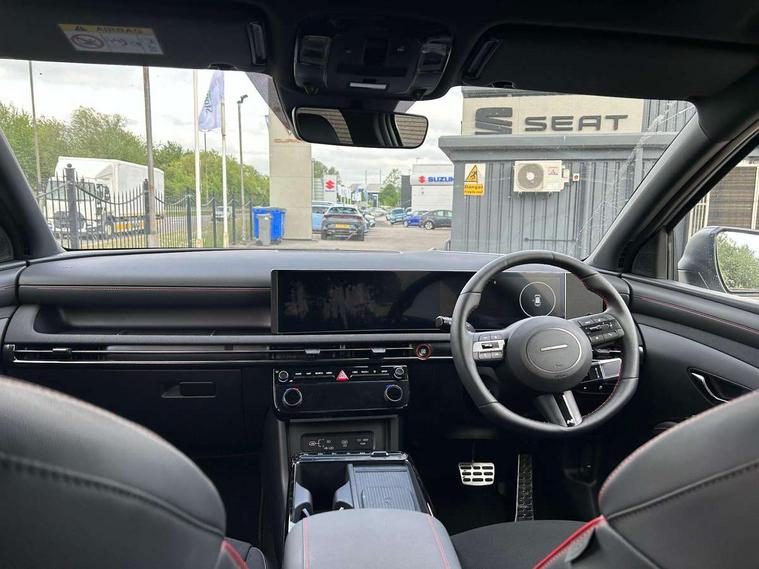 12.3" LCD display with driver's supervision instrument cluster, 12.3" widescreen navigation with bluelink and mapcare, Blind spot view monitor, Bluetooth system, Cruise control - smart adaptive speed control with stop and go function, Digital clock, Drive mode selector, Driver attention warning, E-call, Emergency stop signalling system, Forward Collision Avoidance Assist (FCA) - Car, Pedestrian and Cycle, Forward Collision Avoidance Assist Junction Turning (FCAJX), Front and rear parking sensors, Front, rear and side parking distance warning, Head up Display, Highway Driving Assist (HDA), Hyundai road side assistance, Intelligent speed limit assist, Lane follow assist, Lane keep assist, Over the air updates(OTA), Parking collision avoidance assist (PCA), PAS, Rear camera and guidance parking system, Rev counter, Smart power tailgate, Surround view monitor, Tailgate open warning light, Trip computer, Trip odometer, Voice recognition, Water temperature gauge, Windscreen washer fluid sensor and warning indicator, Wireless Apple CarPlay/Android Auto, Wireless phone charging pad, Charging cable - 7 pin type 2, Charging cable - Emergency 3 pin connector mode 2 (ICCB), 2 front and 2 rear USB-C ports, DAB Digital radio, Krell premium audio system with 8 speakers and subwoofer, Steering wheel mounted audio/phone controls, Adjustable intermittent front windscreen wipers with aero wiper blade, Auto dimming rear view mirror, Automatic defog system, Automatic headlights with dusk sensor, Automatic windscreen wipers with rain sensor, Body colour bumpers, Body colour door mirrors with integrated indicators, Body colour exterior door handles, Body coloured wheel arches, Electric tilt/slide panoramic sunroof, Electrically adjustable, heated and power folding door mirrors, Follow me home headlights, Front and rear electric windows with anti-trap mechanism and one touch control, Front fog lights, Glossy black bumper mouldings, LED 3rd brake light, LED daytime running lights, LED rear lights, Matrix LED headlights, Positioning Lights - LED, Privacy glass - Rear windows and tailgate, Rear side wing doors, Rear wash/wipe with intermittent wipe setting, Roof rails, Soft touch rear door paneling, Tinted glass with windscreen shade band, Trailer stability assist, 12V power outlets in front console and luggage compartment, 3 seat bench in 2nd row, 40/20/40 split folding rear seat, 64 colours interior ambient lighting, Adjustable head restraints (Up and down), Cupholders in rear armrest, Door courtesy lights, Driver and passenger sunvisors with illuminated LED vanity mirrors, Driver's seat electric adjustments, Front and rear door pockets, Front armrest with storage box, Front centre console and door bottle holders, Front passenger's seat electric adjustments, Heated front seats, Heated rear seats, Heated steering wheel, Height/reach adjustable steering column, Illuminated/air conditioned glove compartment, ISOFIX child seat anchorage points attached on outer rear seats, Leather wrapped steering wheel and gear knob, LED interior lighting, Luggage compartment lighting, Luggage cover, Luggage hooks, Luggage net, Map and reading lights, Metal pedals, N Line Leather/faux textile suede upholstery, Rear seat remote folding function, Rear side window sunblind, Reclining rear seats, Retractable load cover, Single front passenger seat, Sunglasses holder, Three zone climate control, Touch sensitive climate controls with temperature dials, TUCSON branded metal door scuff plate, Underfloor boot compartment, Ventilated front seats, N Line design package - Tucson, N Line interior design package - Tucson, Trailer wiring package - Tucson, 3x3 point rear seatbelts, Active bonnet, Airbag - Front, front side, curtain and centre front airbags, Anti-lock brake system (ABS), Brake assist function, Childproof rear door locks, Curtain airbag roll over sensor, Downhill brake control, Electric parking brake, Electronic stability control, Front and rear seatbelt reminder, Front passenger airbag deactivation switch, Front seatbelt pretensioners, Hill start assist control (HAC), Multi-Collision braking, Outer rear seatbelt height adjustment, Seatbelt height adjustment for front seats, Traction control, Tyre pressure monitoring system with individual tyre pressure display - TPMS, Vehicle stability management, Deadlocks, Immobiliser, Locking wheel nuts, Remote control central locking, Smart key with keyless entry and engine start/stop button, Speed sensitive auto door locking, Thatcham category 1 alarm, 19" Alloy wheels, Tyre repair kit,