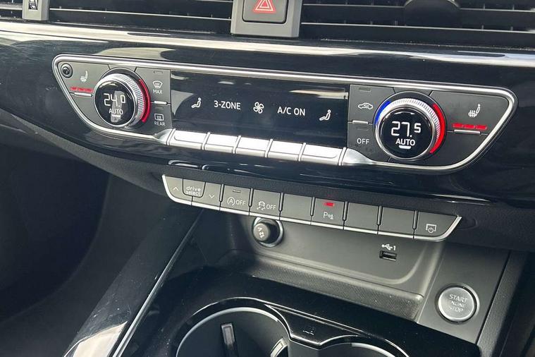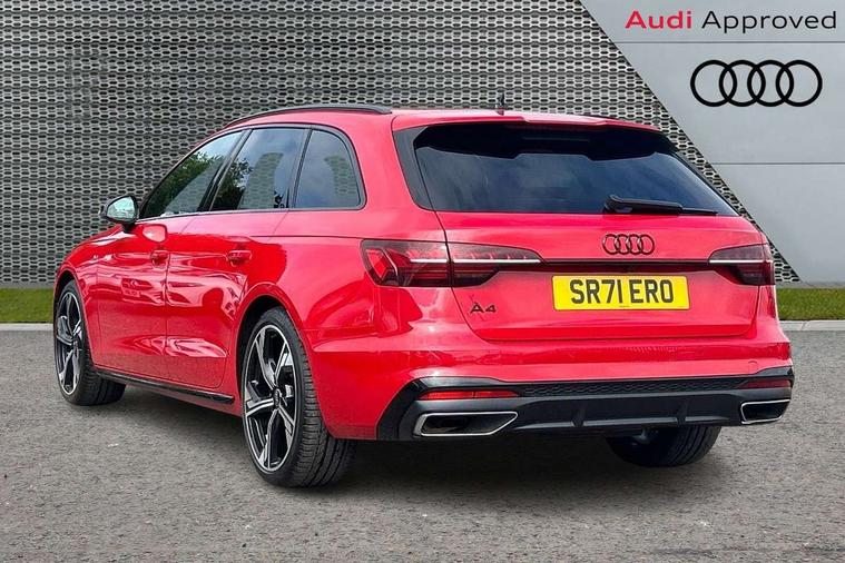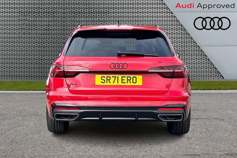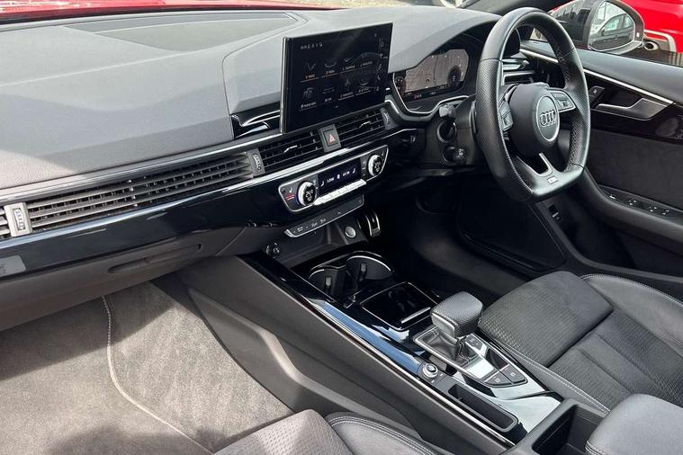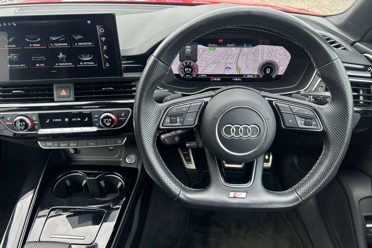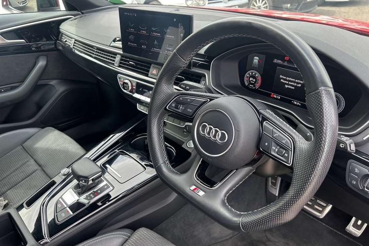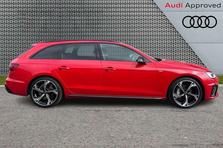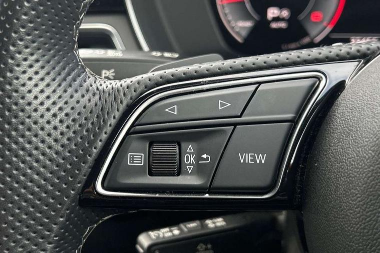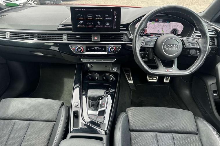 Audi connect safety and service (e-call), Audi connect with Amazon Alexa Integration, Audi drive select, Audi parking system plus with front and rear sensors, Audi smartphone interface, Audi virtual cockpit, Automatic start-stop system with coasting functionality and efficiency programme, Bluetooth interface, Electromechanical power steering, Email, calendar and text messages displayed via MMI, MMI Navigation plus with MMI touch includes 10.1" high resolution colour MMI display, 3D map, Power operated tailgate, Rear view camera, Voice control system, 54 litre fuel tank, Sports suspension lowered by 23mm, 2 USB charging ports, 8 passive loudspeakers, DAB digital radio reception, Auto dimming rear view mirror, Black Audi rings and black badging (model name in black badging, no engine badging), Black audi rings decal above rear sills, Body colour door handles, Body colour front spoiler lip, Body colour side sill trim, Electrically folding auto dimming/adjustable/heated door mirrors with LED side indicators and kerb view function for passenger side, Front and rear bumpers with side skirts, Front wing badges, Grained matt black side air inlets with matt aluminium silver inlay, High beam assistant, High gloss black B pillar trims and triangular rear door trim, LED headlights with LED rear lights + dynamic rear indicators + headlight adjustment and high beam, turning light + LED daytime running lights, LED third brake light, Matt aluminium silver tailpipe trim, Privacy glass, Rain and light sensors, Rear diffuser in matt titanium black with trim strip in matt aluminium silver, Rear side wing doors, RS4 rear spoiler in body colour, S Line roof edge spoiler, Variable intermittent front wash/wipe, Windscreen with acoustic glazing, 4 way electric lumbar support for driver and front passenger, 40/20/40 split folding 3 rear seat bench in 3 parts with rear centre armrest, Black cloth headlining, Black perforated leather gearknob, Contrast stitching on seats, steering wheel and gear lever gaiter, Deluxe 3 zone electronic climate control, Door sill trims with aluminium inlay, Electric load area cover, Front and rear head restraints, Front centre armrest, Heated front seats, Illuminated door sill trims with S logo, ISOFIX child seat mounting and top tether, Manual seat adjustment, Single front passenger seat, Stainless steel pedals and foot rest, Black styling pack - A4 Avant, LED Interior light pack - A4/S4, 3 rear seatbelts, 6 airbags - Driver, front passenger, curtain and side windows, Electronic Stabilisation Control (ESC) including ABS, ASR and EDL, Hill hold assist, Multi collision brake assist, Pop-up bonnet for pedestrian protection, Pre sense city, Seatbelt monitoring, Warning triangle and first aid kit, Anti theft alarm, Anti theft wheel bolts, Central locking, Keyless Go, Piano black finish inlay, Tool kit, Tyre repair kit,