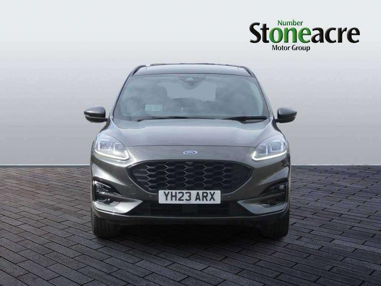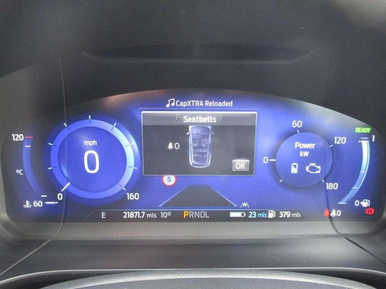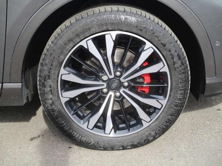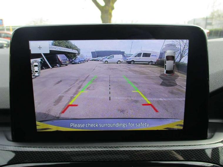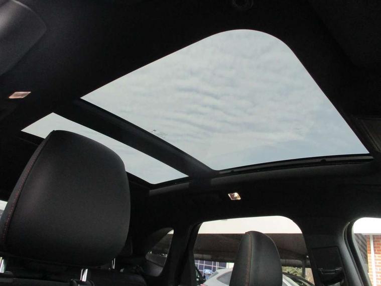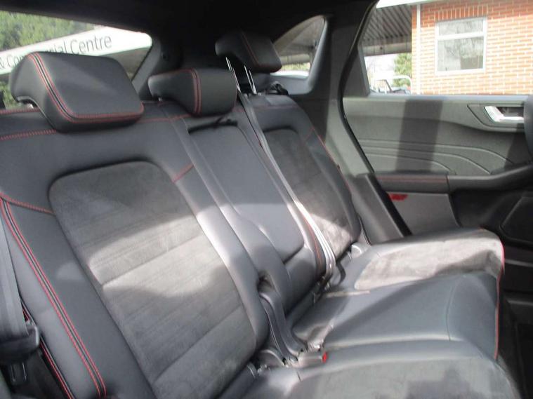 12.3" digital colour instrument cluster, Ford easy fuel, Ford SYNC 3 with 8" TFT LCD touchscreen, App Link, andriod auto/apple carPlay, emergency assistance and navigation with Ford pass connect, Front and rear parking sensors, Geo awareness, Hands free power tailgate, Lane keeping aid with lane departure warning, Power assist steering, Rear view camera, Selectable drive modes, Service interval indicator, 3-Pin 230V Domestic socket home charging cable, 3.7 kW monophase on board charger, Sports suspension, Twist beam rear suspension, B&O premium audio system with 10 speakers and subwoofer, 2 USB ports, DAB radio/CD, Auto headlamps with high and low beam, Black roof rails, Day/night rear view mirror, Front LED fog lamps, Large rear spoiler, LED daytime running lights, LED rear lights, Power folding heated door mirrors with puddle lights, Power front/rear windows with global close, Power opening panoramic roof, Privacy glass, Quickclear heated windscreen, Rear side wing doors, Rear wiper, ST Line body styling kit with unique front and rear fascia and bumper, rear painted diffuser, front painted skid plates, dark mesh upper grille, ST Line front scuff plates, Third brake light, Twin exhausts, 10 way power adjustable drivers seat, 2nd row sliding seats with 60:40 split, 8 way manual passenger seat including lumbar support and height adjust, Alloy pedals, Centre console with electronic parking brake, Dark headlining and pillars, Electronic automatic temperature control (EATC), Flat bottomed leather steering wheel in sensico with red stitching, Front and rear head restraints, Heated passenger and driver seats, Heated rear seats, Heated steering wheel, Partial premium touch sensico leather upholstery with black cloth inserts and red stitching, Rear charging point, Single front passenger seat, Sports seats, ST Line front and rear floor mats, 3x3 point rear seatbelts, Airbags - front driver/passenger, front and rear curtain, Drivers knee airbag, Electronic stability control (ESC) and ABS, Ford MyKey Gen 2 safety system, Manual child proof rear door locks, Post collision braking, Pre collision assist with autonomous emergency braking, Rear seat Occupancy alert, Red brake calipers, Tyre pressure monitoring system, Engine immobiliser, Keyless entry and Ford power start button, Locking wheel nuts, Remote powered central double locking doors, Thatcham category 1 alarm,