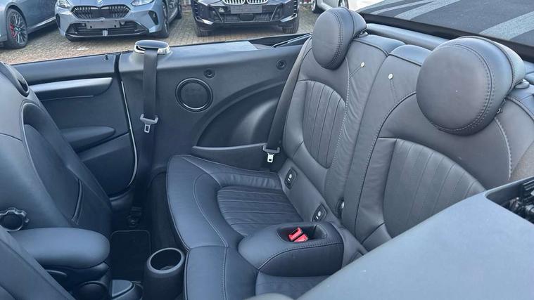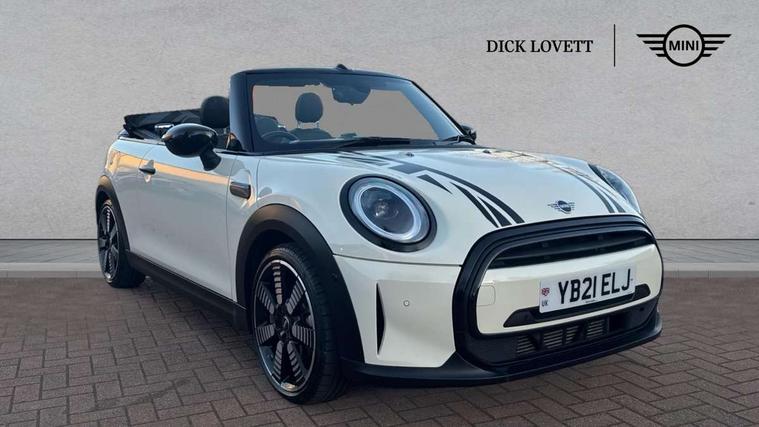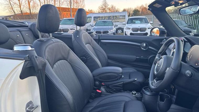 Automatic start/stop function with brake energy recuperation, Compatible mobile phone bluetooth with audio streaming, Cruise control with brake assist, Electro-mechanical speed dependant steering assistance, Instrument cluster, MINI Driving Modes - centre toggle switch to control driving setting (sport, mid and green), Mini E-call, MINI TeleServices, On board computer, Rear park distance control, Service interval indicator, Double Vanos system, Fully variable valve control, High precision injection, Performance Control, Steptronic transmission with double clutch, 4 speakers, 8.8" touchscreen with LED ring, FM tuner and DAB digital radio, Automatic headlight activation switch, Body colour fuel filler cap, Dynamic brake lights, Electric windows, Fully electric black softtop with integrated sunroof functionality, Heated rear window, Heated windscreen washer jets, LED headlight with closed ring and daytime driving lights, Left exhaust tailpipe with chrome finisher, Metal door sill strips with MINI imprint, Mini Yours soft top - Black/Union Jack, Model logo Cooper on right of tailgate, Radiator grille bars, tailgate handle, lower front grille grating, rear central fog light in chrome, Rain sensor window wipers, Rear fog lights, Rear LED lights with union jack design, Side scuttle panel with integrated indicator, Sun/heat protection glass, White indicator lenses, 12V Accessory socket in centre console, 4 lashing eyes in luggage compartment, 50/50 split folding rear seats, Chrome interior highlights, Colour line - Carbon black, Cupholders, Easy Load boot handles, Front and rear head restraints, Front and rear isofix with front passenger airbag deactivation, Glove compartment, Height and length steering column adjustment, Interior lighting with 12 different colours running across the dashboard, underneath door bezel illuminated laser engraved design on central display, Leather gearshift lever and handbrake gaiters, LED reading lights, vanity mirror lights, front foot well light and spotlight on front seats, Manual air conditioning, Mechanical seat adjustment, driver seat height adjust, forward/back and front seats backrest, MINI Yours walk nappa leather steering wheel with grey seam and MINI Yours badge on piano black lower steering wheel spoke, Multifunction steering wheel, Storage compartments in doors, Sunvisors with vanity mirrors, Velour floor mats, Convertible pack with comfort access - Mini Convertible, 3 point seatbelts on all four seats, 6 Airbags - front, side and seat belt tensioners, Active rollover protection, Anti-lock braking system (ABS), DSC - Dynamic Stability Control, Front and rear disc brakes, Hill start assist, Single tone fanfare horn, Tyre pressure monitoring system, Alarm system with tilt sensor, monitoring doors, bonnet interior and tailgate, Electronic vehicle immobiliser, Keyless Go, Tool kit,
