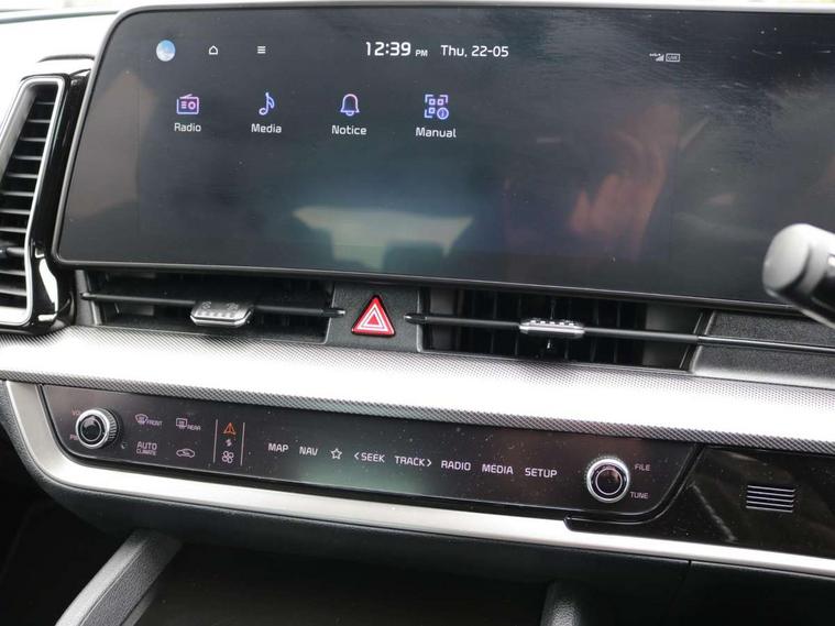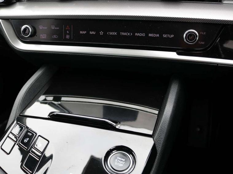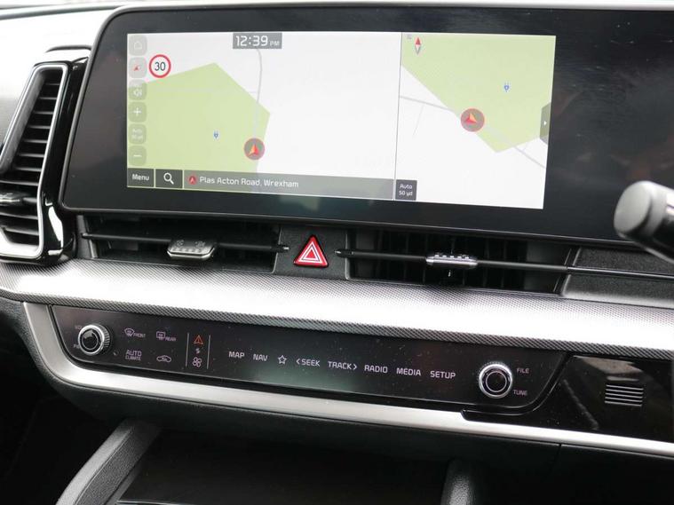 12.3" Display with navigation, 4.2" supervision colour cluster display, Apple car play/Android Auto with voice control, Drive mode selector, E-call, Forward collision avoidance assist (FCA) - city/pedestrian/cyclist/junction covering, Front and rear parking sensors, Highway Driving Assist (HDA), Intelligent speed limit assist, Kia Connect (UVO), Lane Following Assist (LFA), Lane keep assist, Low washer fluid warning, Rear view monitor, Reversing camera system integrated into centre fascia screen, Smart cruise control with stop and go functionality, Speed sensitive power steering, Trip computer, Windscreen washer level indicator, Intelligent Stop and Go, 6 speaker audio system, Bluetooth audio streaming, DAB Radio with MP3, Rear USB port, Steering wheel mounted audio controls, USB C type charging ports on centre console, USB C type charging ports on side of front seats, USB port for connection of a media device, All round electric windows with drivers and front passenger auto up/down function, Automatic headlight control system, Automatic window defogger, Backlite glass heated with timer, Body colour and black bumper with silver accents, Body colour exterior door handles, Body colour radiator upper garnish and door garnish, Electrically adjustable/heated/folding door mirrors with LED indicators, Front and rear chrome skid plates, Gloss black door mirrors, Gloss black radiator grille, Gloss black side sill and wheel arch body mouldings, Glossy black roof rack, High beam assist, Interior electrochromic mirror, LED daytime running lights, LED front fog lamps, LED headlamps (low and high beam - MFR type), LED High mounted stop light, LED rear combination lamp, Rain sensing wipers with aero blades, Rear fog lamp, Rear privacy glass, Rear side wing doors, Rear spoiler, Rear wiper, Satin finished beltline, Silver coloured inserts to bumpers, Tinted rear glass, Trailer stability assist, 12V power socket in front centre fascia and luggage compartment, 2nd row personal lamps, 3 seat bench in 2nd row, 3 x passenger assist grips, 40/20/40 split folding rear seat, All-round height adjustable headrests, Black headlining, Centre console storage box, Cupholders in rear armrest, D-Shaped sports leather steering wheel and perforated inserts with GT-Line logo, Door courtesy lamps, Drink holder at centre armrest, Driver and front passenger side sunvisors with illuminated vanity mirrors, Driver's seat manual height adjust, Drivers seat power lumbar support, Front and rear door storage, Front seat and rear pockets, Front/rear centre armrests, Gear shift indicator, Glovebox illumination, Heated front seats, Heated steering wheel, Interior door lock/unlock function, ISOFIX Child seat top tethers and anchor fixings outer rear seats, Luggage area light, Luggage area load cover, Luggage net with hooks, Metal paint interior door handles, Overhead console lamp, Paddle shift controls, Rear cabin light, Rear coat hooks, Single front passenger seat, Sports pedals, Suede leather upholstery, Three zone climate control, Tilt/telescopic adjustable steering wheel, Ventilation ducts to rear compartment, Active front headrests, All round 3-point seatbelts, Anti-lock braking system (ABS), Dual front side airbags, Dual horn, Electronic parking brake, Electronic stability control with downhill brake control, Front passenger airbag cut-off switch, Front seatbelt pretensioners + load limiters, Height adjustable front seatbelts, Hill start assist control (HAC), Impact sensing auto door unlocking, Multi collision brake assist, Rear door child safety locks, Rear seat alert system, Traction control, Twin curtain airbags, Twin front airbags, Tyre pressure monitoring system, Advanced anti-theft system including immobiliser and alarm, Door deadlocks, Engine Start/Stop Button with Smart Entry System, Locking wheel nuts, Speed sensitive auto door locking, Visible vehicle identification number, Aluminium pattern finish centre fascia and door garnish, 19" GT-Line alloy wheels, Tyre mobility kit,