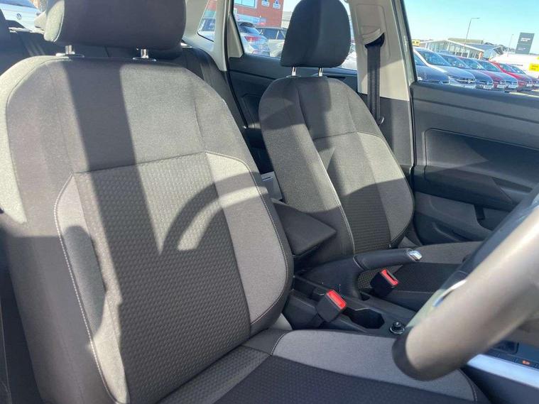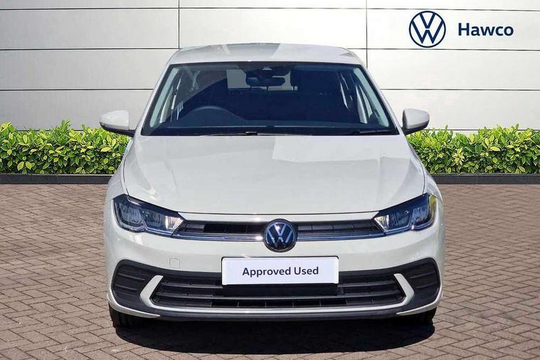 Advanced driver attention and drowsiness monitor, Bluetooth mobile phone interface, Cruise control + speed limiter, Dynamic road sign display, Emergency call service, Lane keeping system Lane Assist, Multifunction camera, Power assisted speed sensitive steering, Preparation for navigation system with media and internet package, Preparation for We connect and We connect plus, Speedo and rev counter, electronic odometer, trip, service interval display and exterior temperature gauge, Standard rear axle, Trip computer, Warning signal and warning light for front and rear seatbelts not fastened, Washer fluid level indicator, Wireless app connect, Front wheel drive, Rear shock absorpion, Start-stop system with battery regeneration (recuperation - energy recovery during braking), DAB Digital radio, Diversity antenna for FM reception, Front and rear 6 speakers, Automatic dimming interior rear view mirror, Automatic headlight control with LED separate daytime running lights with coming/leaving home function, Body colour bumpers with chrome inserts, Body colour door handles, Body colour door mirrors, Electric front windows, Engine badge deletion, Headlight range adjustment, Heat insulating and laminated safety glass windshield, LED Headlights, LED rear combination lamps, Power folding adjustable/heated exterior mirrors and front passenger exterior mirror lowering function, Rain sensor, Rear electric windows, Rear fog light, Rear side wing doors, Rear windscreen washer and wiper with interval delay, Third brake light, 12V power socket in centre console, 2 front and 2 rear reading lights with switch off delay and dimmer, 2 USB-C ports in the front, 2 USB-C charging sockets on the center console in the rear, 3 rear head restraints, 60/40 split folding rear seat and rear seat bench not split, Ceramique roof lining, Chrome plated radiator grille inserts, air vent surrounds and light switch surrounds, Door and side trim panel, Driver and front passenger seat height adjustment, Driver/passenger sunvisors with illuminated vanity mirrors, Front centre armrest, Front seat backrest storage pockets, Front standard seats, Handbrake lever handle in leather, Hartley/Thomas cloth upholstery, Headliner in recycled material, Isofix child seat preparation easy-fit (for two outer rear seats, and front passenger seat) compatible with I-size, Leather trimmed gear knob, Luggage compartment cover, Luggage compartment lighting, Removable luggage compartment floor, Single front passenger seat, Standard climatic zones, Standard pedal cluster, Three spoke leather wrapped multifunction steering wheel, Light and vision pack - Polo, 3 point height adj front seatbelts + pretensioners, 3x3 point rear seatbelts, ABS, Driver and front passenger airbag with front passenger airbag deactivation, Drivers and front passengers safety optimised head restraints, ESC (Electronic stability control) + EDL (Electronic Differntial lock) and ASR (Traction control), Extended and predictive pedestrian/ cyclist protection, Front assist with autonomous emergency braking (for Adaptive Cruise Control ACC up to 130 mph), Front curtain and side airbags with center airbag, Front disc brakes, Hill hold control, Manual child lock in rear doors, Rear drum brakes, Single tone horn, Tyre pressure loss indicator, Alarm with interior protection, Anti-theft alarm system with interior monitoring, backup horn, and towing protection, Anti-theft wheel bolts, Electronic engine immobiliser, Lava stone black gloss/matt decorative inserts in dash and front door panels, Low rolling resistance tyres,