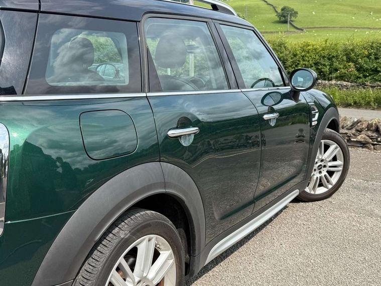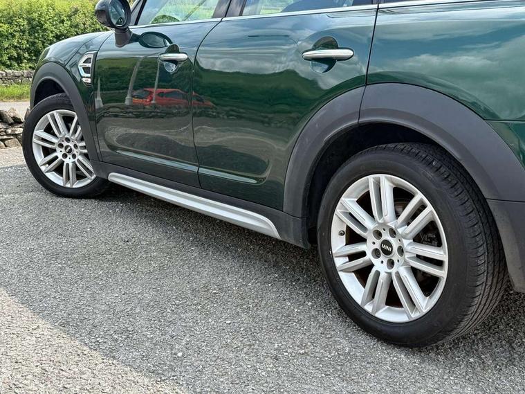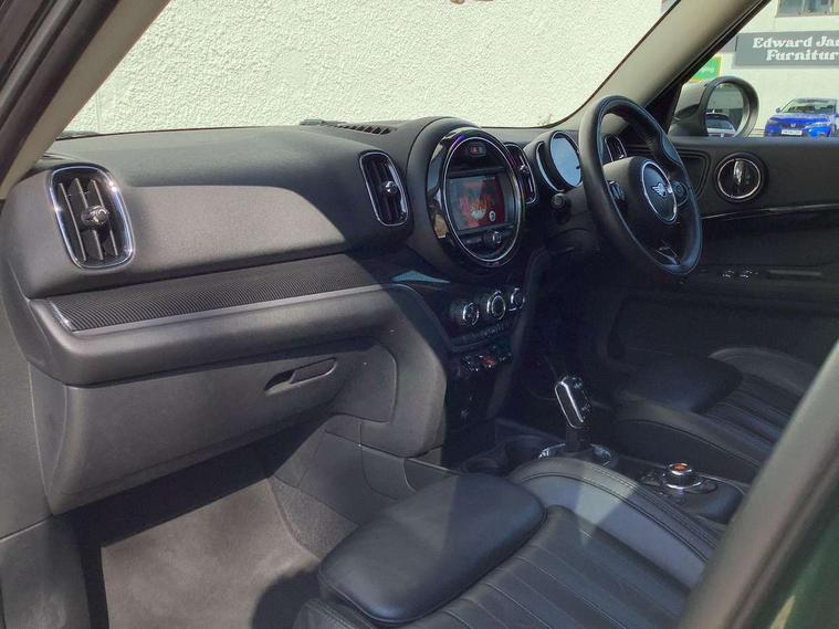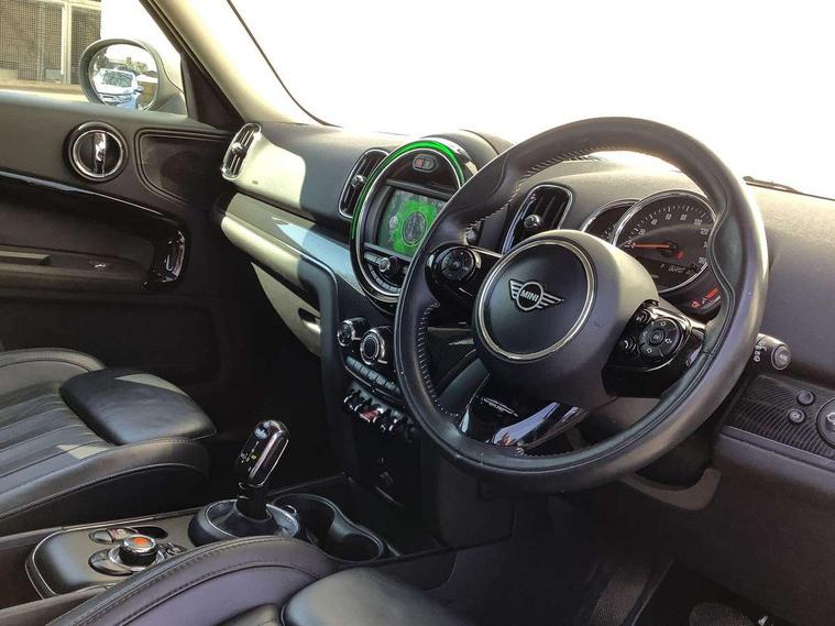 Active Guard incl speed limiting and lane departure functions with auto steering, and front collision warning with brake intervention, Automatic start/stop function with brake energy recuperation, Electro-mechanical speed dependant steering assistance, Instrument cluster, Mini E-call, MINI TeleServices, On board computer, Rear parking distance control, Double Vanos system, Fully variable valve control, High precision injection, Steptronic transmission with double clutch, FM tuner and DAB digital radio, Body colour fuel filler cap, Chrome line exterior, Day time driving lights, Door sill strips, Dynamic brake lights, Electric windows, Heated rear window, Heated windscreen washer jets, Left exhaust tailpipe with chrome finisher, Model logo, Model logo on Tailgate, Radiator grille, Rain sensor with auto headlights, Rear fog lights, Rear window wiper, Side scuttle panel with integrated indicator, Split rear doors, Sun/heat protection glass, White indicator lenses, 12V Accessory socket in centre console, 360L luggage compartment capacity, 4 lashing eyes in luggage compartment, 40:20:40 split folding rear seats, Chrome interior highlights, Cupholders, English handbook, Glove compartment, Height and length steering column adjustment, Isofix rear child seat preparation, Leather gearshift lever and handbrake gaiters, LED reading lights, vanity mirror lights, front foot well light and spotlight on front seats, Manual air conditioning, Mechanical seat adjustment, driver seat height adjust, forward/back and front seats backrest, MINI Yours fine walk nappa leather steering wheel with contrast stitching in silver and MINI Yours badge, Multifunction steering wheel, Passenger seat height adjuster, Storage compartments in doors, Sunvisors with vanity mirrors, Excitement pack - Countryman, Navigation pack - Countryman, 2 tone horn, 3 point seatbelts on all seats, 6 Airbags - front, side, head and seat belt tensioners, Anti-lock braking system (ABS), DSC - Dynamic Stability Control, Electronic handbrake, Front and rear disc brakes, Hill start assist, Tyre pressure monitoring system, Alarm system with tilt sensor, monitoring doors, bonnet interior and tailgate, Auto drive away locking, Deadlocking function, Electronic vehicle immobiliser, Locking wheel bolts, Start/stop toggle with keyless go, Chrome line interior, Tool kit,