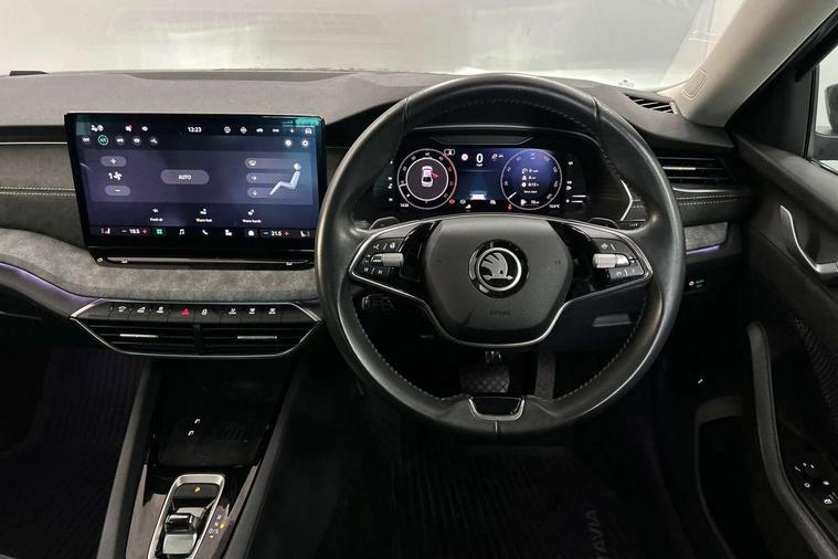 1x USB Typc C port in rear view mirror, 4x USB Type C ports - 2x in front centre console and 2x in rear (45W), Drive mode selection, Driver fatigue sensor, eCall emergency system, Electro-mechanical power steering, Front assist system, Traffic jam assist, Traffic sign recognition, Turn Assist, Virtual Cockpit - 10.25" digital display, Voice control system, Wireless charging (15W) with cooling function, Wireless SmartLink for Apple CarPlay and Android Auto, 13" touchscreen display with navigation, DAB Digital radio, Aero front windscreen wipers with intermittent function, Auto dimming rear view mirror, Body colour bumpers, Body colour door mirrors and handles, Chrome grille surround, Chrome strip in lower front bumper, Chrome window surrounds, Electric front and rear windows, Heated rear windscreen, High level third brake light, Ice scraper in fuel cap, LED daytime running lights, LED Headlights, Logo projection in front doors, Rain and light sensors, Rear fog light on one side, Rear privacy glass, Rear side wing doors, 12 volt socket in boot, 3 rear headrests, 3 seat bench in 2nd row, 4 foldable roof handles, Boot net programme, Electric auxiliary air heater, Front head restraints, Heated front seats, Illuminated glovebox, Interior door handles in dark chrome, Jumbo Box storage, Luggage compartment lighting x2 lights, Mechanical rear seat release from boot, Parcel shelf - folding, Single front passenger seat, Steering wheel in black leather with black stitching, Storage compartments in left and right of boot, Sun visors with mirrors, Sunglasses storage, Ticket holder, Umbrella in door panel, Unsplit rear bench seat, split folding backrest with centre armrest with cupholder, Comfort package - Octavia, 3x3 point rear seat belts, Alarm with interior monitoring, tilt sensor and back up horn, Curtain airbags and front side airbags, Driver and front passenger airbags, Drivers knee airbag, Electronic parking brake, ESC including ABS, EBV, MSR, ASR, EDS, HBA, DSR, Front central airbag, Hill hold assist, ISOFIX on front passenger seat and outer rear seats, Passenger airbag deactivate switch, Three point seat belts in front and rear, Two tone horn, Tyre pressure monitor, Visual and acoustic seat belt reminder, Warning reflectors in front door, Anti-theft wheel bolts, Keyless start/stop, Remote central locking, Chrome air vent surrounds,