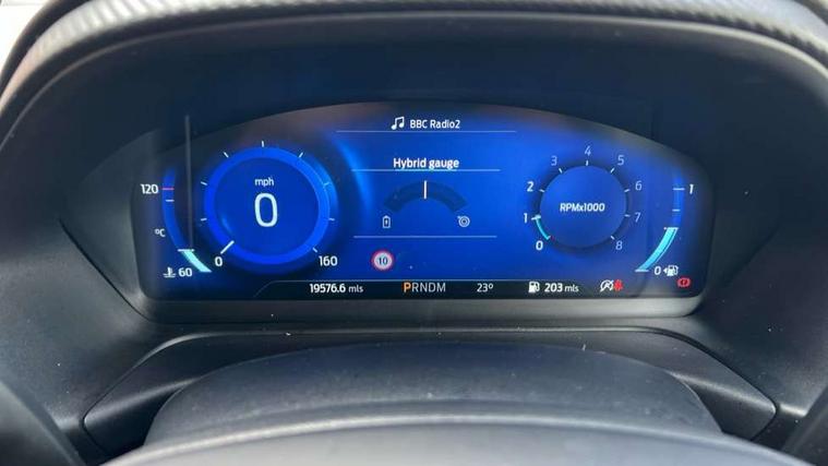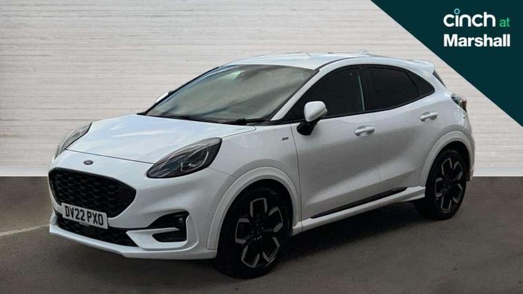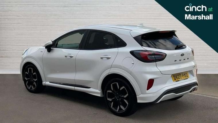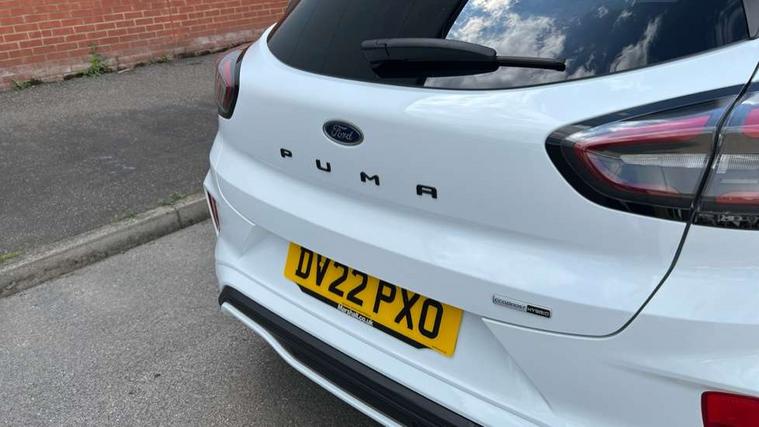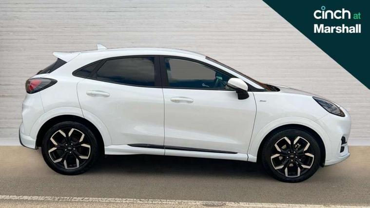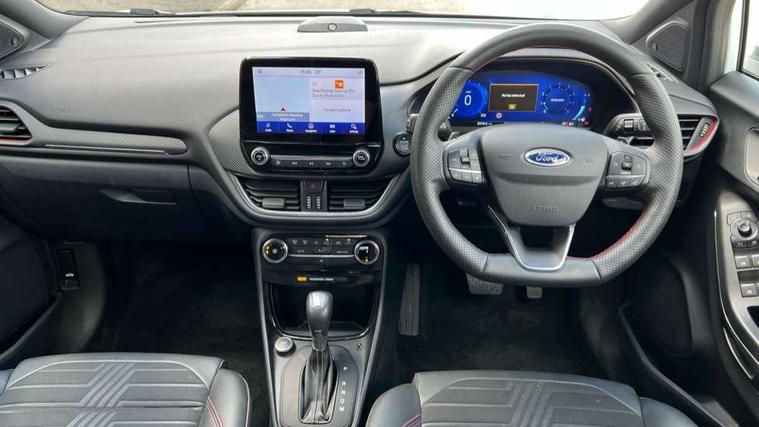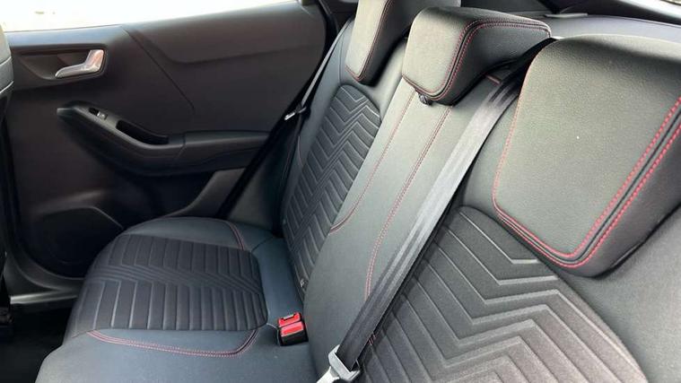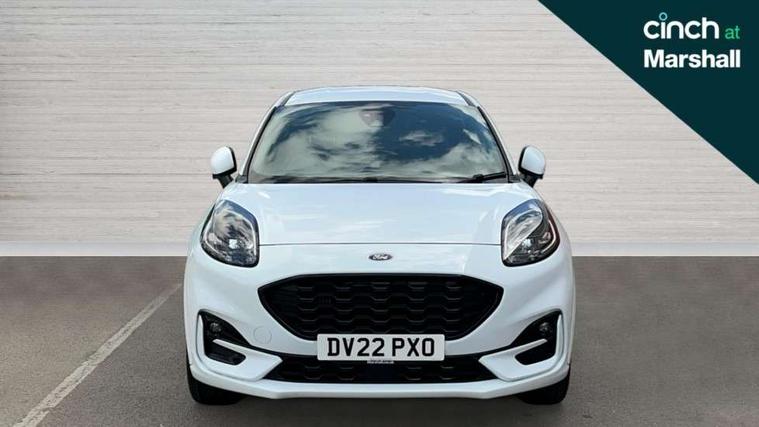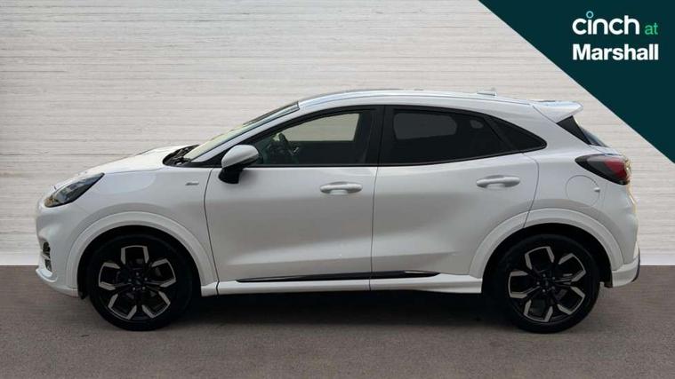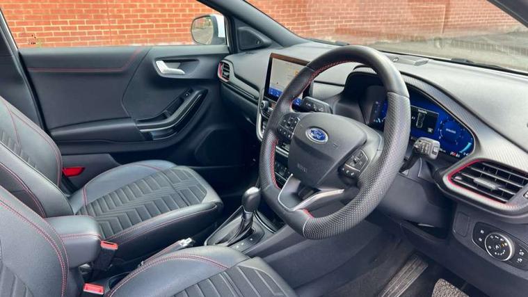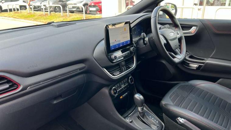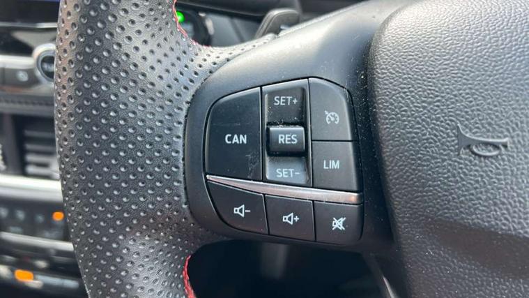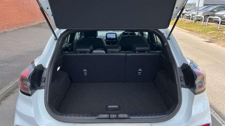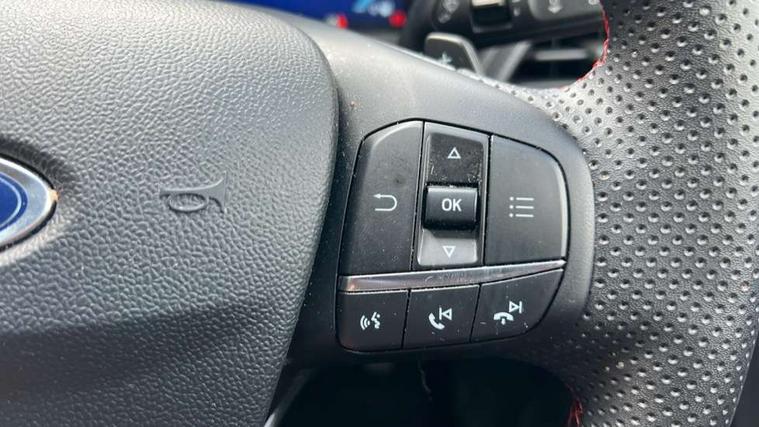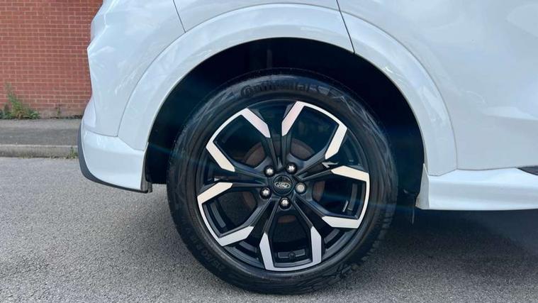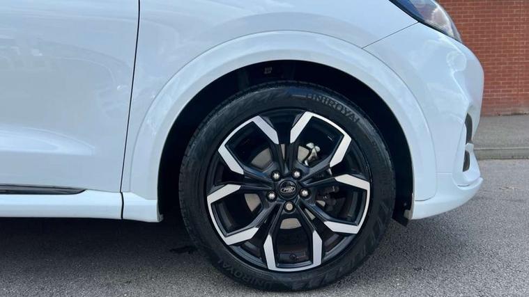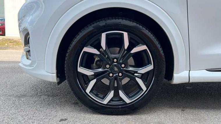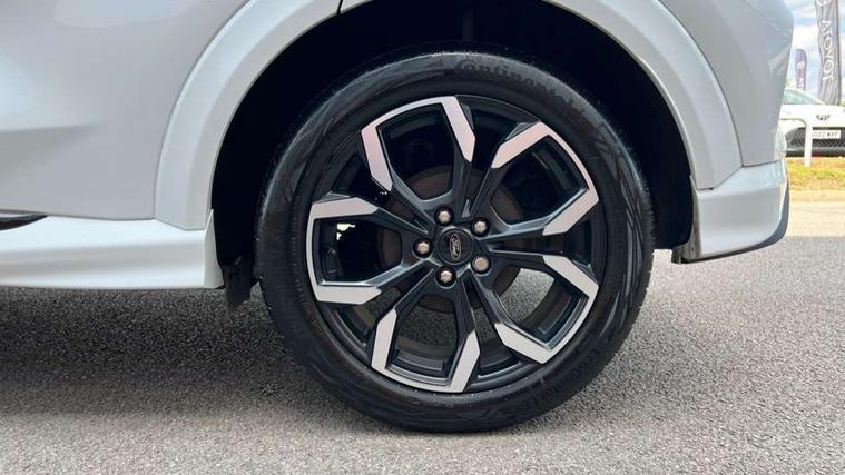 Driver impairment monitor, Emergency call service, Ford easy fuel, Full digital 12.3" instrument cluster, Lane keeping aid with lane departure warning, Power assist steering, Power start button, Rear parking sensor, Selectable drive modes(Normal, sport, Eco, trail, slippery), Speed sign recognition, Sport suspension, Automatic headlights with auto high beam, Automatic rain sensing wipers, Front fog lamps, LED daytime running lights, LED rear lamps, Privacy glass to side rear windows and tailgate glass, Quickclear heated windscreen, Rear side wing doors, Rear wiper, ST-Line body styling kit with unique grille and large body colour rear spoiler, Third brake light, 3 seat bench in 2nd row, Centre console with armrest and stowage, Electronic automatic temperature control (EATC), Ford megabox extended bootspace, Front and rear head restraints, Front floor mats, Manual 4 way driver seat adjust with lumbar adjustment, Manual 4 way passenger seat with lumbar seat adjustment, Sensico partial premium upholstery, Single front passenger seat, ST-Line flat bottomed sensico leather steering wheel with leather handbrake and aluminium gear knob, Wireless charging pad with electronic air temperature control (EATC), B&O Premium Audio system + Ford SYNC 3 navigation pack - Puma, Driver assistance pack with Lane departure warning - Puma, 3 rear seatbelts, Child safety lock, Electronic stability control (ESC) and hill start assist, Tyre pressure monitoring system (TPMS), Thatcham alarm, Carbon look interior deco spears,