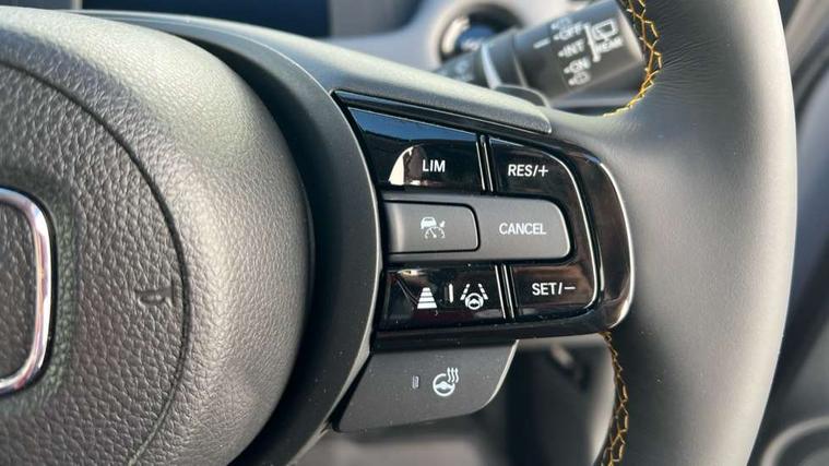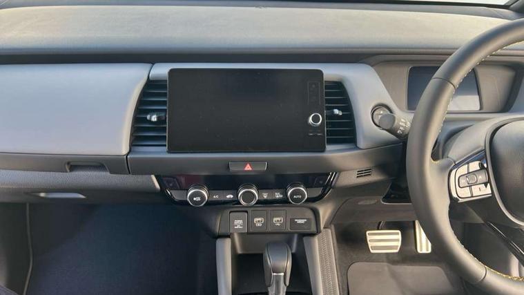 Adaptive cruise control, Adjustable speed limiter, Agile handling assist, BLIS (Blind Spot Information System) with Cross Traffic Monitor, Bluetooth hands free telephone connection, Drive mode (Econ, Sport, Normal), Driver attention monitoring system, eCall emergency call system - ecall functionality is subject to 2G/3G network availability, Electric power steering wheel with variable gear ratio steering, Emergency stop signalling system, Forward collision warning, Front and rear parking sensors, Honda CONNECT with Navigation 9" touchscreen, AM/FM/DAB, Apple Carplay and Android Auto, live traffic info, Idle stop, Intelligent speed limiter, Lane departure warning system, Lane keep assist system, Low speed following, Multi-information display, Rear view camera, Road departure mitigation, Tailgate, Traffic jam assist, Traffic sign recognition, Wireless apple carplay, Vehicle stability assist, 'Shark fin' mobile antenna, 180w Power audio system with 4 speakers, 2 USB-C connectors rear, 2x USB Front socket (1 data & 1 charge), Remote audio controls on steering wheel, Aspheric door mirrors, Auto wipers, Automatic headlights with on/off timer, Coming/leaving home function, Black headlight extension, Body colour door handles, eHEV emblem, Electric adjustable door mirrors, Electrically folding door mirrors, Exclusive styling includes front and rear bumper in gloss black finish, Front and rear electric windows, Heated door mirrors, High beam assist, LED 3rd brake light, LED daytime running lights, LED Headlights, LED rear lights, Manual headlight levelling, Privacy glass, Rear side wing doors, Rear wiper, Single exhaust tailpipe with finisher, Sport grille, 3 seat bench in 2nd row, 60/40 split rear bench seat, Cargo net hooks, Climate control air conditioning, Driver and front passenger seat armrests, Driver and passenger front seat pockets, Driver's seat height adjustment, Fabric/suede leather upholstery, Front accessory power socket, Front head restraints, Front map lights, Front/rear courtesy lights, Heated front seats, Heated steering wheel, Isofix points, Leather 3-spoke steering wheel, Leather gearshift knob, Magic seat flexibility system, Plating interior door handles, Rear head restraints, Single front passenger seat, Sport pedals, Sunvisors with vanity mirrors, Tilt/telescopic adjustable steering wheel, Tonneau cover, Trunk light, Vanity mirror illumination, 3x3 point rear seatbelts, Anti-lock braking system (ABS), Brake assist function, Brake hold function, Child locks on rear doors, Collision mitigation braking system, Deflation warning system, Driver knee airbag, Driver SRS airbag (single stage inflation), Driver/Front Passenger airbags, Electronic parking brake with auto hold, Front and rear seat belt with emergency locking retractor, Front and rear side curtain airbag, Front centre airbag, Front side airbags, Hill start assist, Paddle deceleration control, Passenger SRS airbag cut-off device, Rear side airbags, Regenerative braking system, Whiplash lessening front headrests, Honda super locks, Immobiliser, Mirrors and windows key fob operation, Remote central locking with 2 remote folding keys, Security alarm, Smart entry + Smart start, Soft pad leather interior panels, Tyre repair kit,