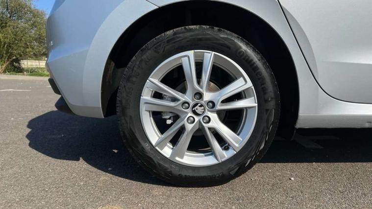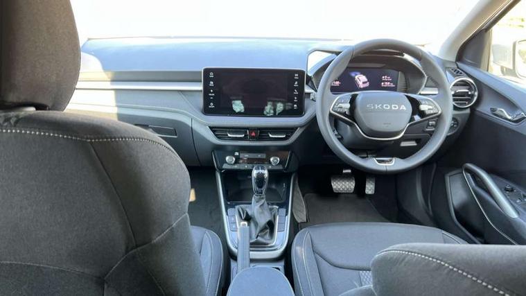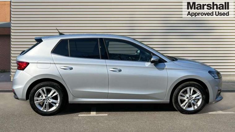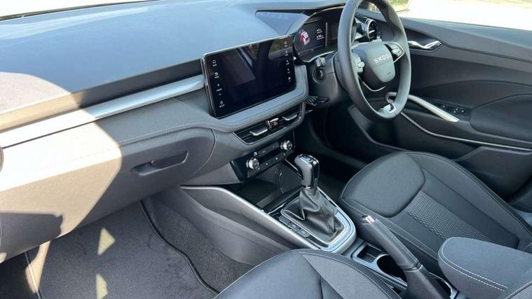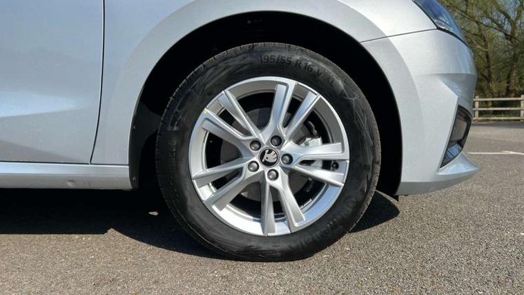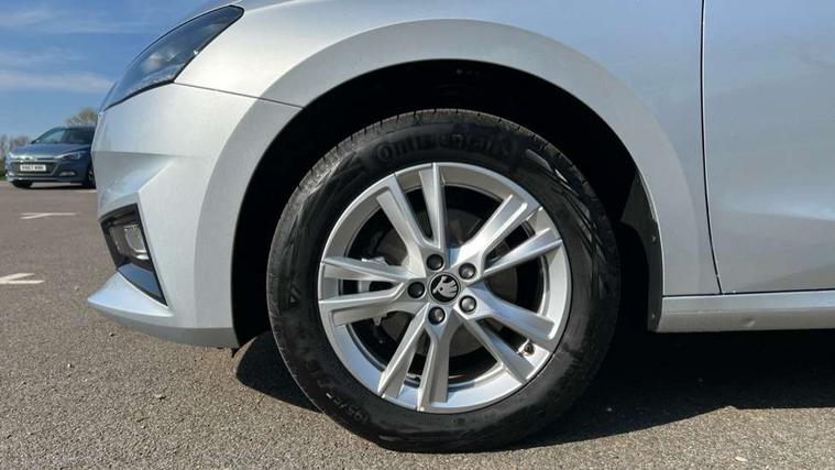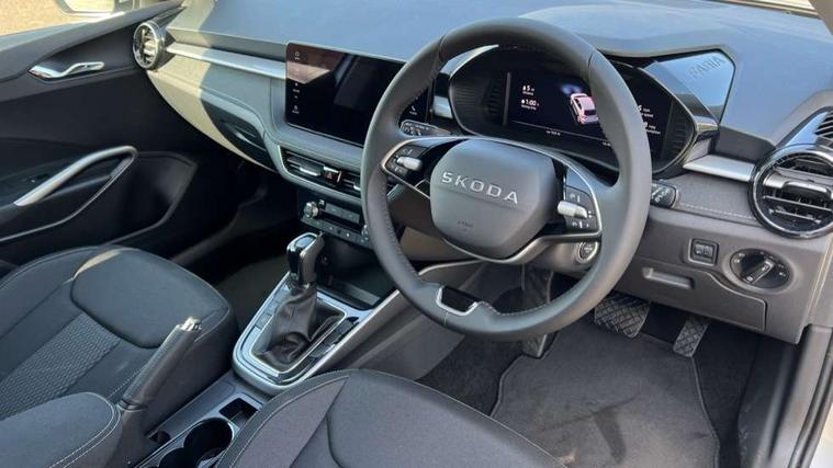 Advanced driver attention and drowsiness monitor, Bluetooth connection, Electromechanical power steering, Exterior temperature gauge, Service interval indicator, Traffic sign recognition, Virtual cockpit with 10.25" colour display, Wireless SmartLink for Apple CarPlay and Android Auto, 6 Speakers (4 in front and 2 in rear), 9.2" colour display skoda navigation system with voice control and web radio, Auxiliary socket for external MP3 player, DAB digital radio reception, Auto dimming rear view mirror, Body colour door mirrors, Body coloured bumpers, Chrome window surround, Door mirror integrated indicators, Front and rear electric windows, Front window wiper intermittent control, Headlight range control - Automatic, Ice scraper in fuel cap, LED daytime running lights with coming and leaving home feature, LED rear lights, Privacy glass, Rear LED fog light, Rear side wing doors, Rear window wiper with washing nozzles, Roof mounted spoiler, SKODA tailgate lettering in chrome, Third brake light, Unique dark chrome design logo on alloy wheels, 2 LED reading lights in front and rear, 3 rear headrests, Backrest split and folding, Central console with removable cup holder and storage box, Chrome handbrake release button, Comfort seats, Door sills with fabia badging, Dual zone air conditioning with climatronic electronic control, Fabric upholstery, Front centre armrest, Gearshift knob/handle in leather, Hand brake lever handle in leather, Height adjustable front headrests, Height adjustable front seats, Height adjustable steering wheel, ISOFIX and TopTether anchorage points to the outer rear seats, ISOFIX and TopTether on the front passenger seat, Luggage compartment lighting, Manually adjustable lumbar support in front seats, Metallic grey interior door handles, Pollen filter, Rear seat bench unsplit, Single front passenger seat, Skoda lettering on steering wheel, Storm grey headlining, Sun visors with mirror and airbag label on passenger side, Textile floor mats, Ticket holder, Umbrella in drivers door, 3-point height adjustable front seats belts with pretensioner and force limiter, Automatic warning lights in case of crash, Driver and passengers airbag with switch off function, e-Call+, ESC including ABS, MSR, ASR, EDS, HBA and XDS, Front and rear seat belt warning, FRONT ASSIST (AEB City and AEB Inter Urban), Front side airbags, Head airbags, Hill hold control, One tone horn, Pedestrian protection, Three rear 3-points safety seat belts with pretensioner and force limiter including stop function for outer rear seat belts, Tyre pressure monitoring system, Anti-theft alarm system including immobiliser, interior monitoring, backup horn, and towing protection, Central locking with radio remote control, interior controls, SAFE function and 2 foldable keys, Black painted air vents, Metallic grey central console cover, Metallic grey upper decorative trim, Satin black door and side trim panel in front, Textile microsuede grey lower decorative trim with art grey stitching, Anti-theft wheel bolts protection, Super-low rolling resistance tyres,